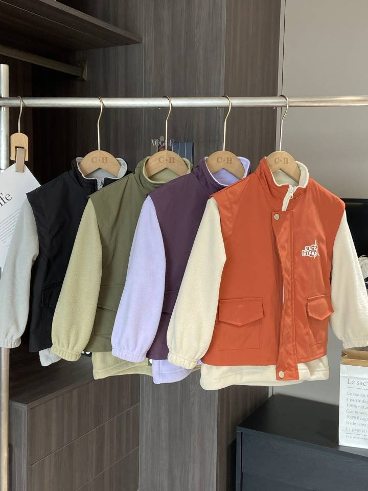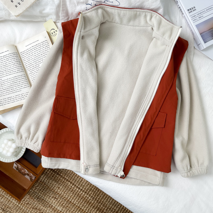 立领护颈,工装口袋,外层拉链还带暗扣,解锁潮酷保暖新体验 外层采用防风立领设计,有效阻挡冷风入侵,呵护孩子颈部; 搭配多工装口袋,实用性强,方便收纳小物件。 内里柔软摇粒绒锁温透气,假两件结构层次分明,兼顾保暖与时尚感。 细节彰显品质:立体剪裁保证活动自由度,弹力袖口防风贴合; 拉链顺滑耐用,孩子可轻松穿脱。 严选材质通过安全认证,亲肤不透湿,确保整日干爽舒适。 一件外套多重防护,让孩子无畏天气变化,尽情探索自然!