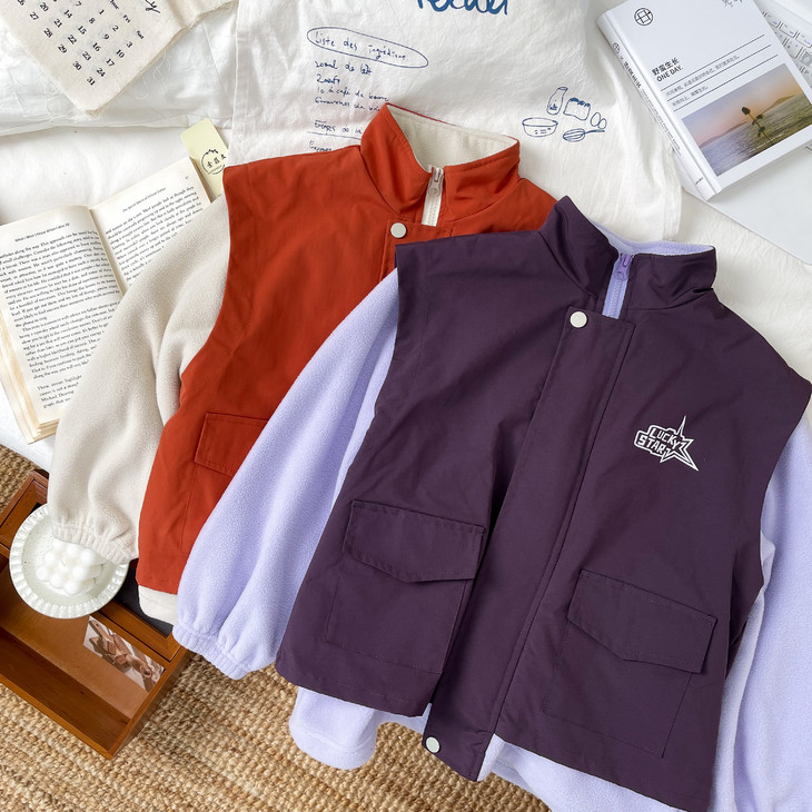 出口品质❗️❗️【儿童户外防风假两件外套】里层摇粒绒➕外层防风马甲,一件顶三件💪🏻防风保暖,轻盈灵动,工装口袋与立体剪裁😎胖瘦宝宝都能穿出潮酷范儿~