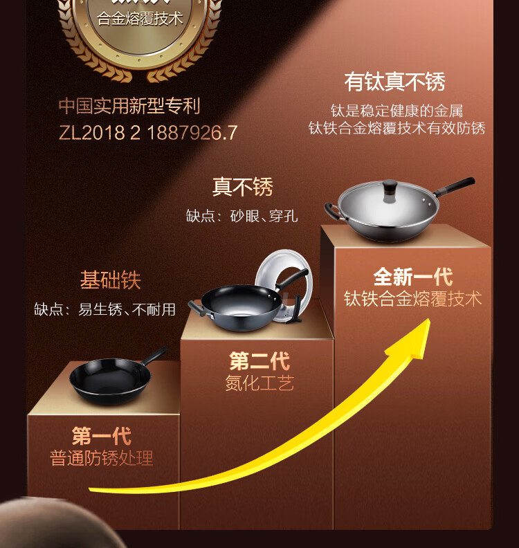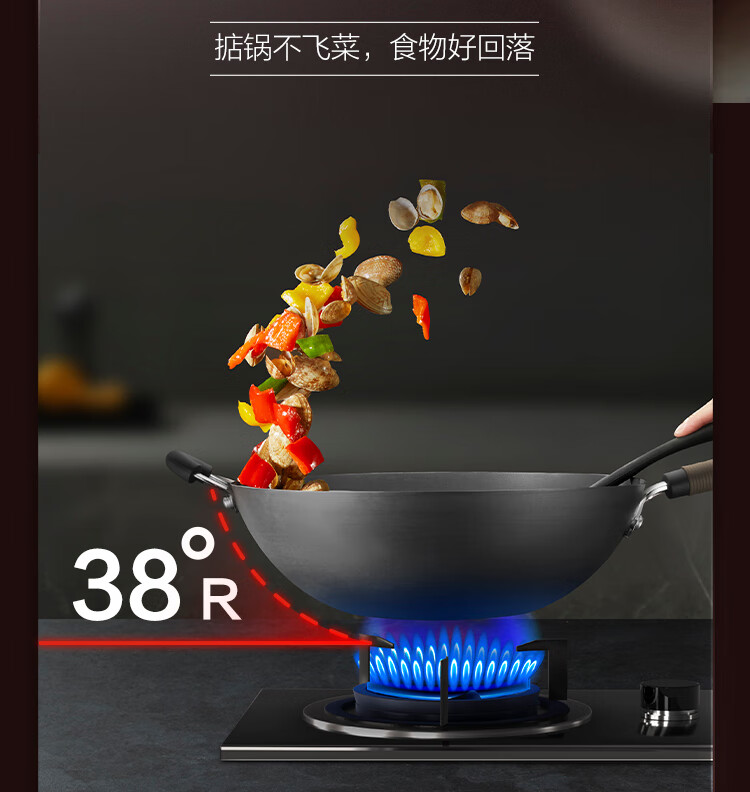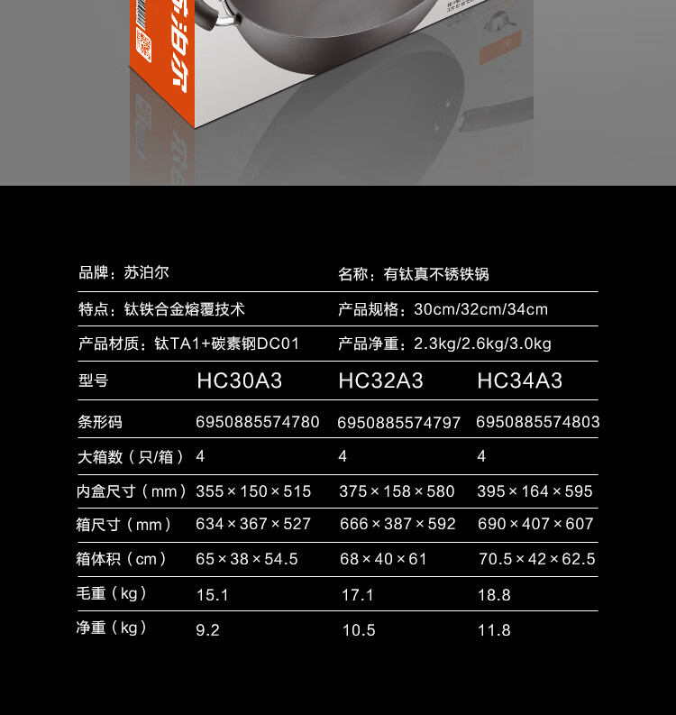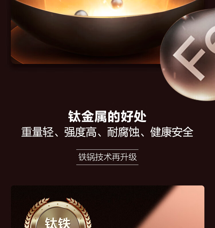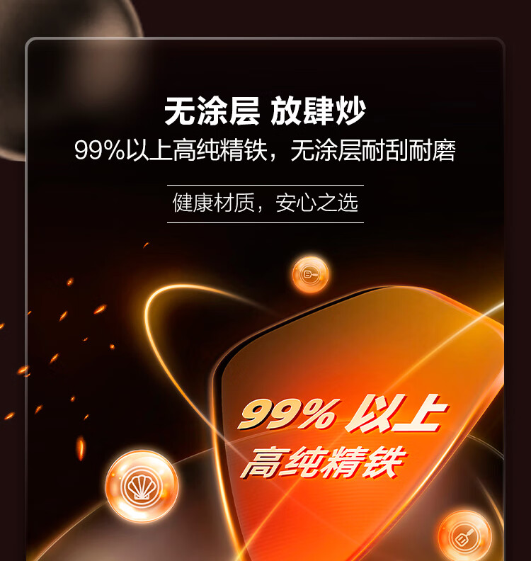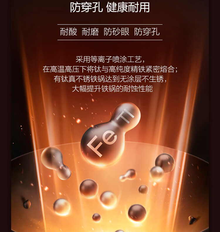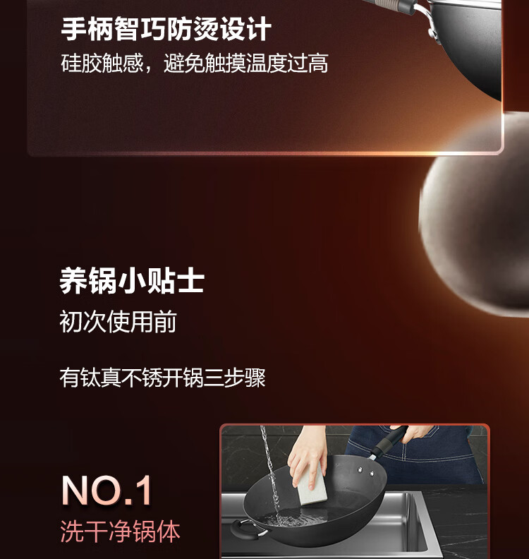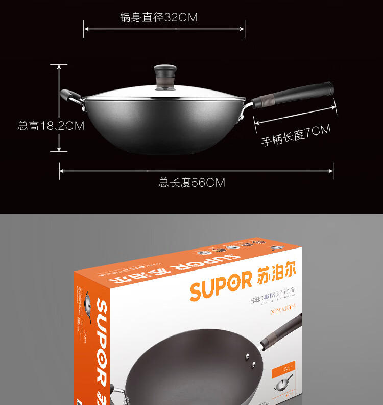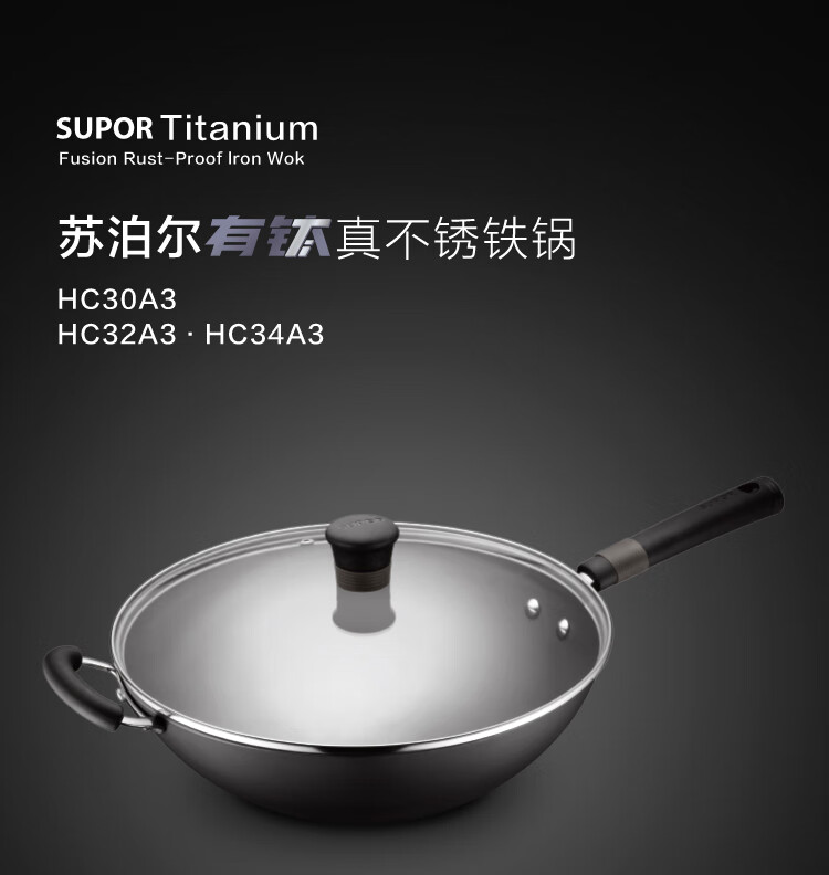 苏泊尔(SUPOR)铁锅 炒锅真不锈无涂层 有钛系列 家用炒菜锅煤气燃气明火适用 HC32A3 电木把手 32cm
