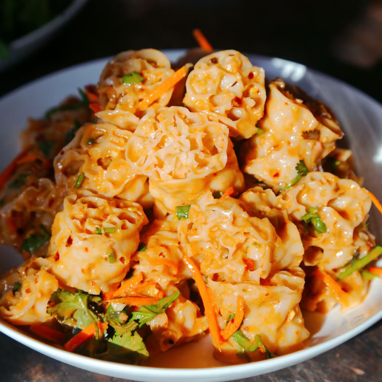 ③将面藕与料汁搅拌均匀,静置充分吸汁后食用