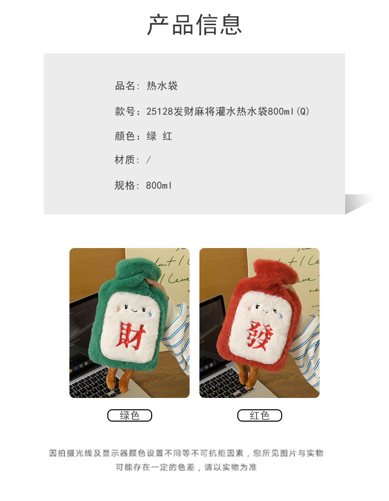 【礼物季】软萌造型发财麻将灌水热水袋800ml热水袋-纪念日百货门店同款166094721
