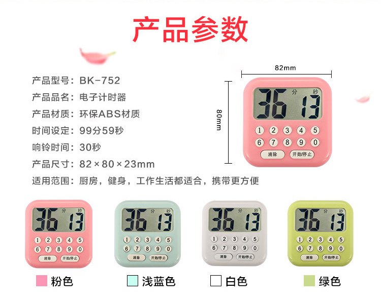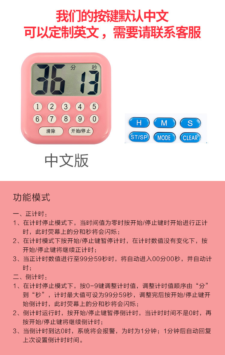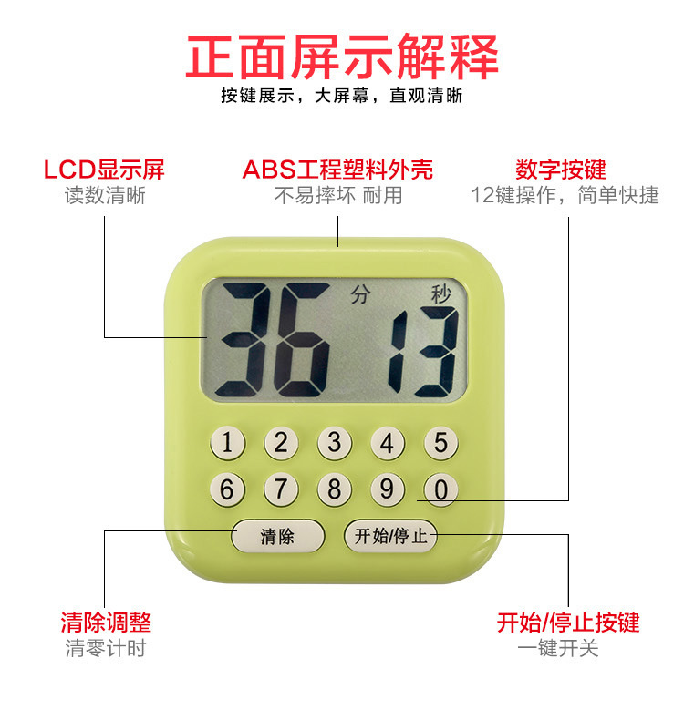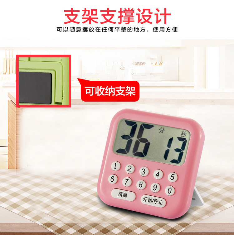 厨房烘焙提醒器倒计时器 数字学生电子计时器 电子秒表闹钟带记忆