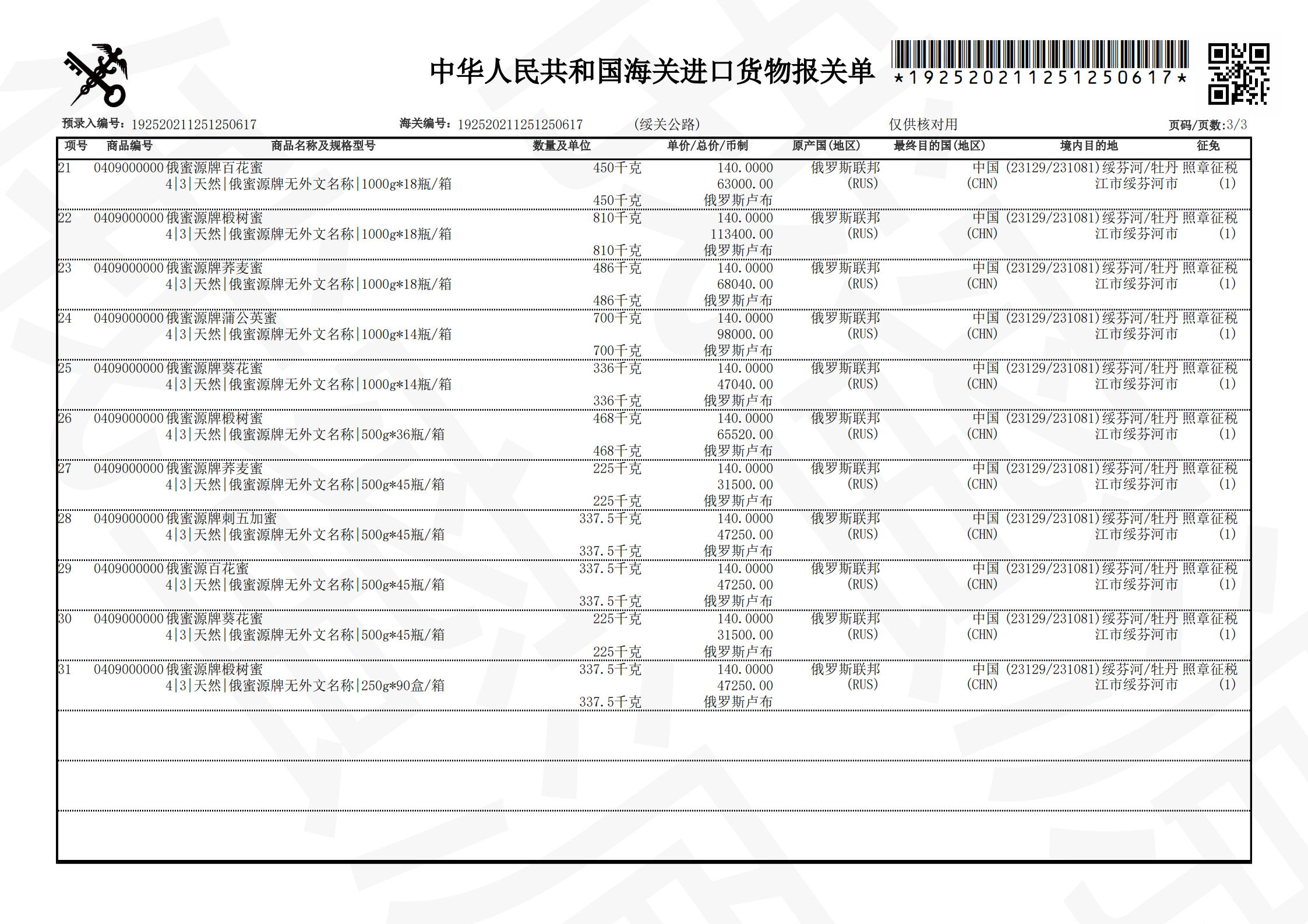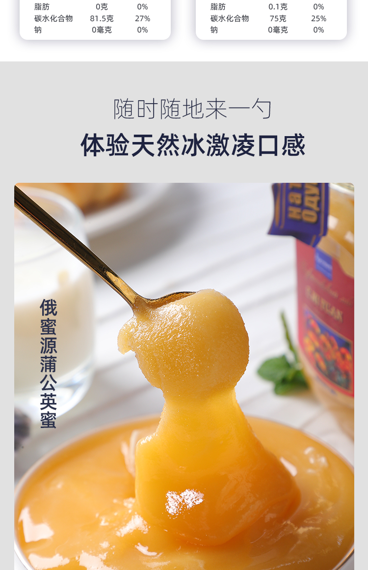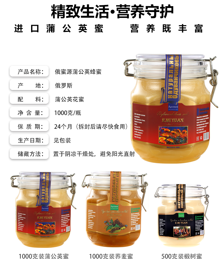 【中欧班列精选】俄罗斯原装进口蒲公英蜜/荞麦蜜天然结晶土蜂蜜瓶装