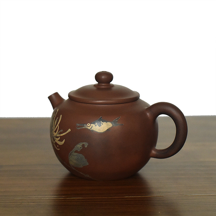 三金,本名李鑫,启正陶社社员,2010年在朝阳楼跟随半根先生学习制壶。三金制陶随性而发,平淡天真,器型古朴,装饰淡雅,常作闲人、傻鱼、呆僧图饰······生趣盎然。制陶应是玩,不作高态,能让喜欢的人观之用之心生愉悦,便是乐事。虽有不足,但制陶路漫漫,坚持下去,必有所收获。