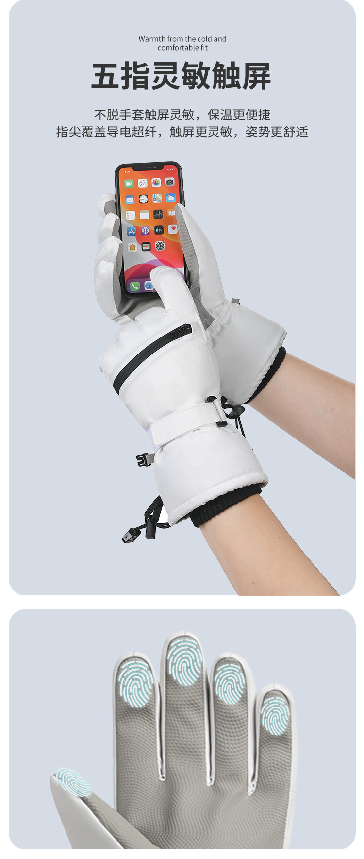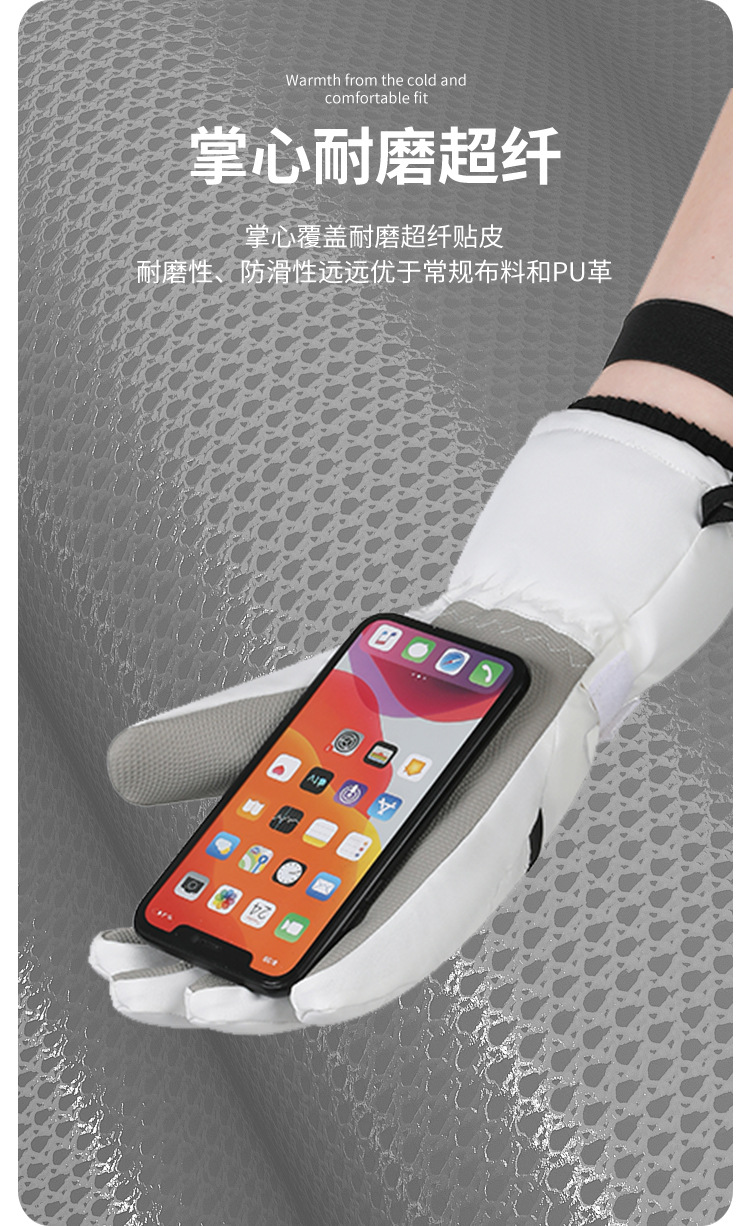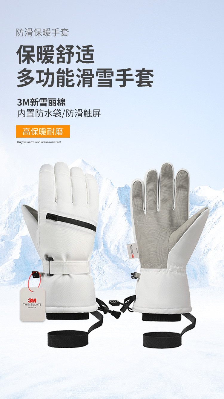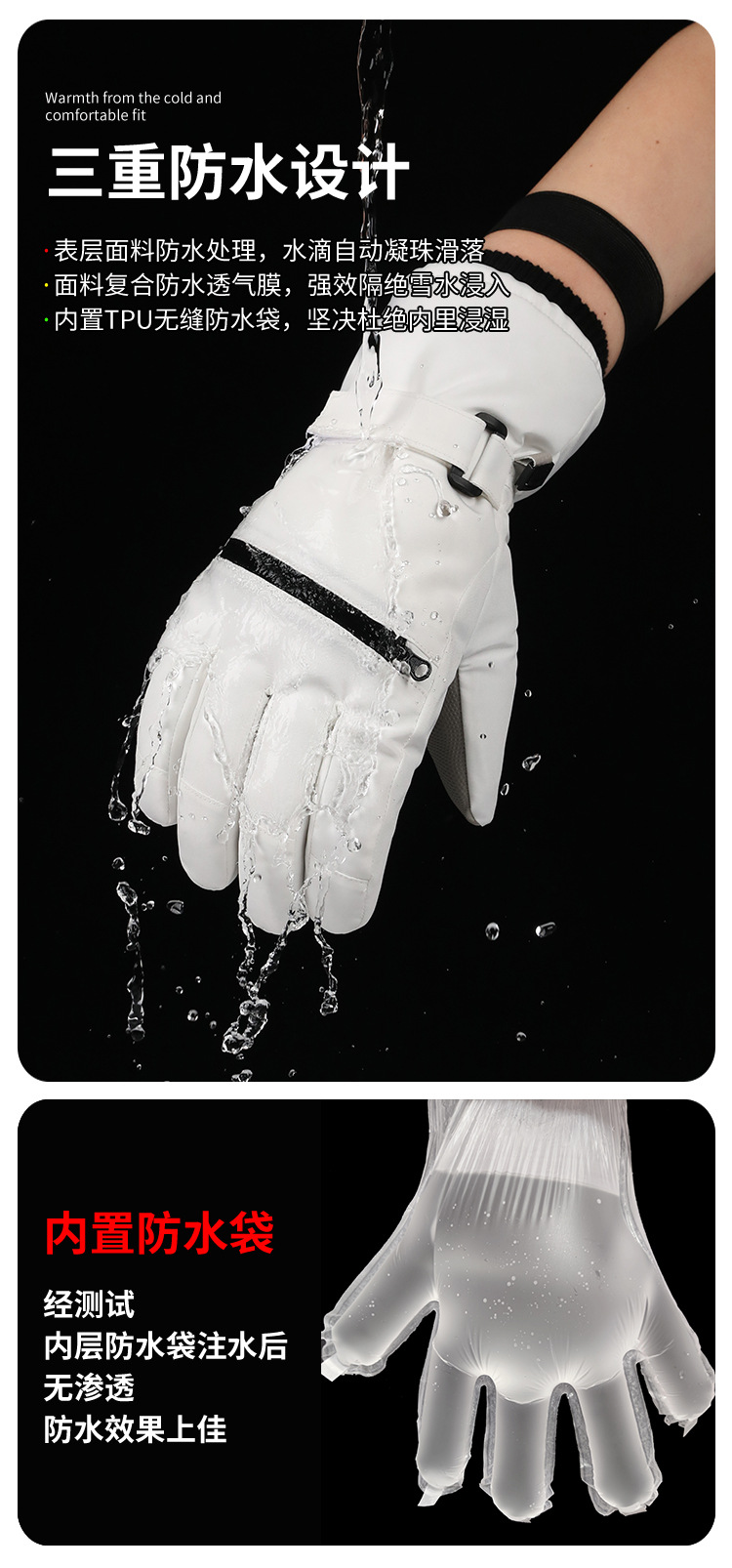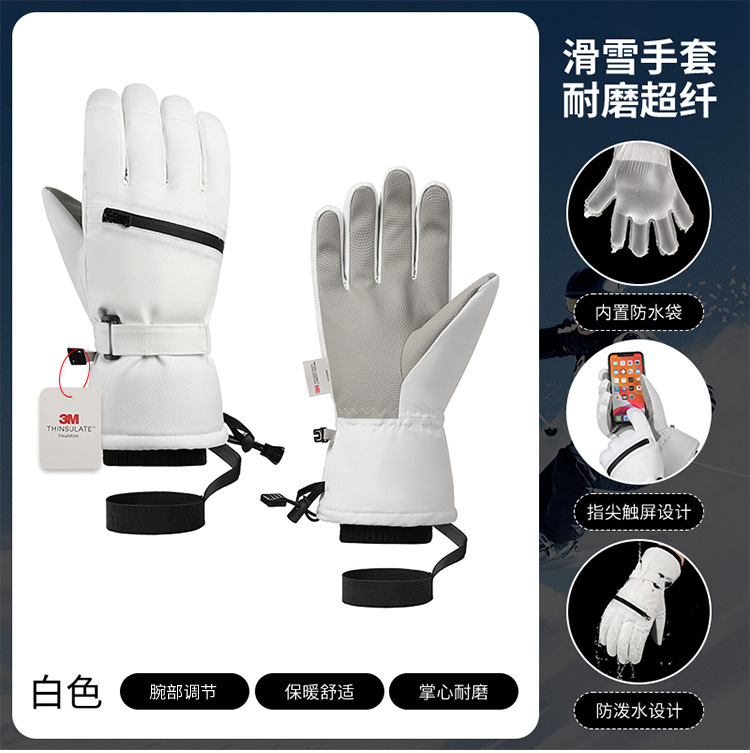 滑雪手套男女冬季白色保暖骑行运动防水袋五指手套3M棉