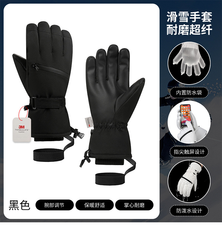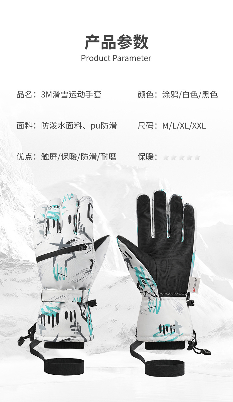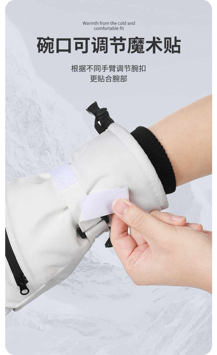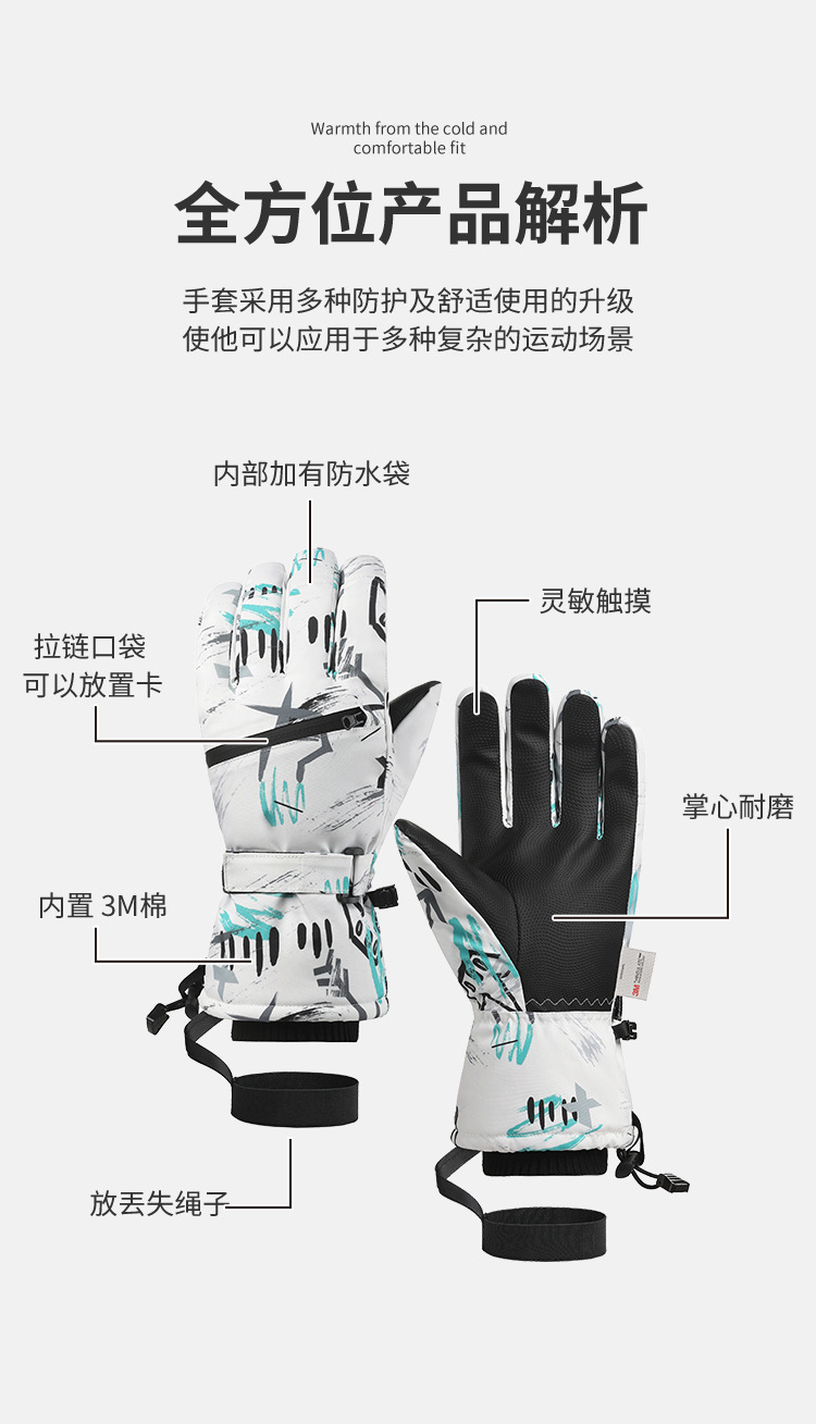 滑雪手套男女冬季白色保暖骑行运动防水袋五指手套3M棉