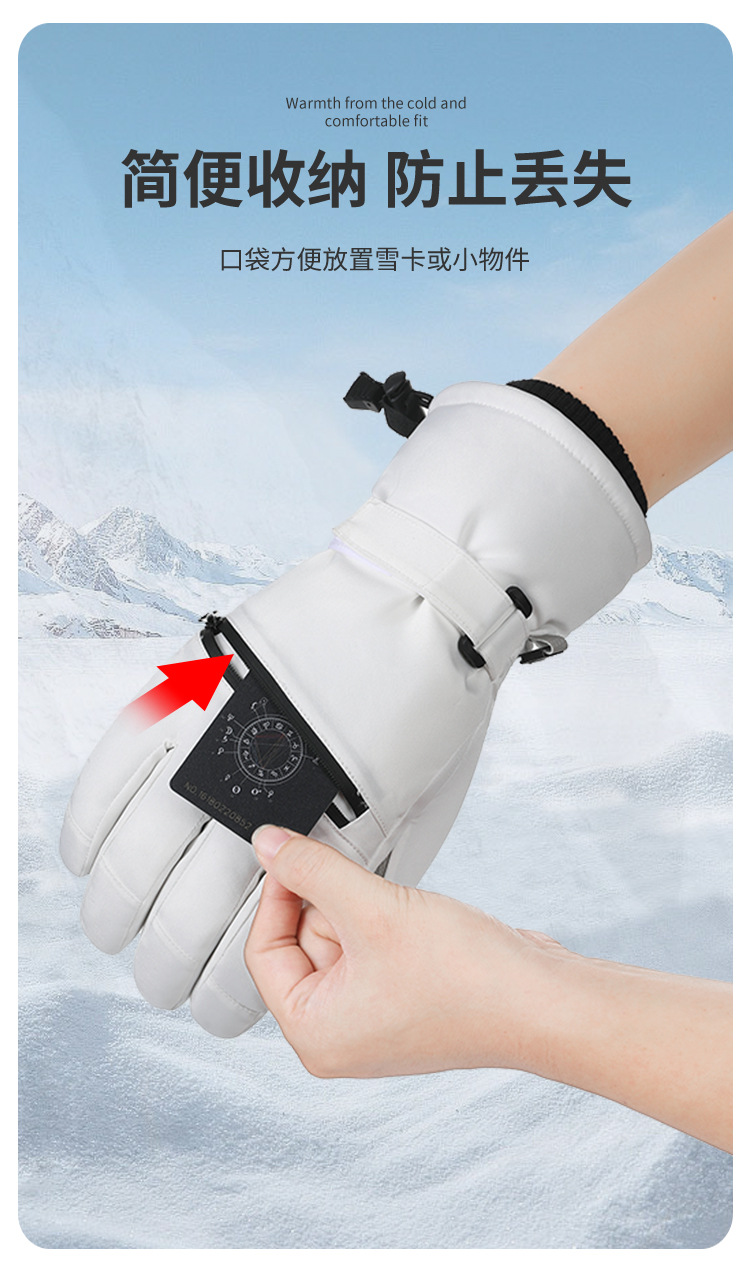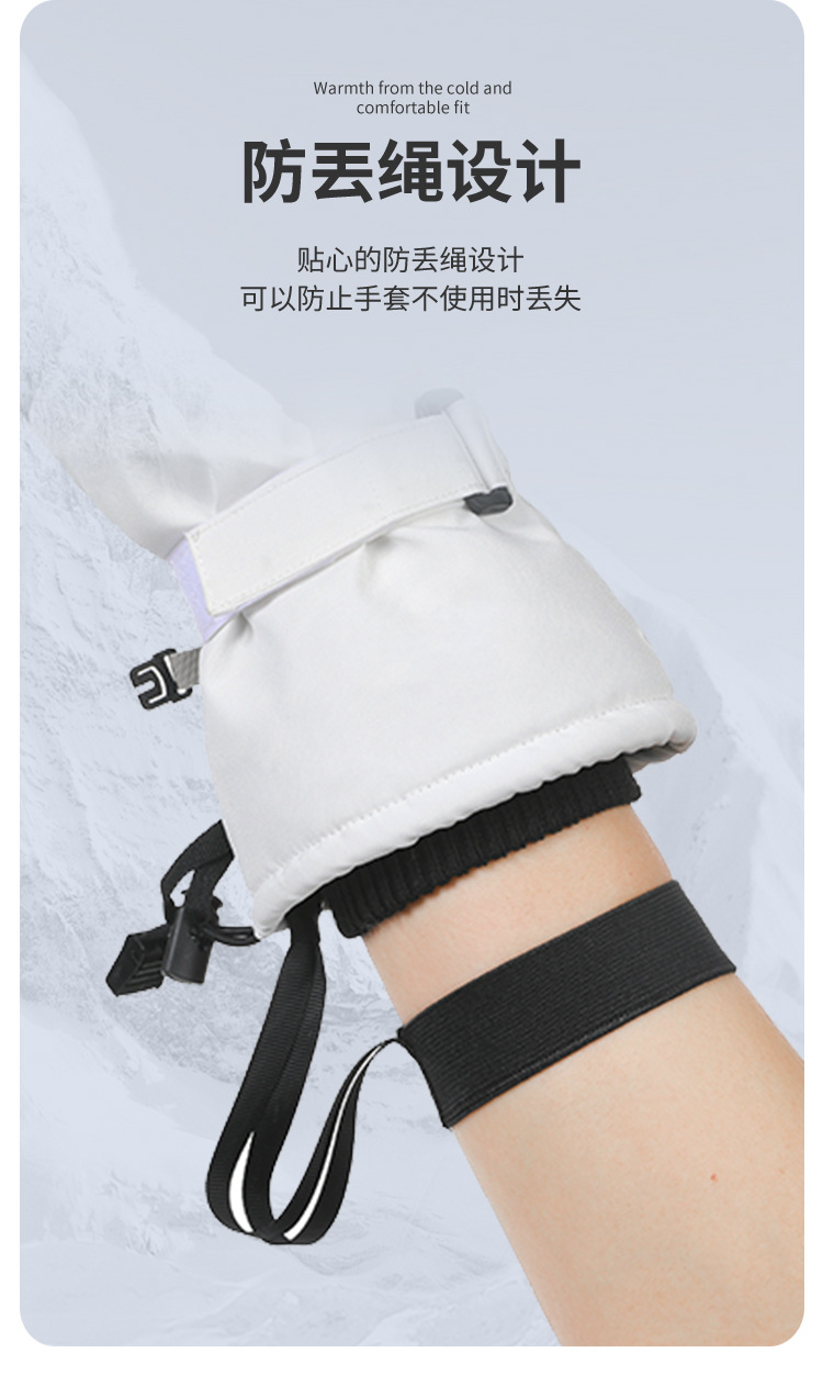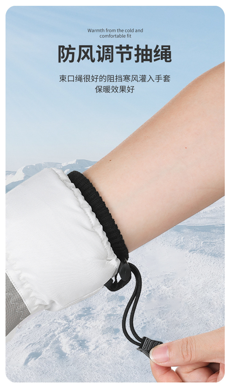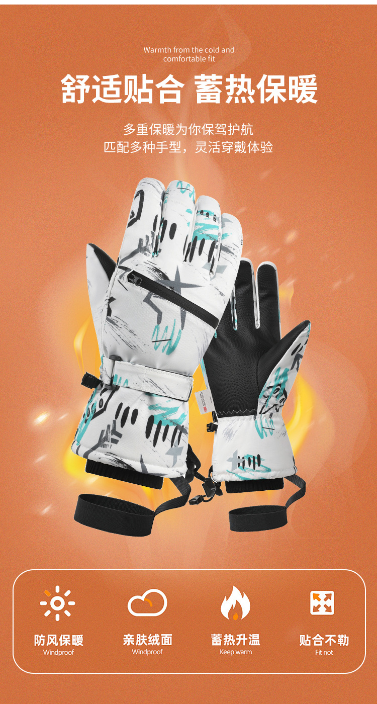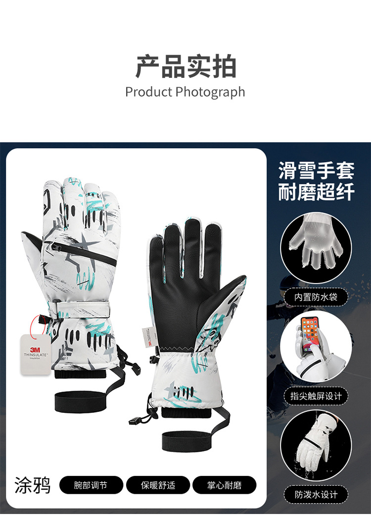 滑雪手套男女冬季白色保暖骑行运动防水袋五指手套3M棉