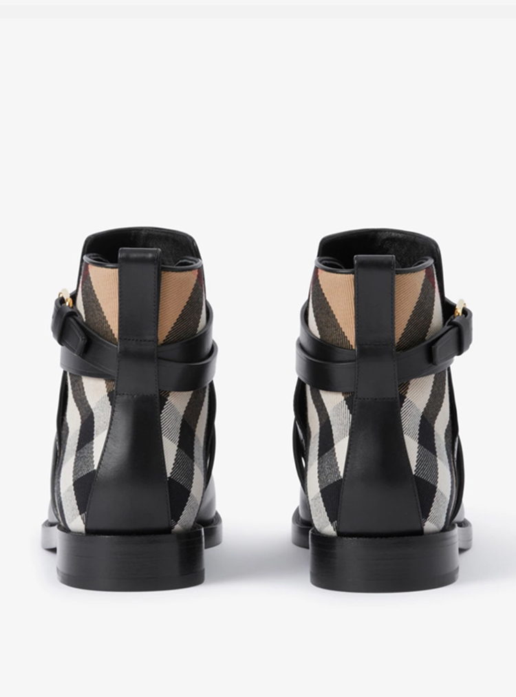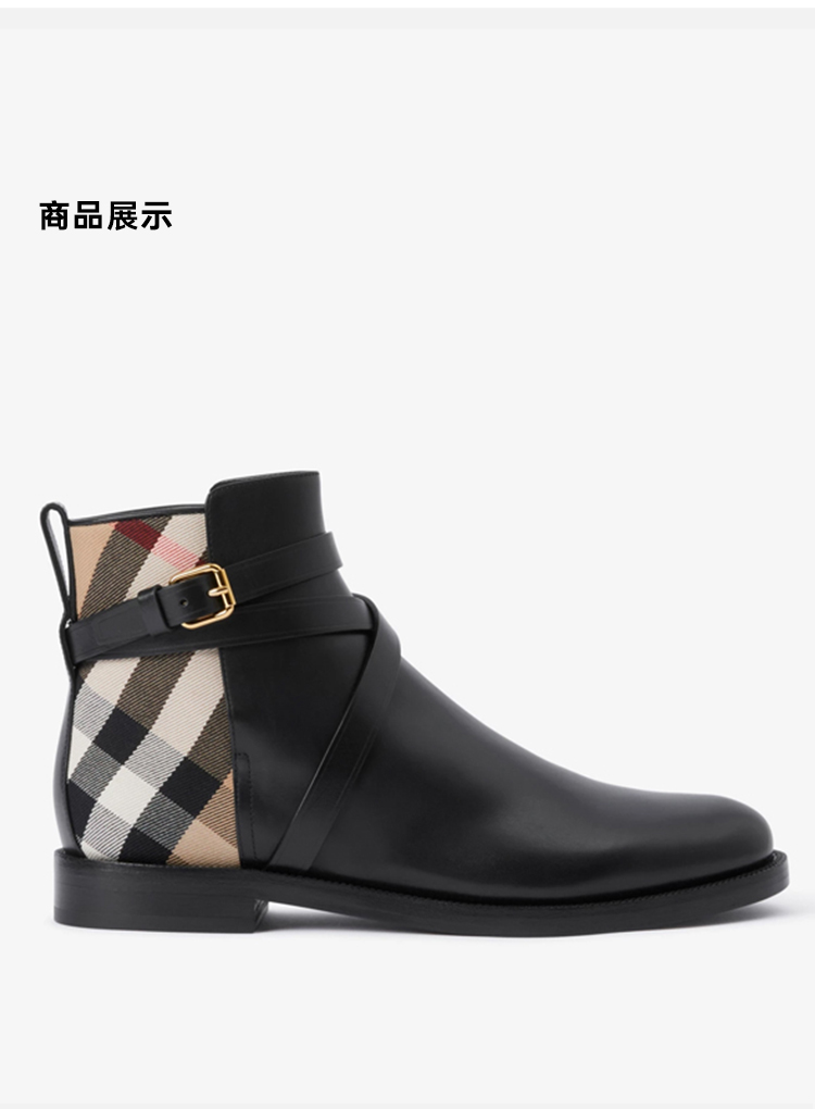 BURBERRY 巴宝莉 女士踝靴黑色格纹拼接中靴 黑色 8056819 A7626