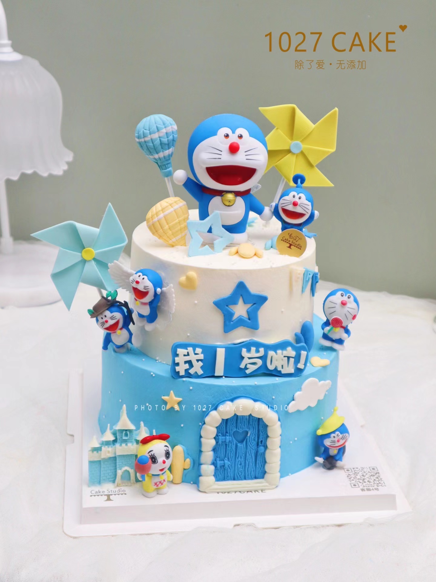 1027CAKE| 蓝色系 哆啦A梦主题 双层