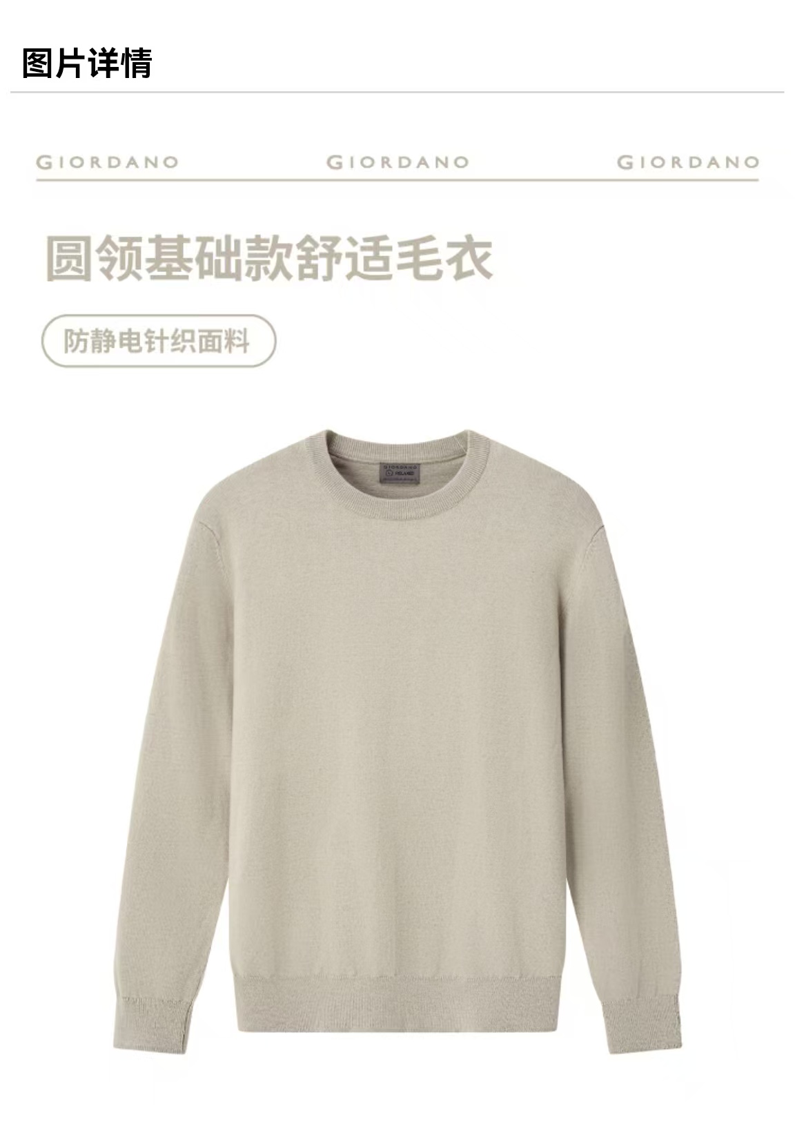 佐丹奴男装25年商场同款圆领舒适毛衣01055602