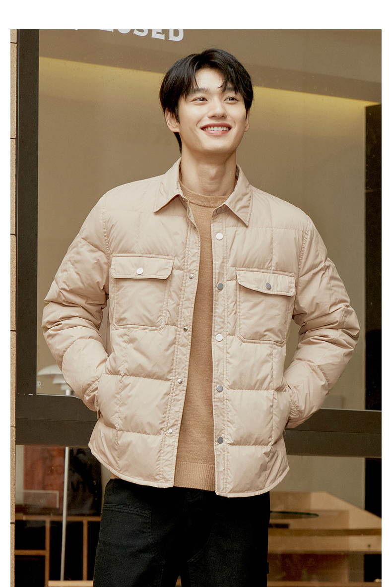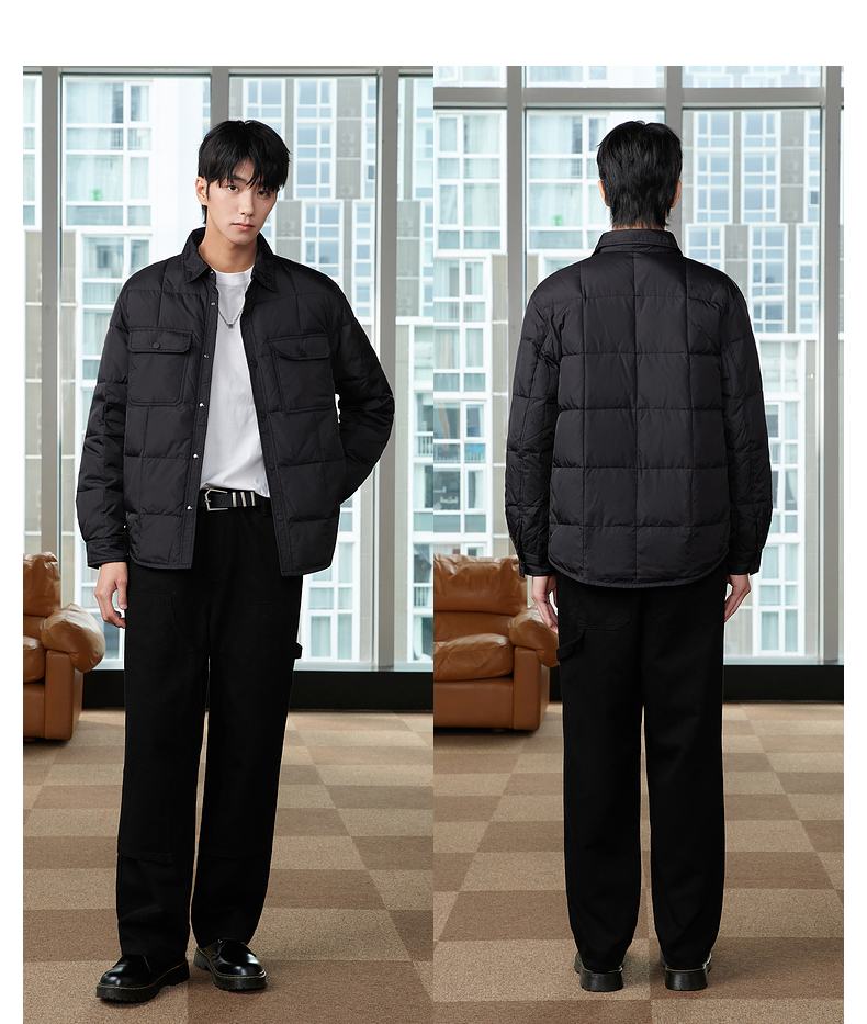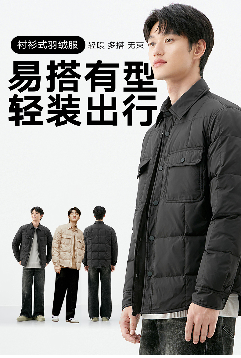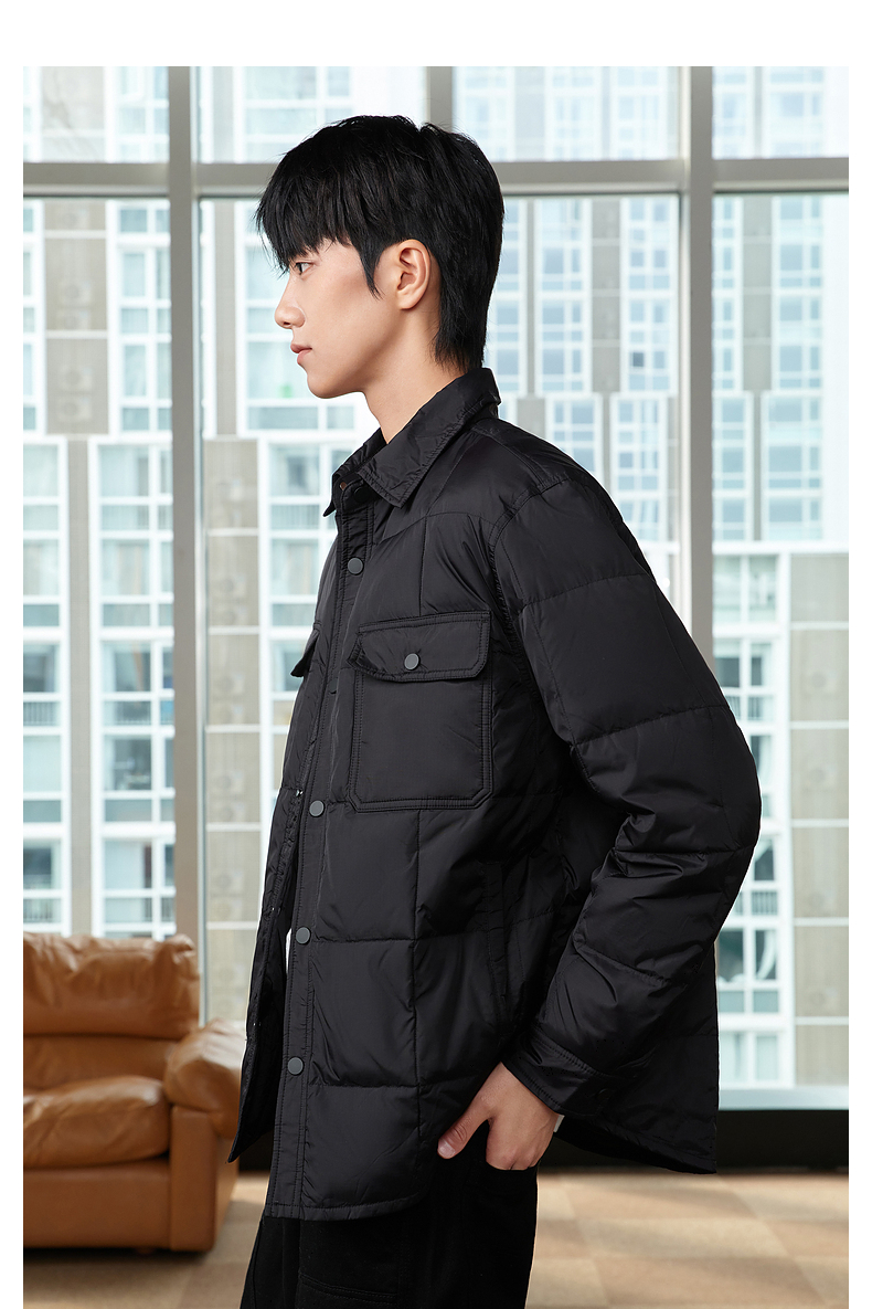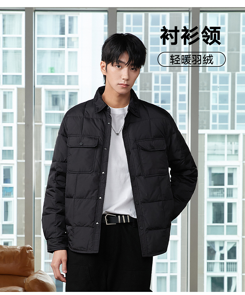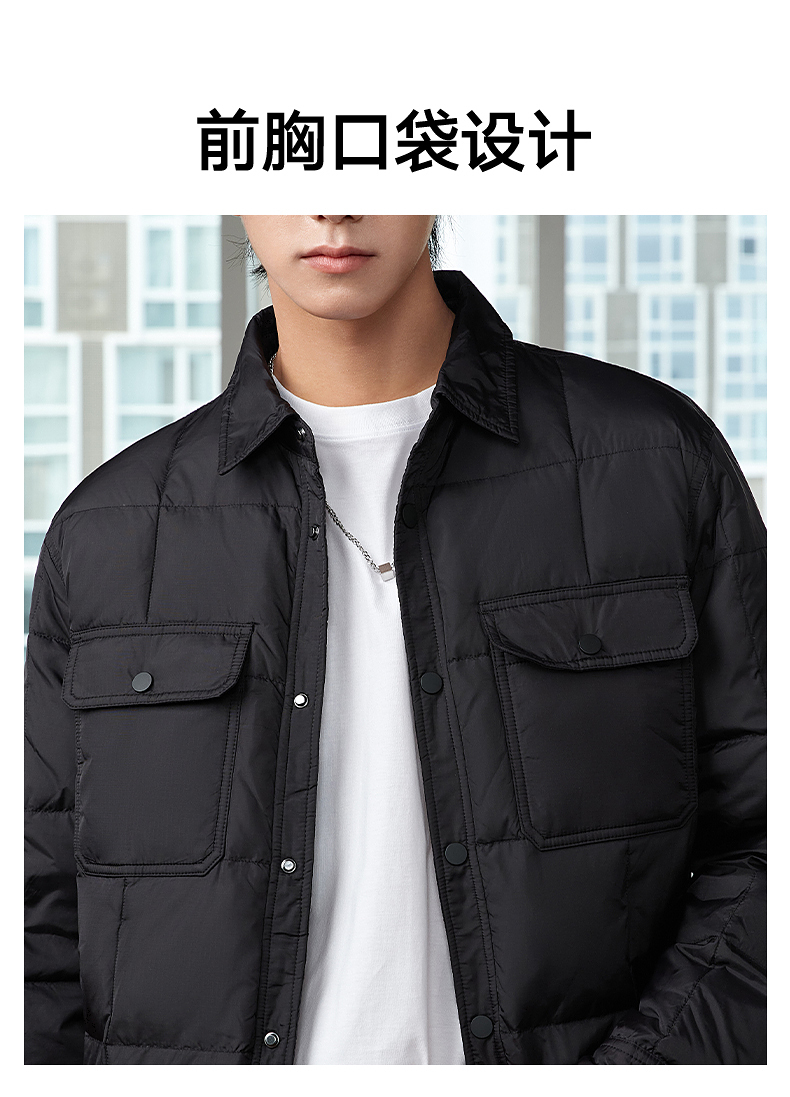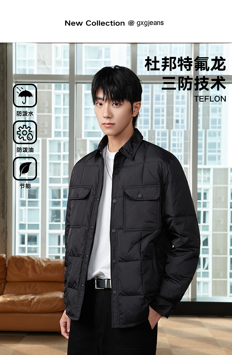 【轻薄】gxgjeans男装秋冬季羽绒服短款黑色衬衫领羽绒服男