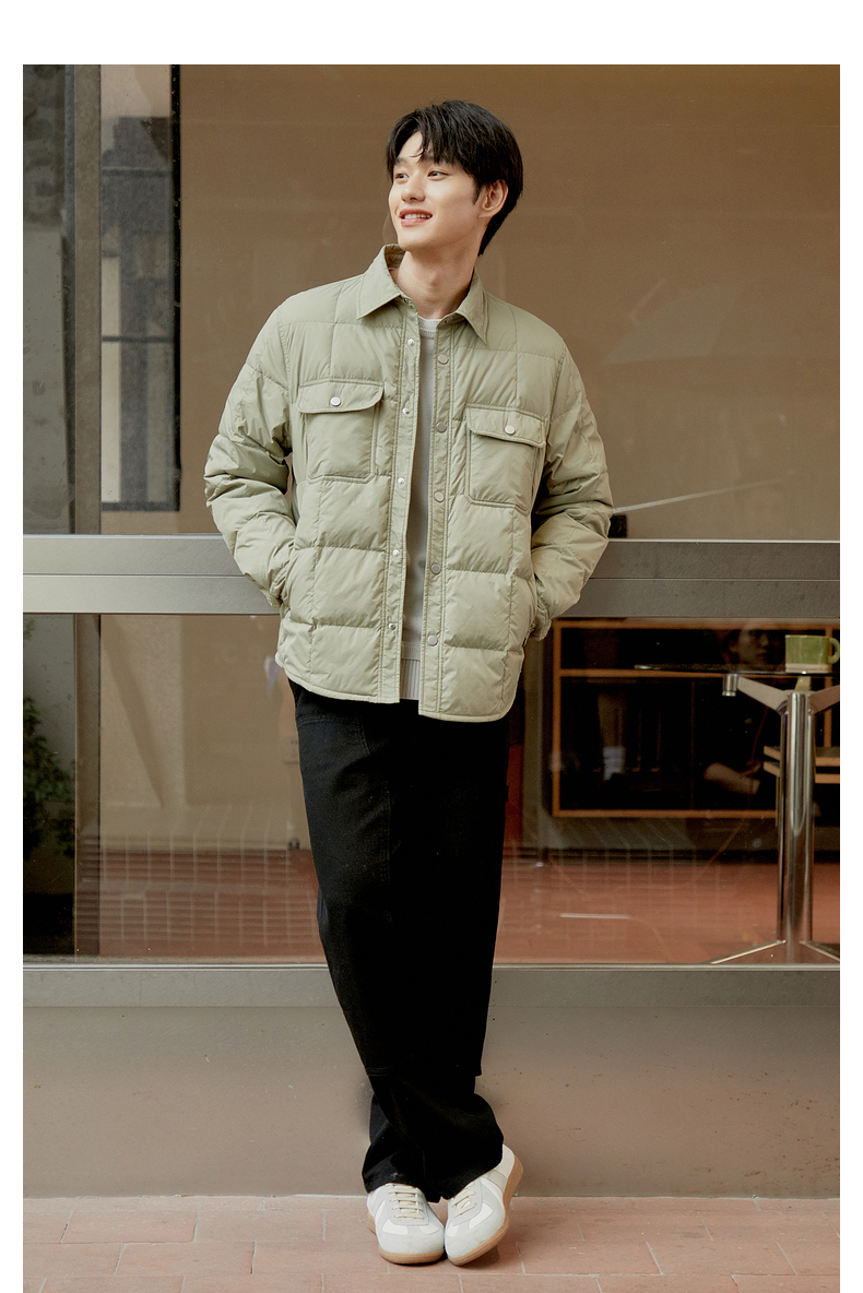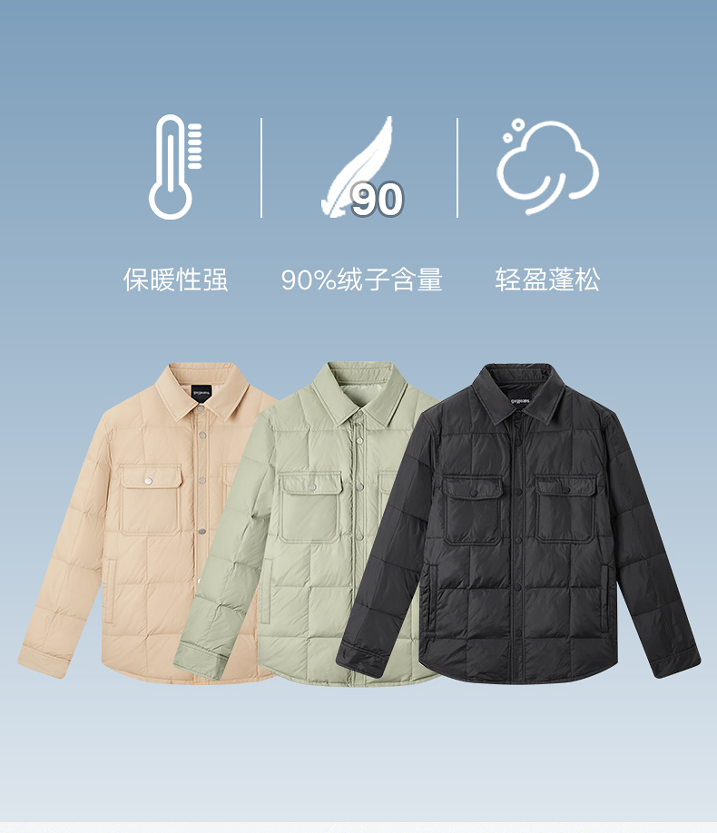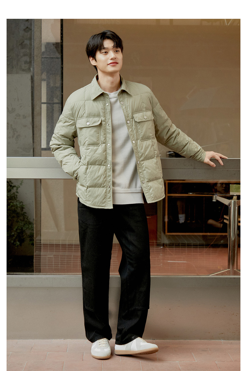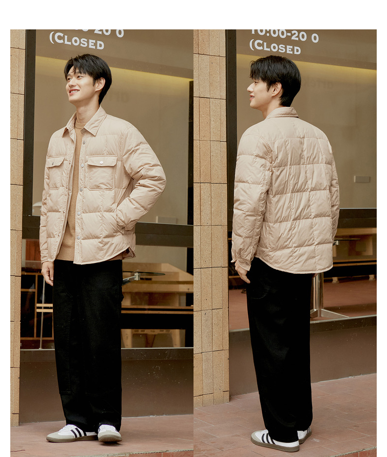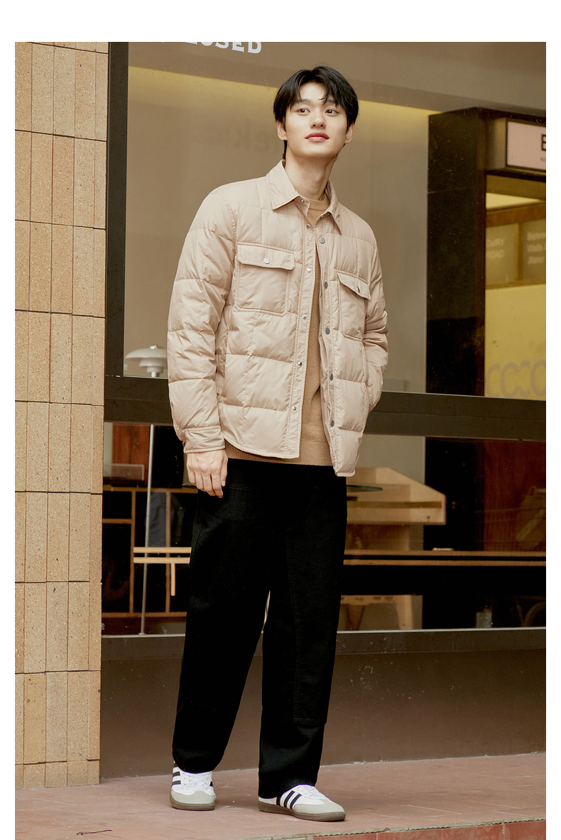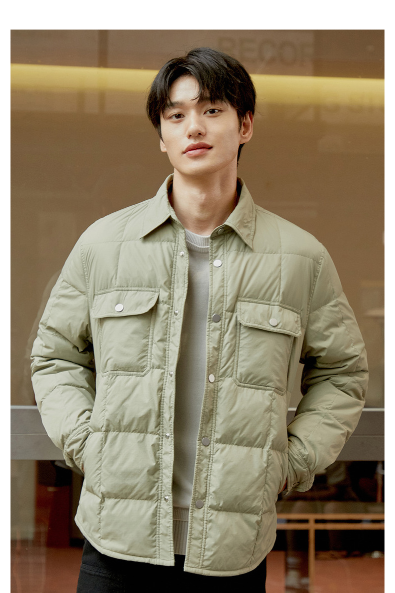【轻薄】gxgjeans男装秋冬季羽绒服短款黑色衬衫领羽绒服男