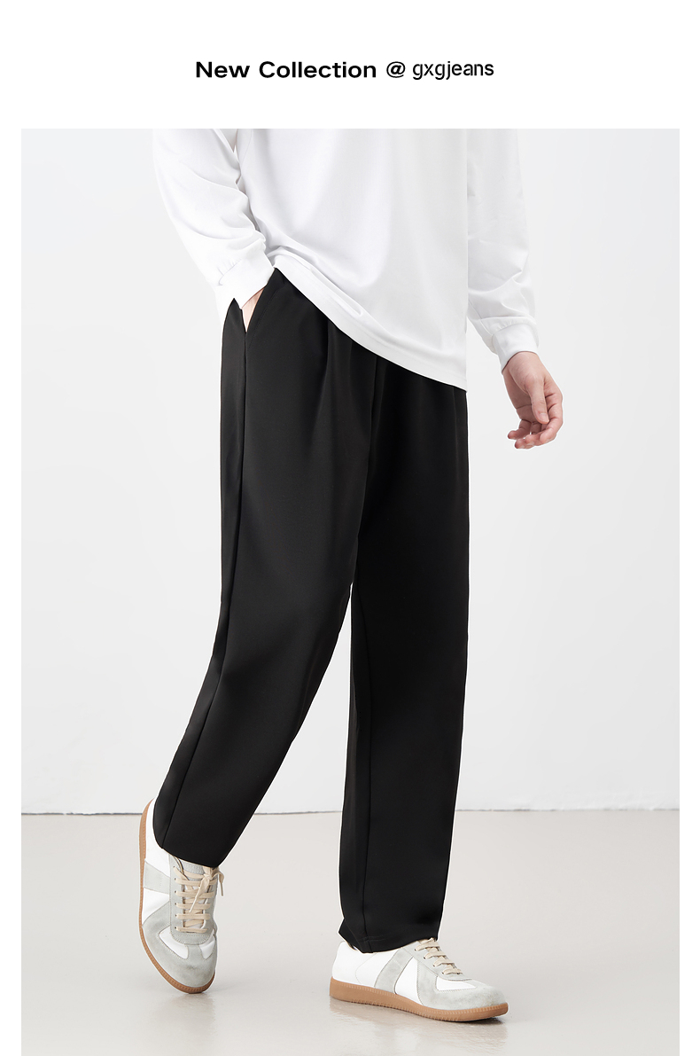 gxgjeans男装休闲裤 秋季黑色简约直筒裤子针织长裤潮J24D023016