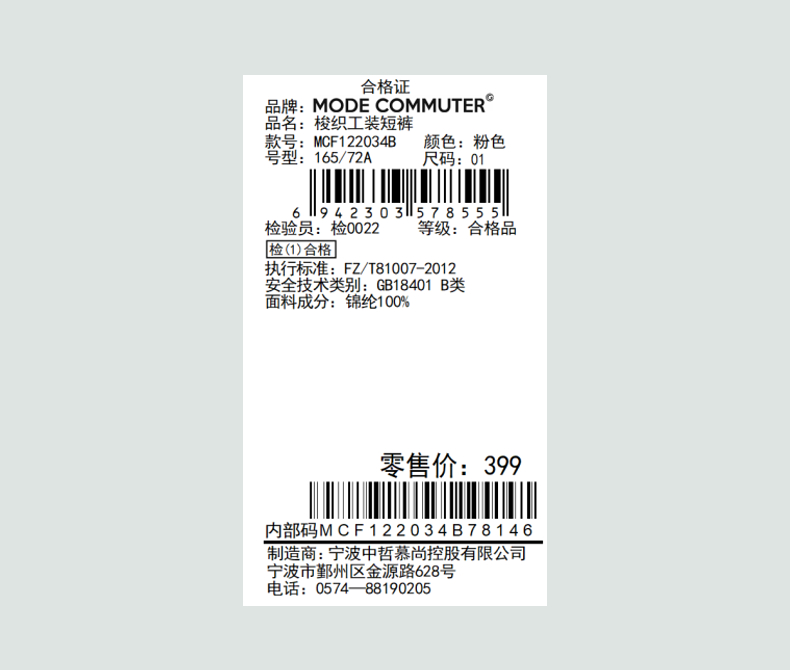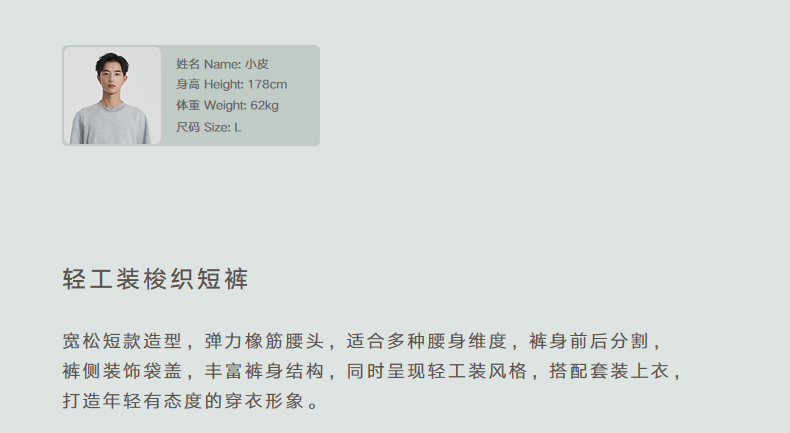 MODE COMMUTER | MC春季条感纹理梭织轻工装梭织短裤MCF122034B