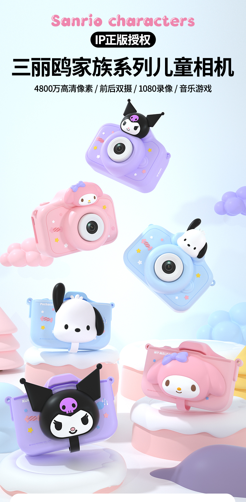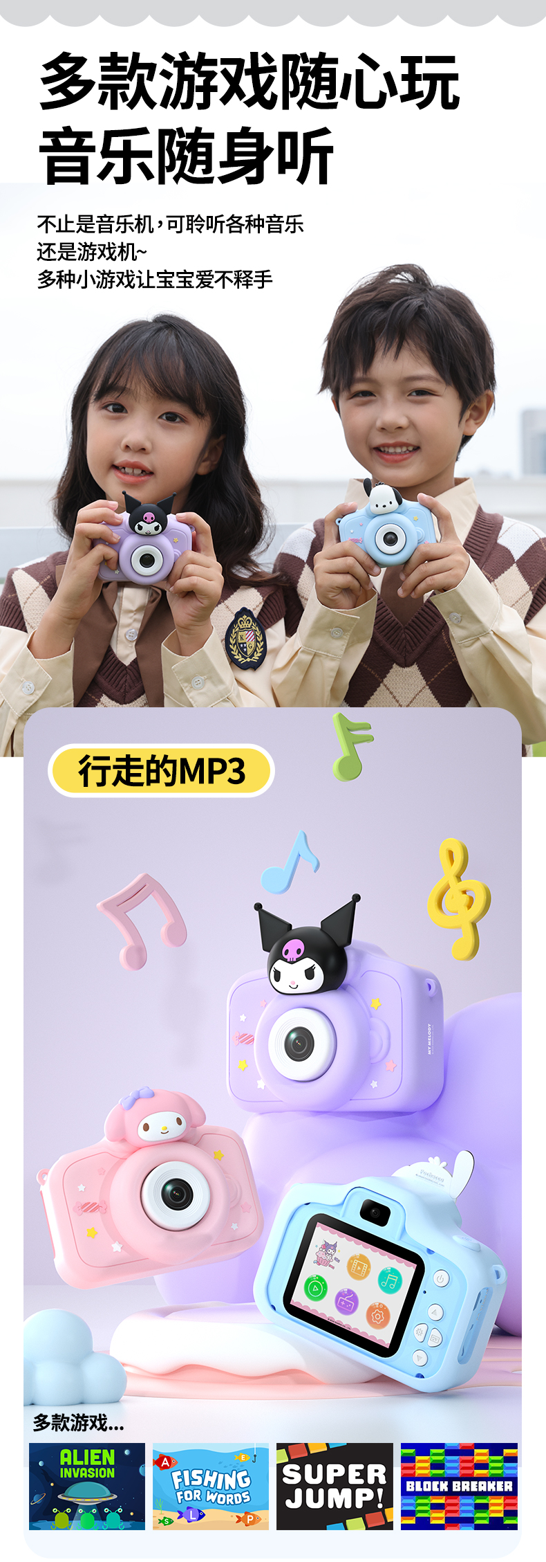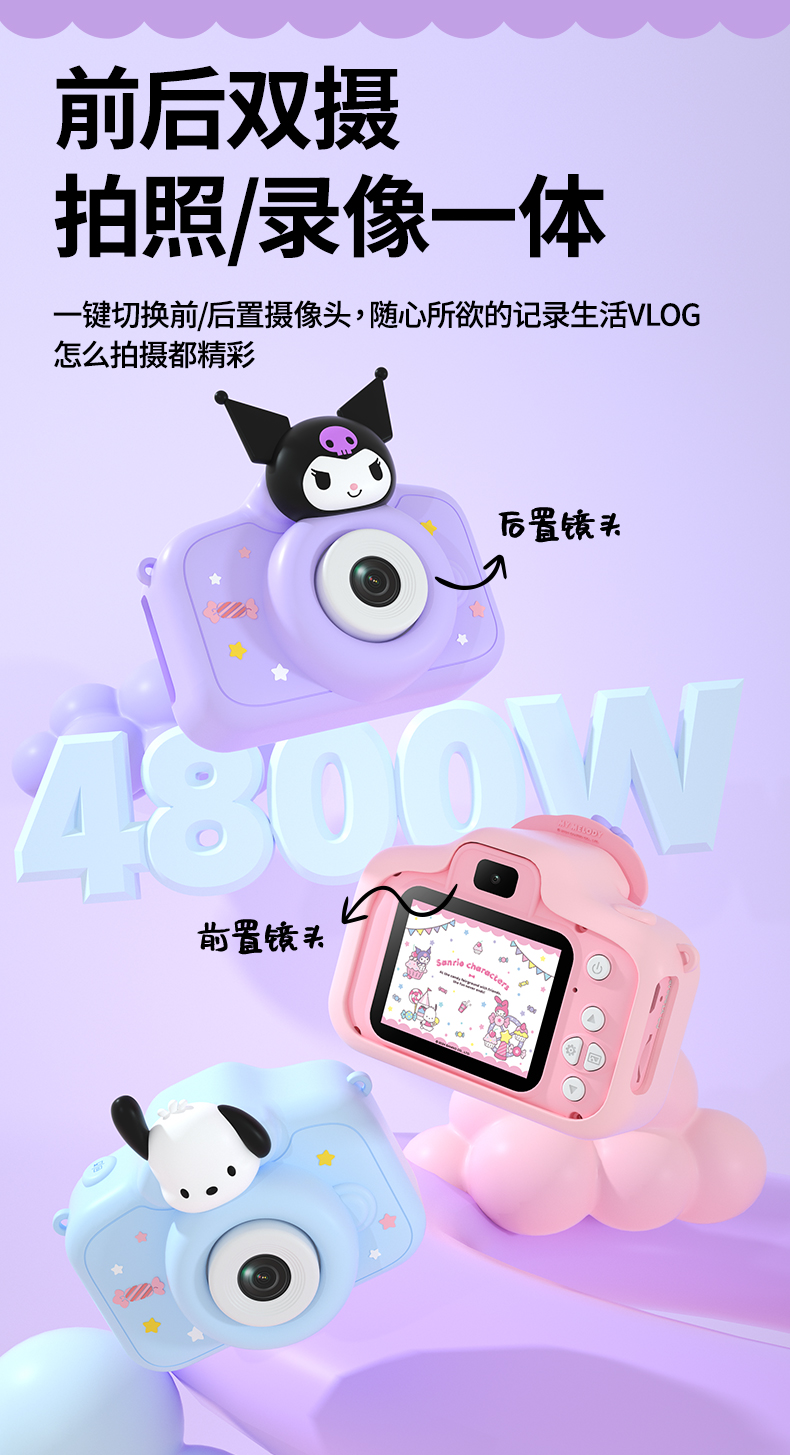 【萌趣相机拍拍乐】三丽欧库洛米儿童相机 自带音乐游戏 前后双摄小照相机
