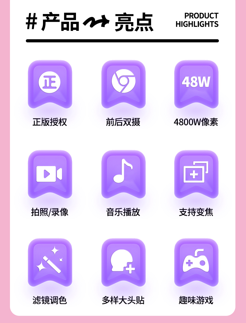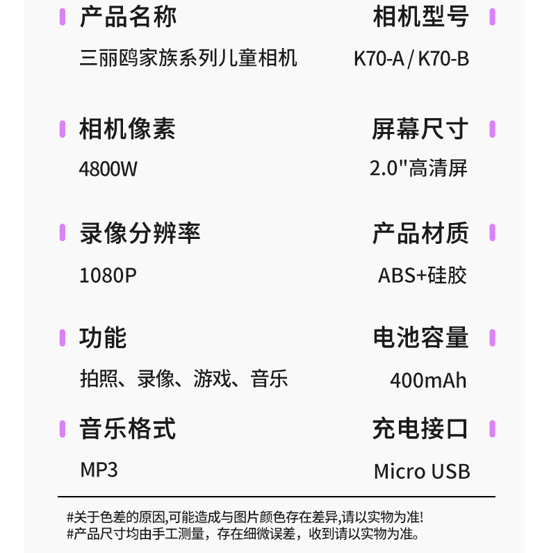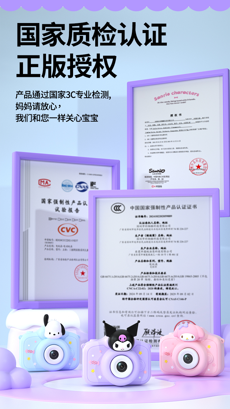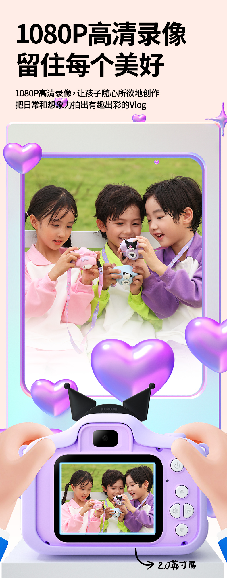【萌趣相机拍拍乐】三丽欧库洛米儿童相机 自带音乐游戏 前后双摄小照相机