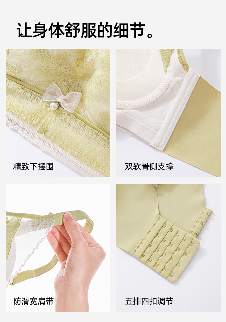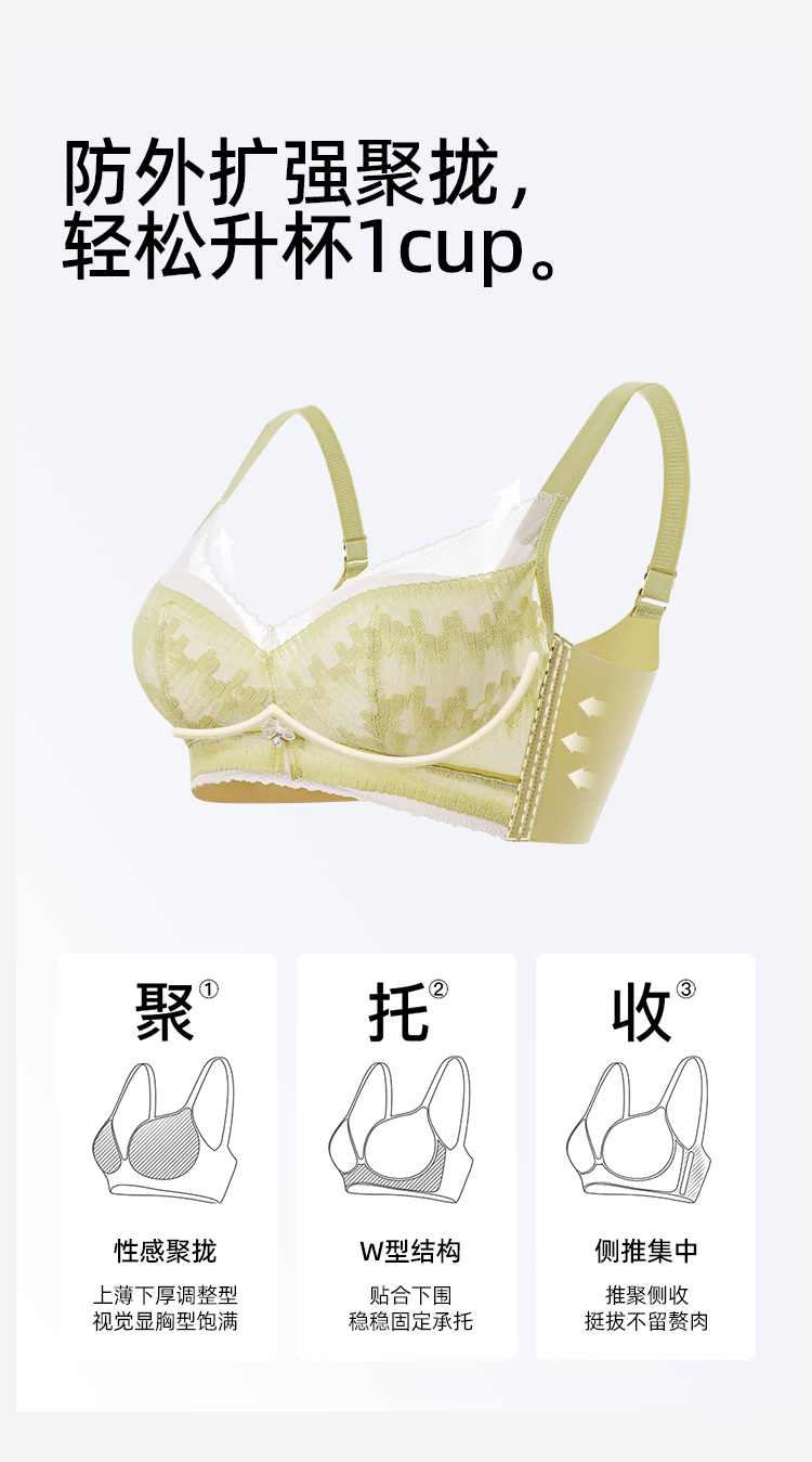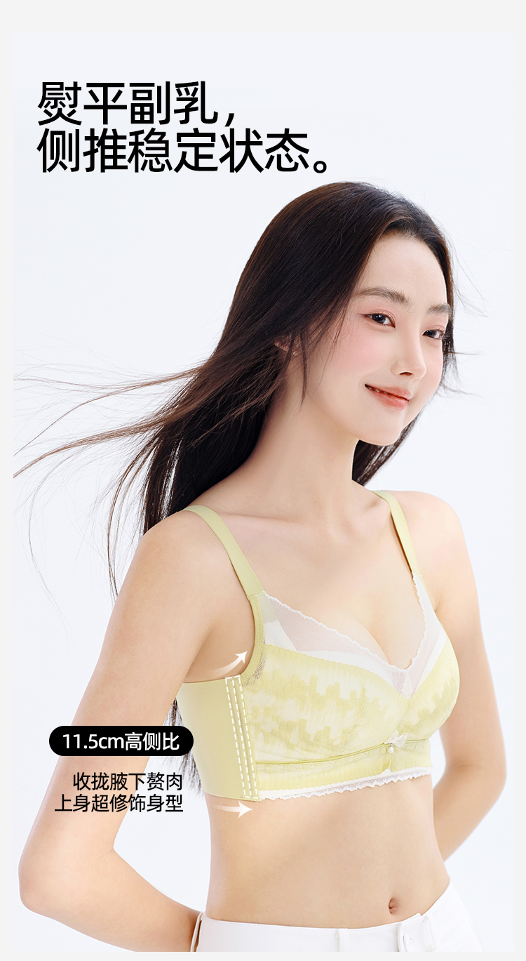 熳洁儿 小胸聚拢不空杯内衣性感撞色蕾丝聚拢调整上托收副乳24261532