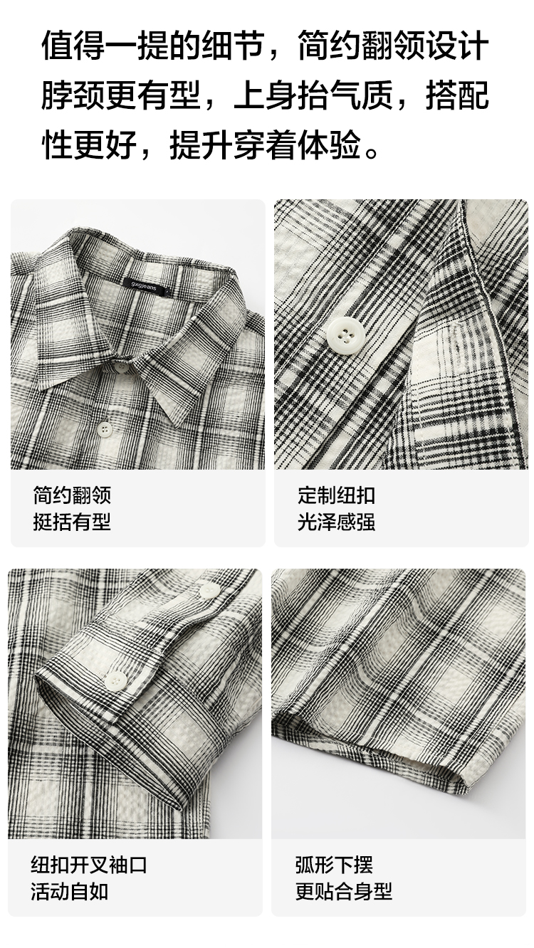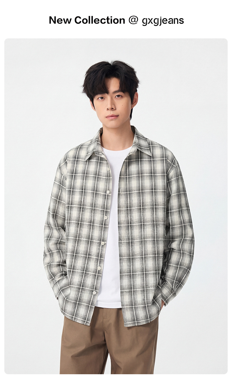 gxgjeans男装【青春流行】格子衬衫26春款时尚百搭校园户外青少年外套上衣男K&C