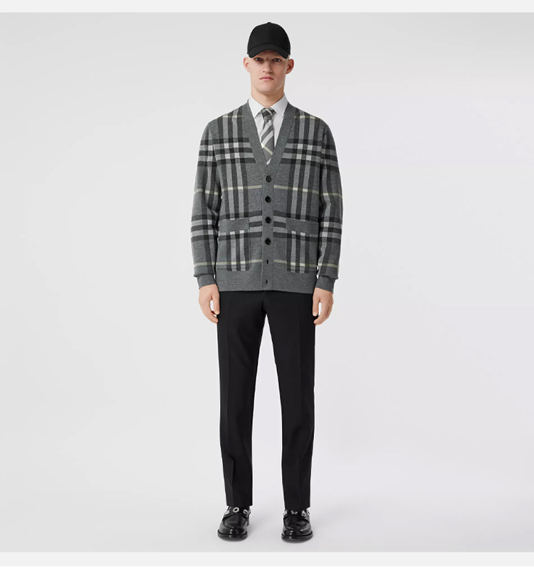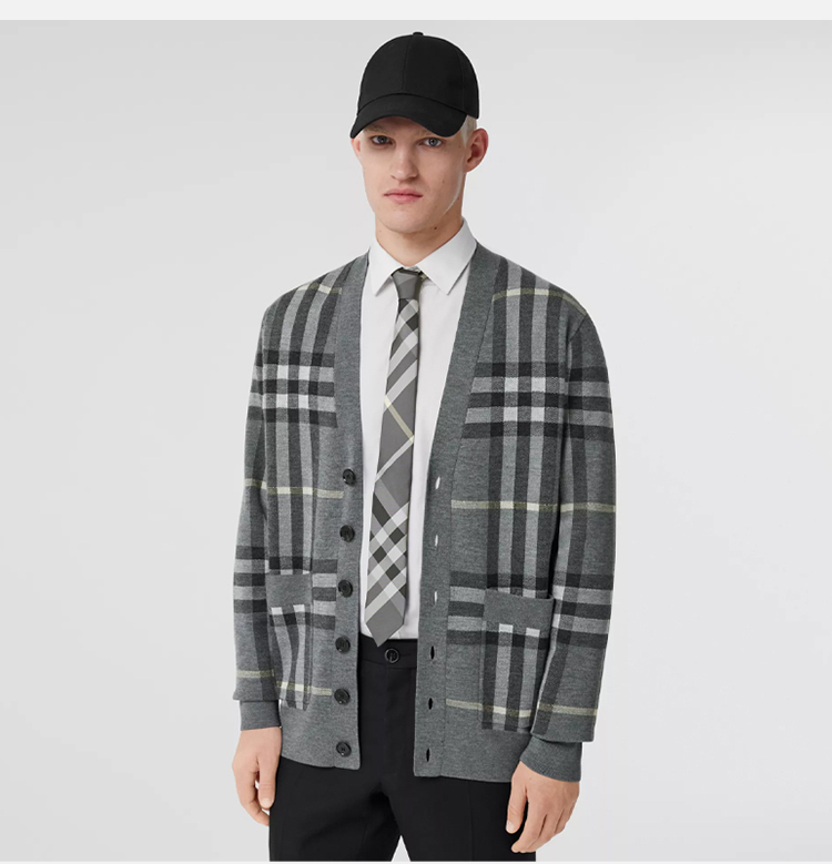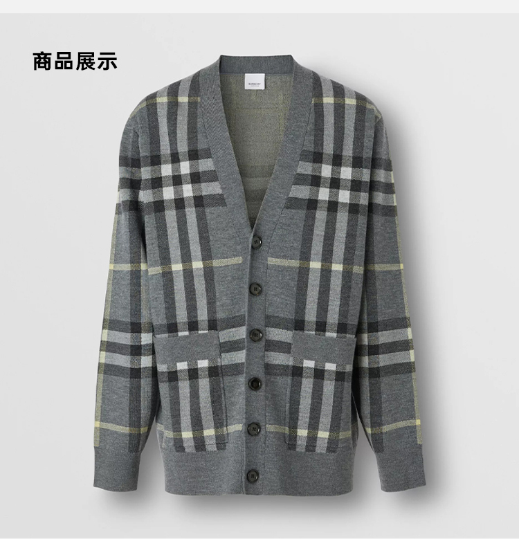 BURBERRY 巴宝莉 男士格纹羊毛真丝提花针织开衫 8049626 A4641