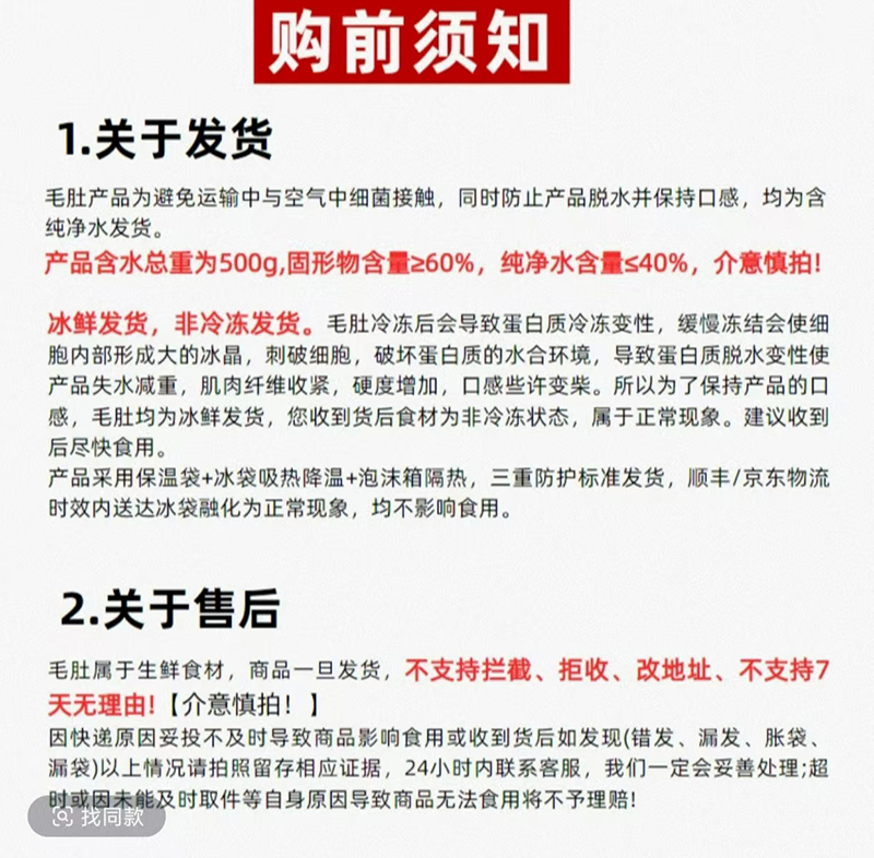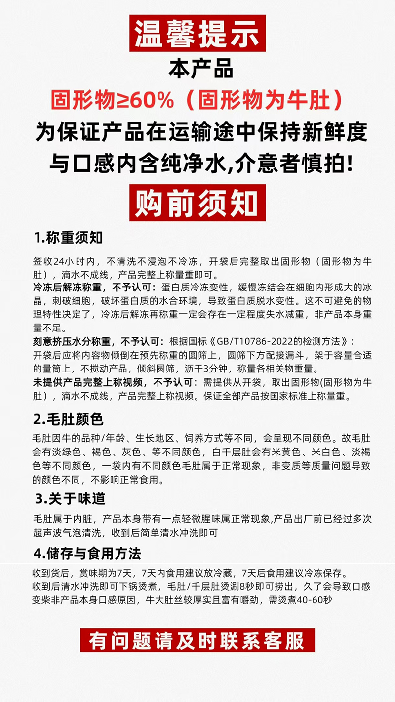 发辽宁、宁夏 贵州黄牛毛肚500g*1袋+白千层500g*1袋+黑千层500g*1袋