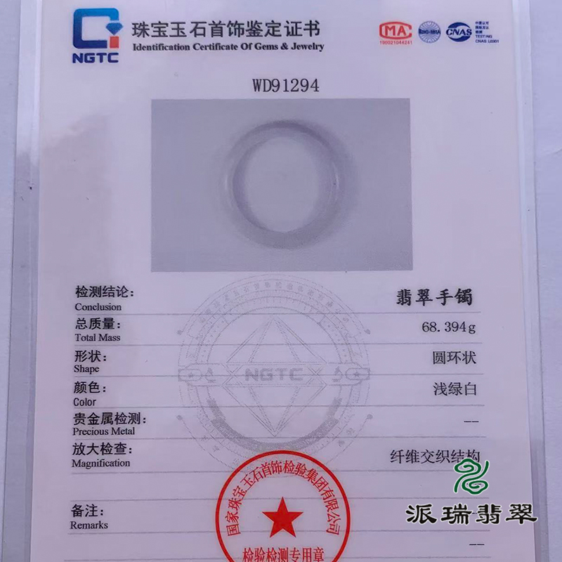 派瑞翡翠 翡翠手镯 糯种 浅绿