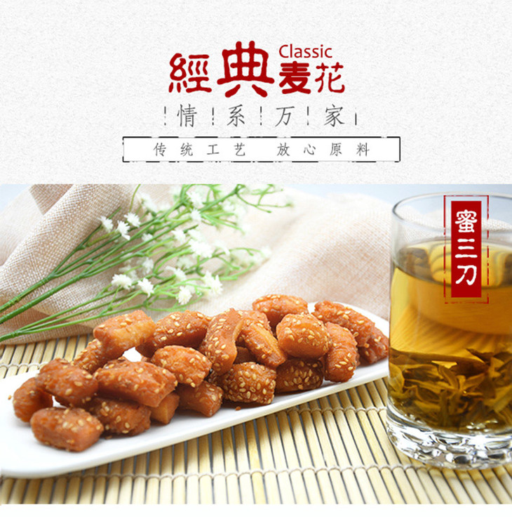 【旅大印象·麦花】蜜三刀精品分享装(整箱1200g) 60余年手工艺传承 匠心制作 微润不干 放心原料 早餐配牛奶味道更好 特色糕点包邮