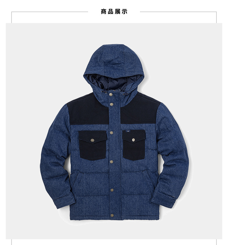 Lee商场同款101+22秋冬新品舒适拼接蓝男羽绒服LMT003619100-769