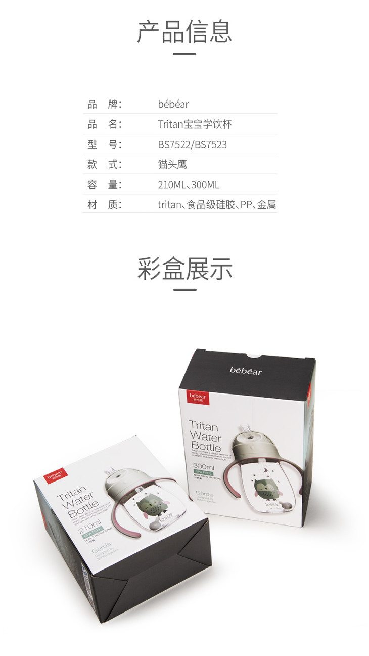 抱抱熊bebear儿童水杯吸管杯学饮杯7522