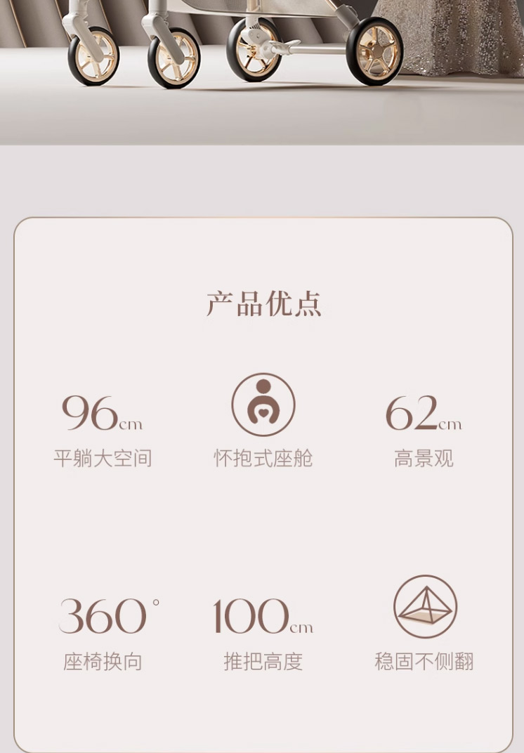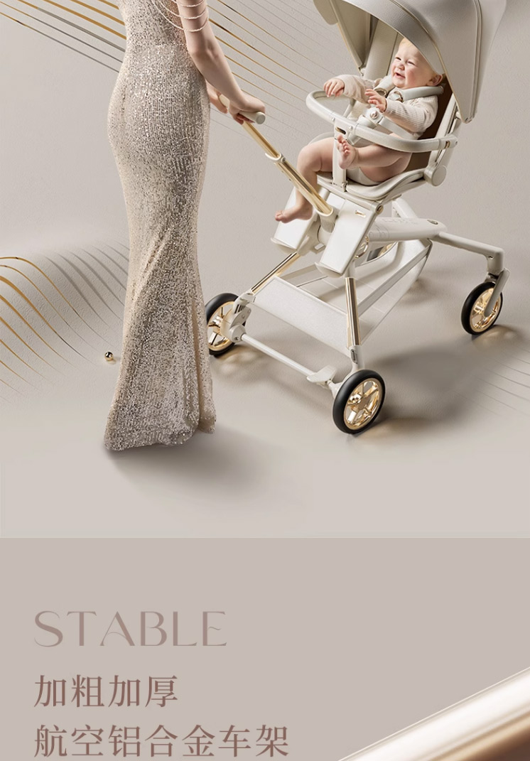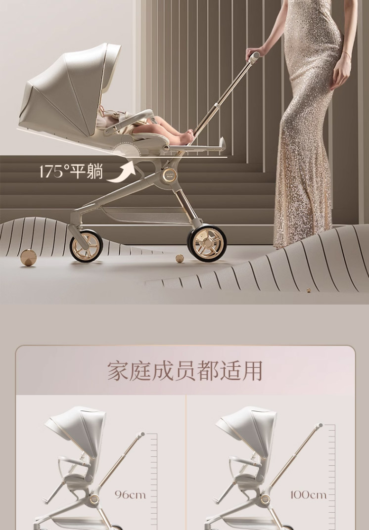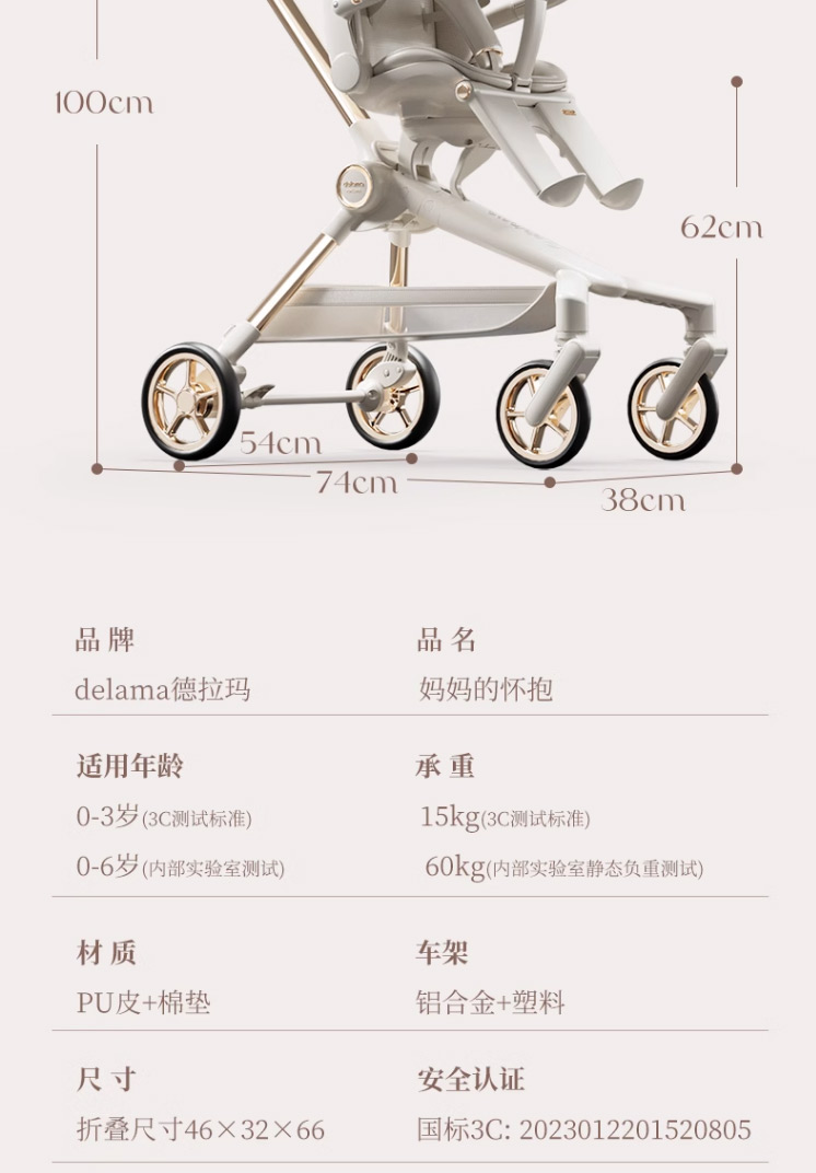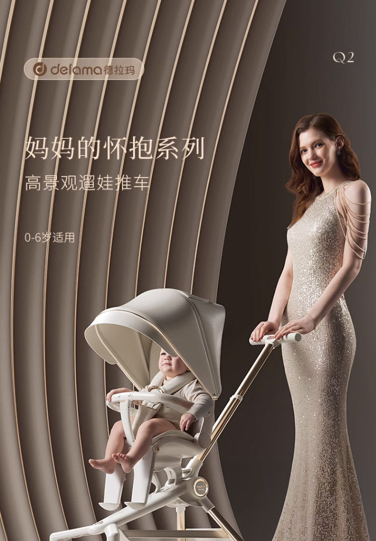 Delama德拉玛Q2 妈妈怀抱系列遛娃神器高景观可坐可躺可折叠溜娃推车婴儿车0-6岁