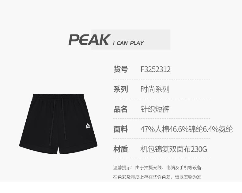 匹克2025年新款时尚系列女款针织短裤F3252312