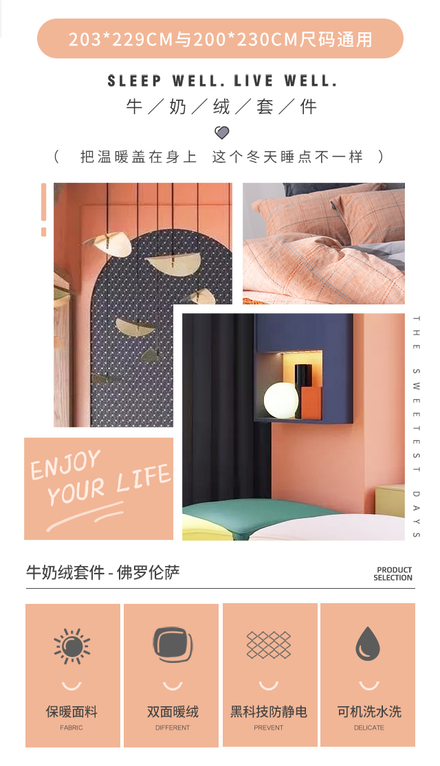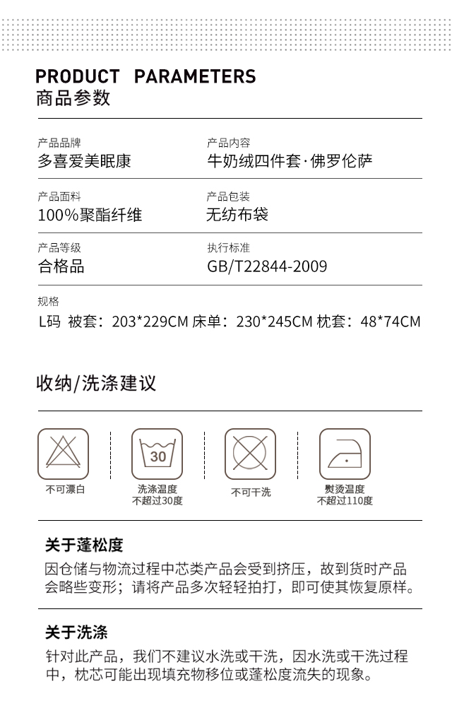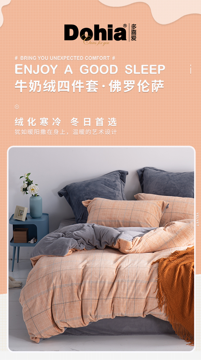 多喜爱 牛奶绒四件套佛罗伦萨L码【一触即暖】【抗静电】细腻绒毛 暖而不闷 透湿排汗 可水洗机洗 双面设计