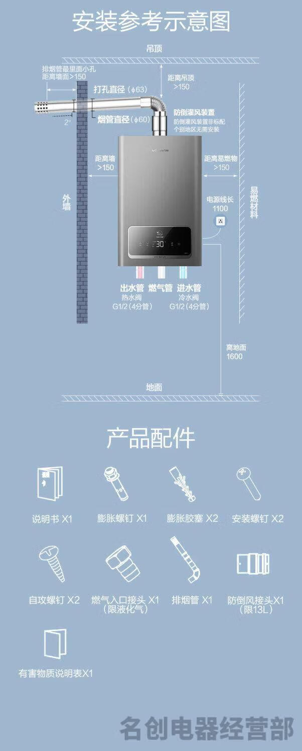 万和(Vanward)燃气热水器天然气_恒温BE3变频速热水伺服 钛银灰-13升/16升