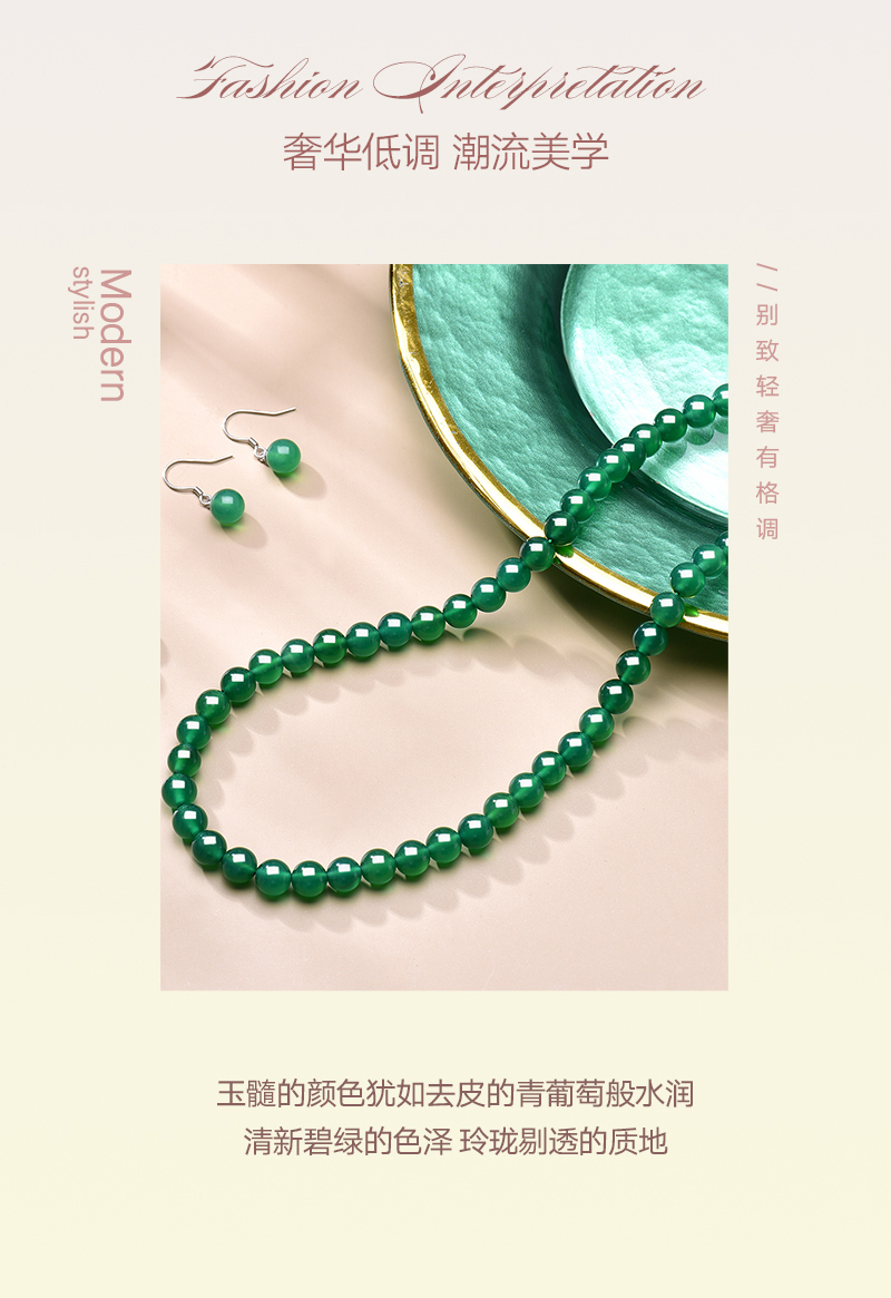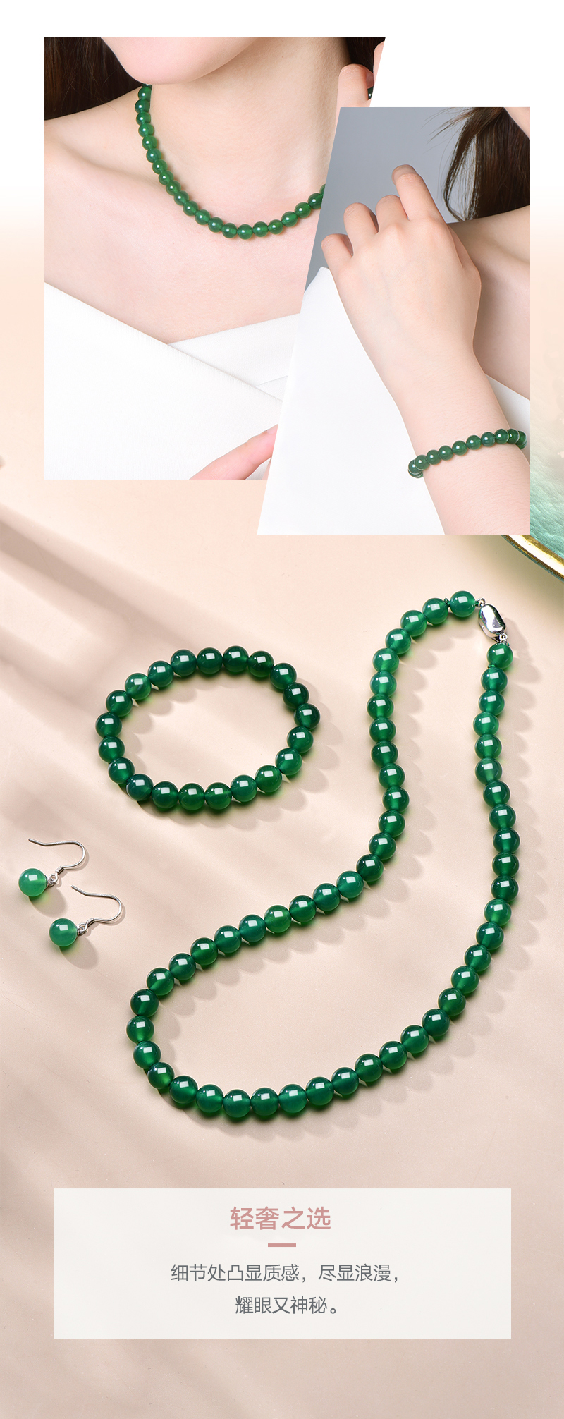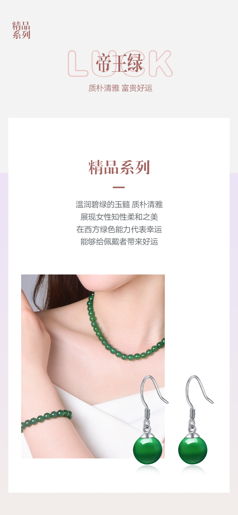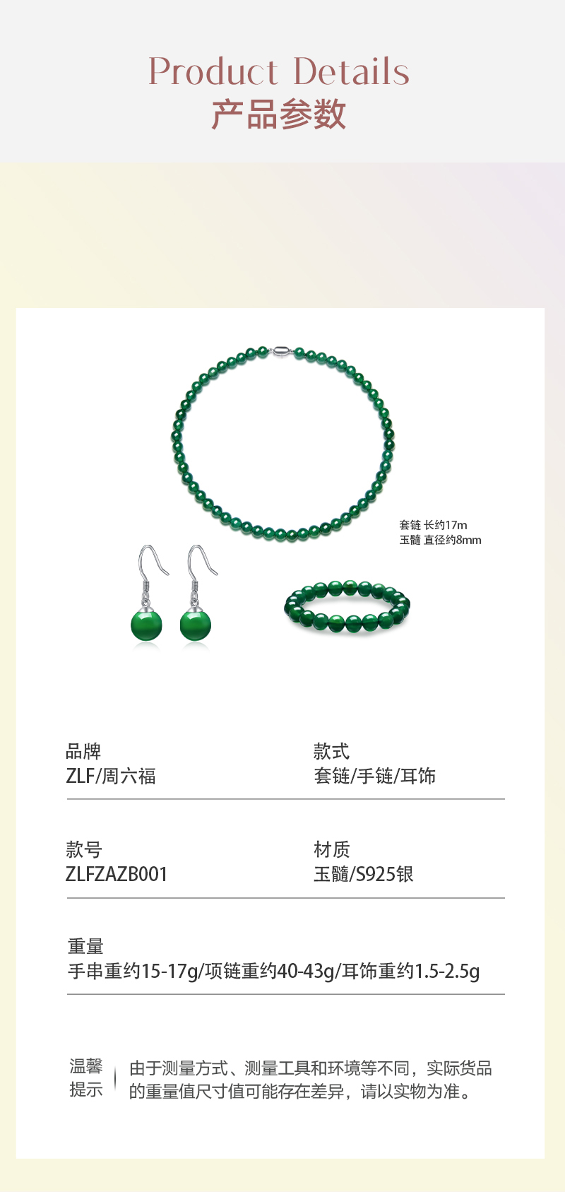 周六福s925银玉髓帝王绿套装ZLFZAZB001★