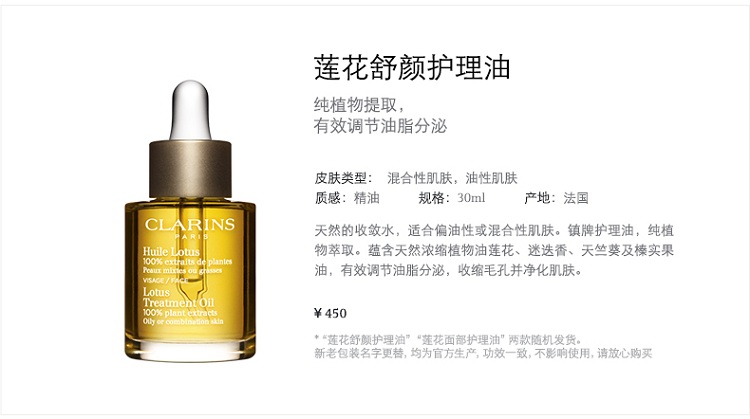 CLARINS/娇韵诗 莲花面部护理油30ML