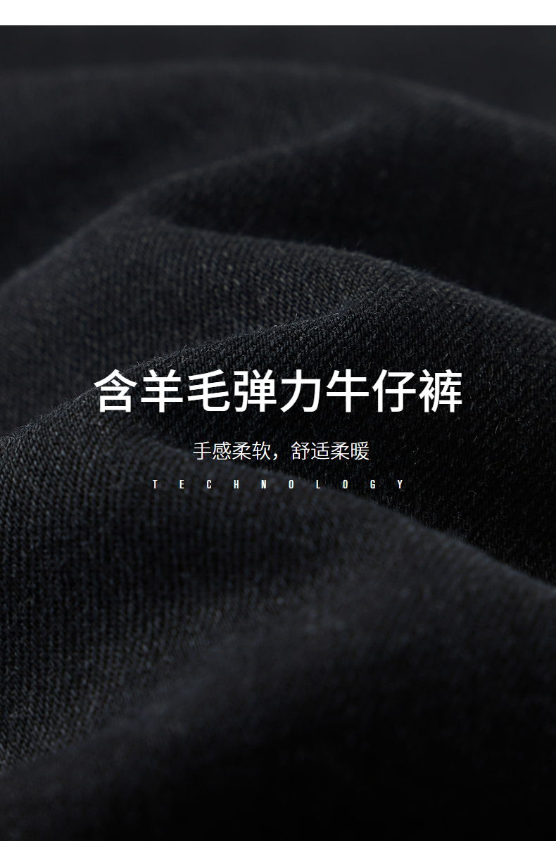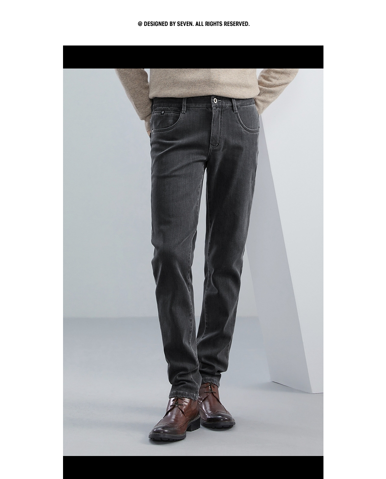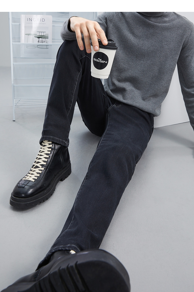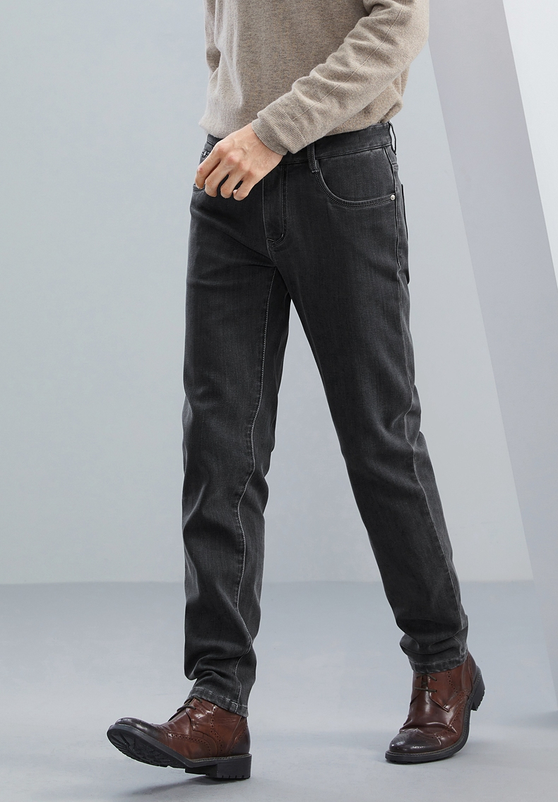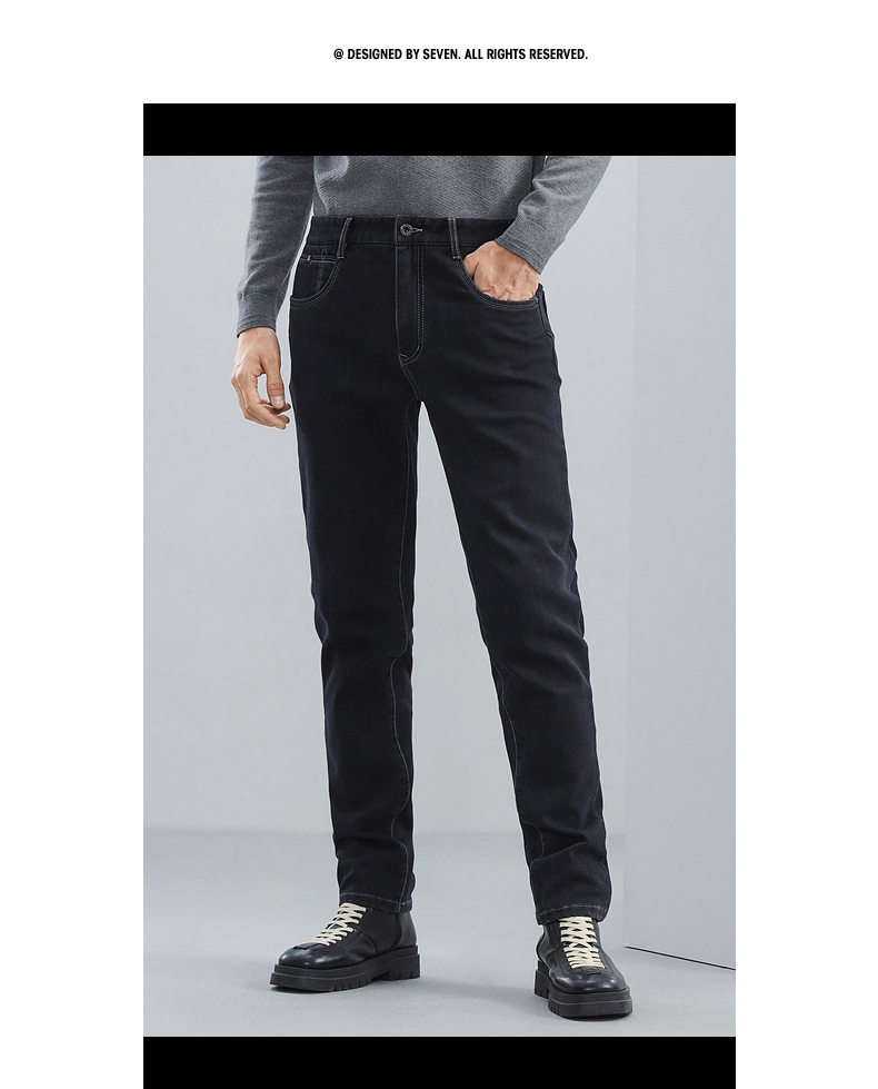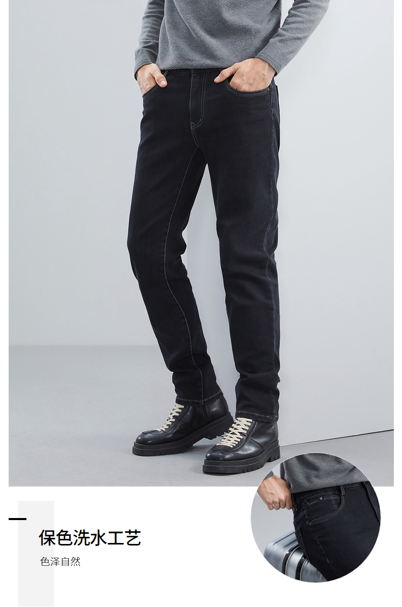 【含羊毛】柒牌保色洗牛仔裤男冬季厚款商务休闲弹力直筒长裤 125H71080