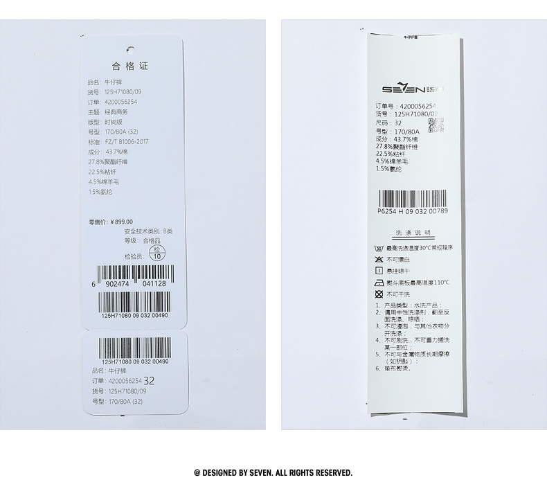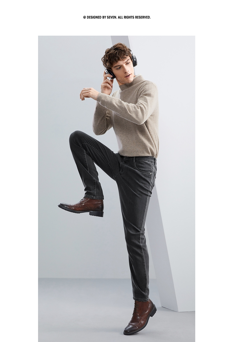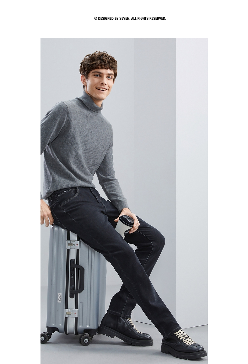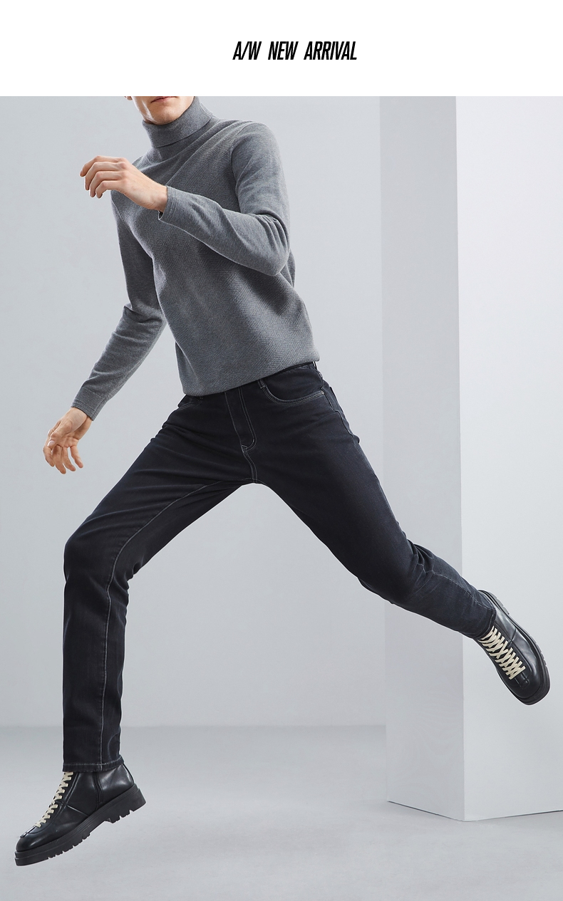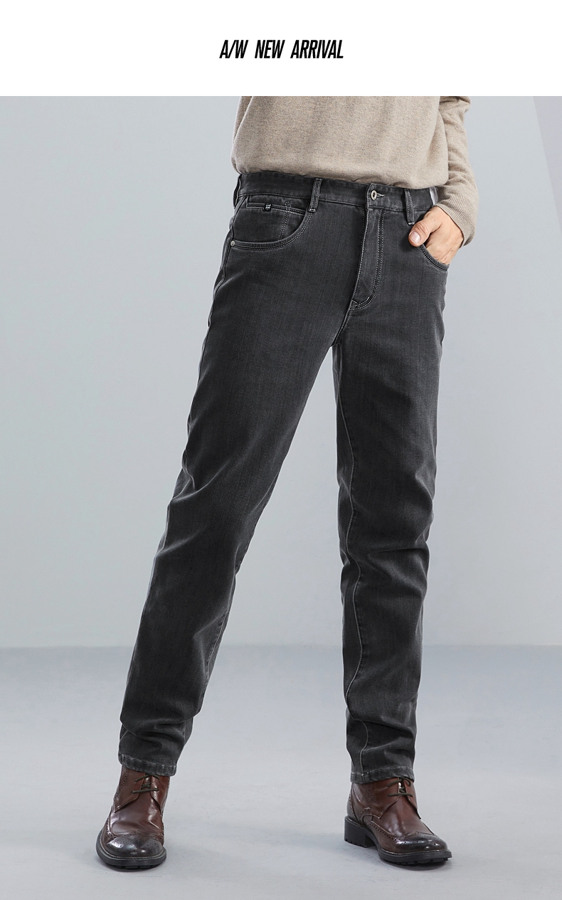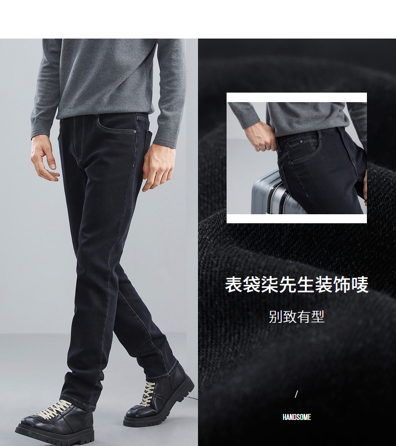 【含羊毛】柒牌保色洗牛仔裤男冬季厚款商务休闲弹力直筒长裤 125H71080