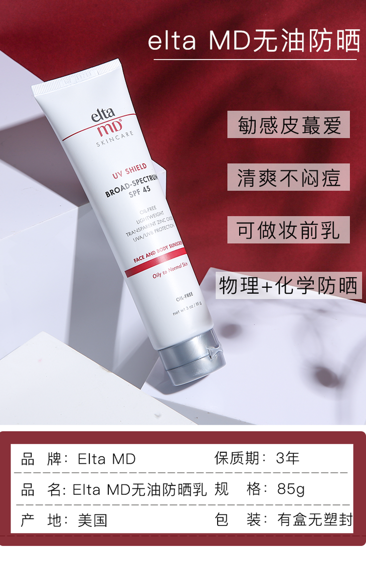 EltaMD舒护清爽物理三重防晒霜SPF32+ 温和不刺激清透无油