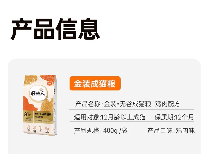 心选丨好主人金装成猫无谷猫粮体验装 400g