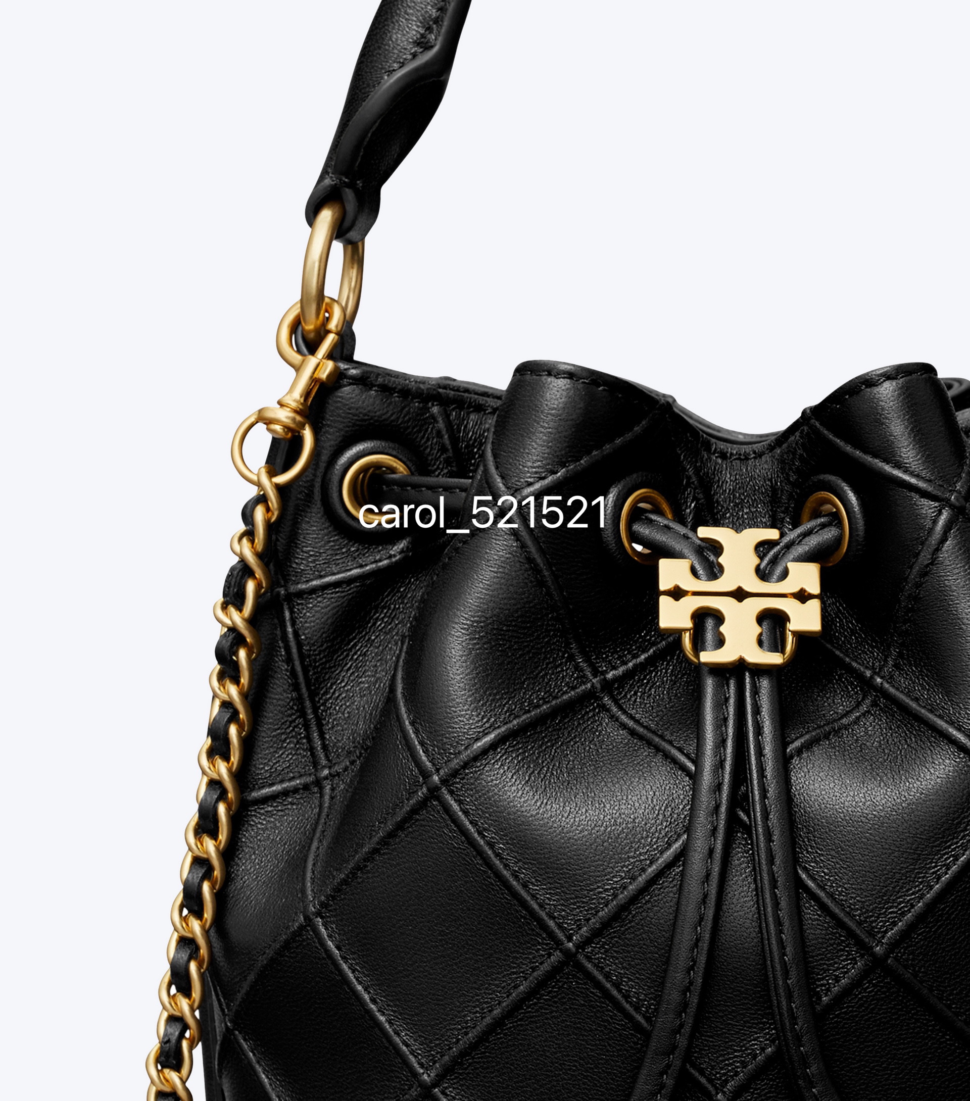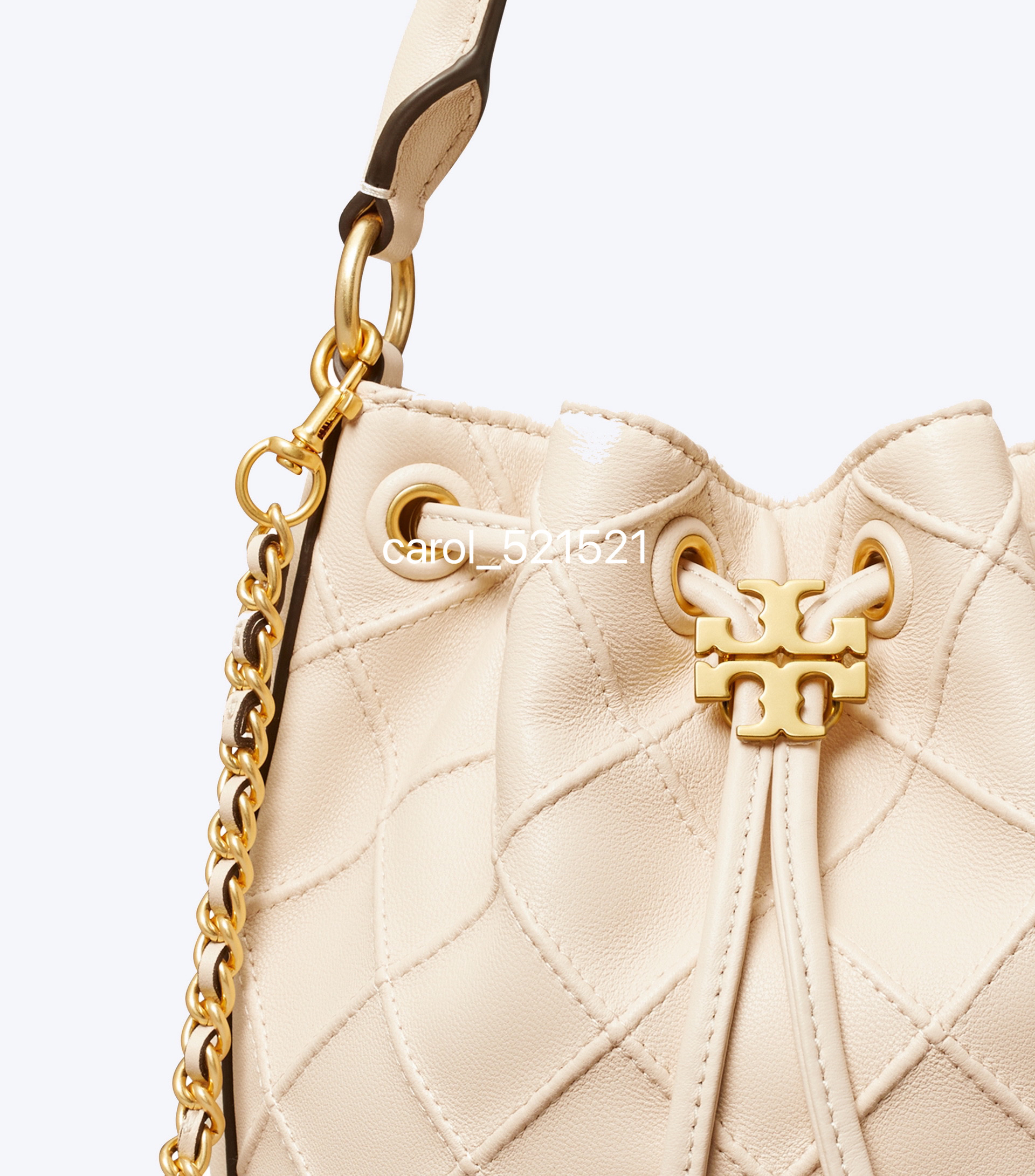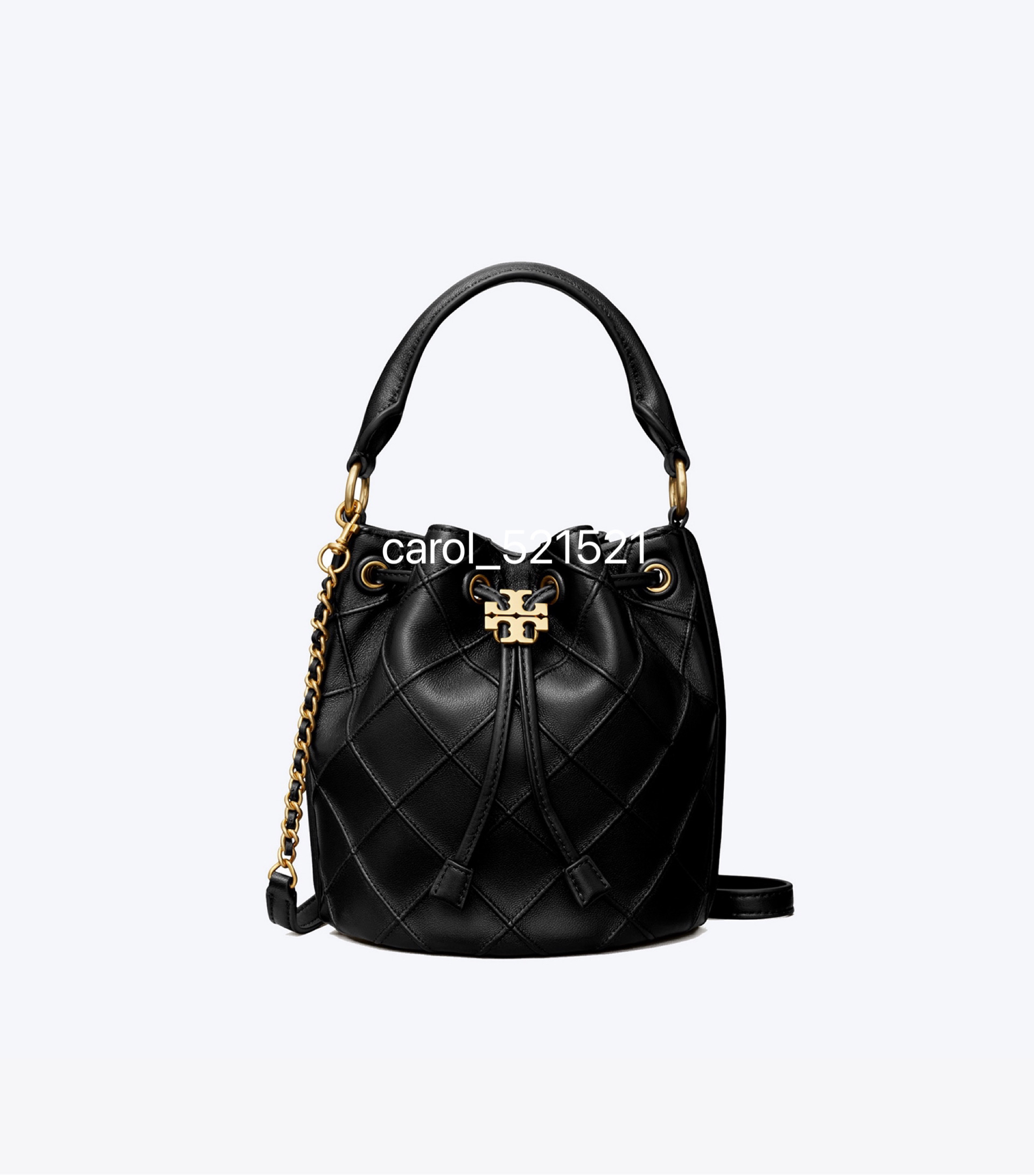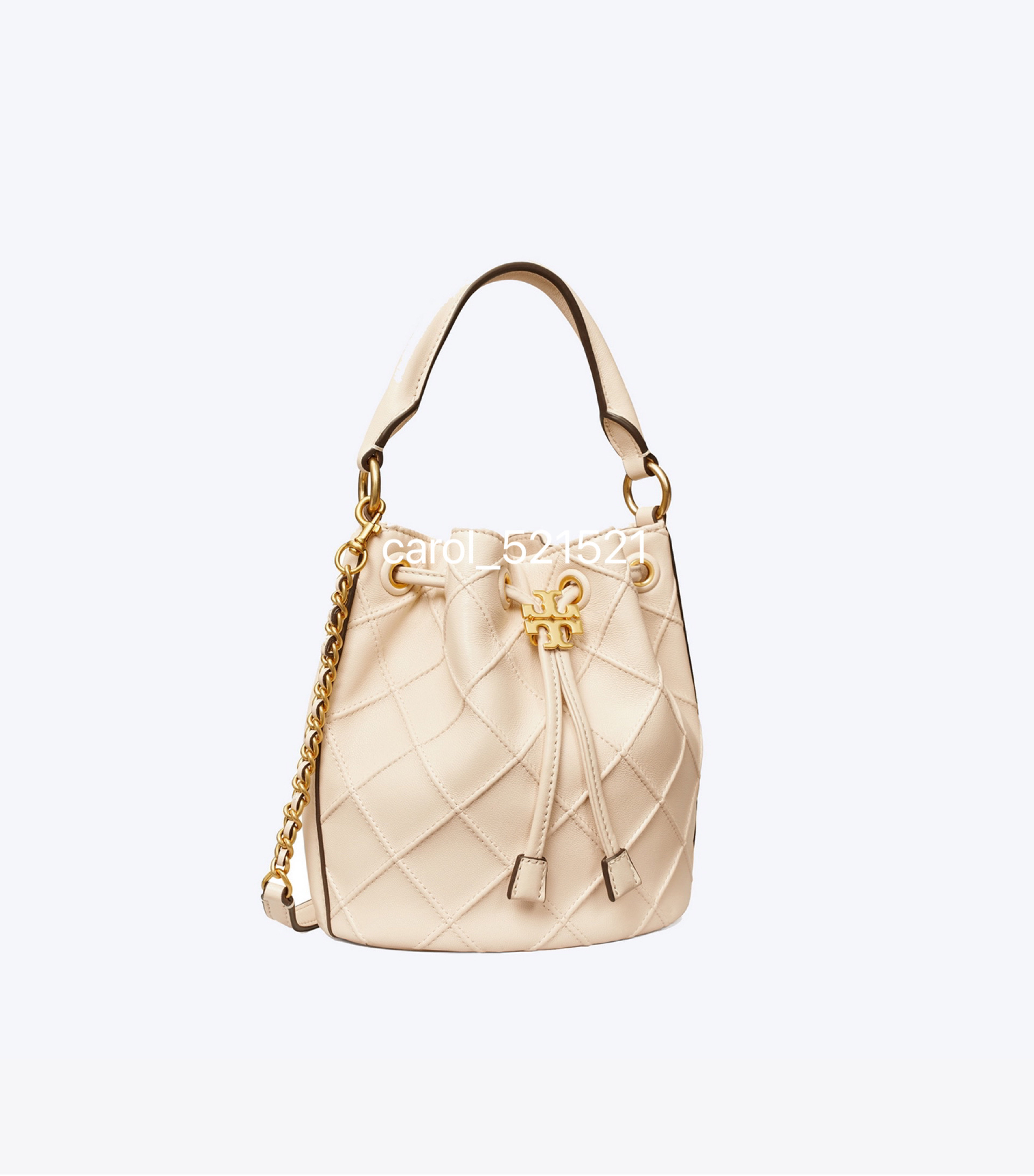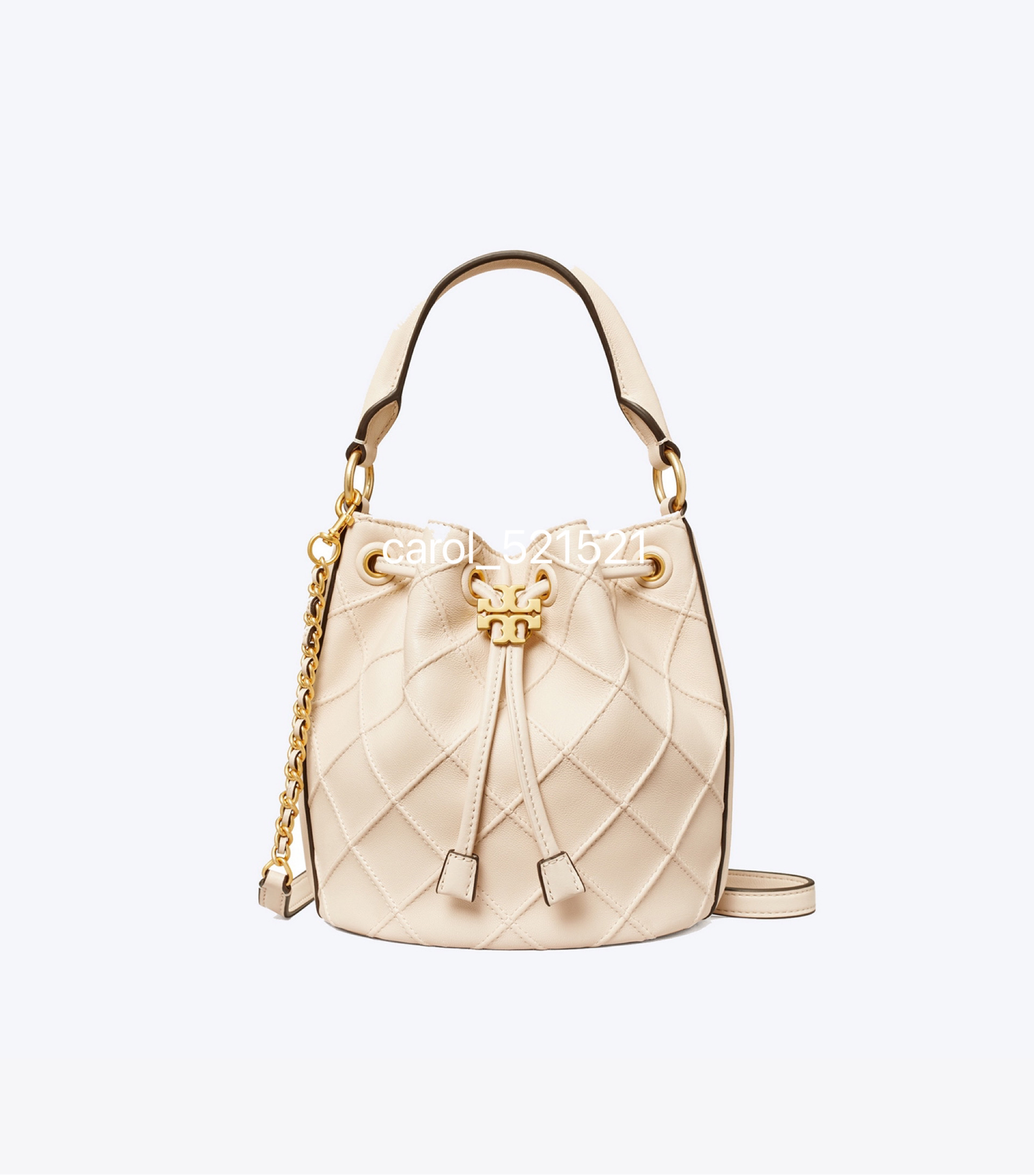 经典又迷人:新款 Fleming 水桶包,选用柔软皮革精心打造,焕新融入菱形褶裥。抽绳开合可通过双 T 标识锁扣调节。