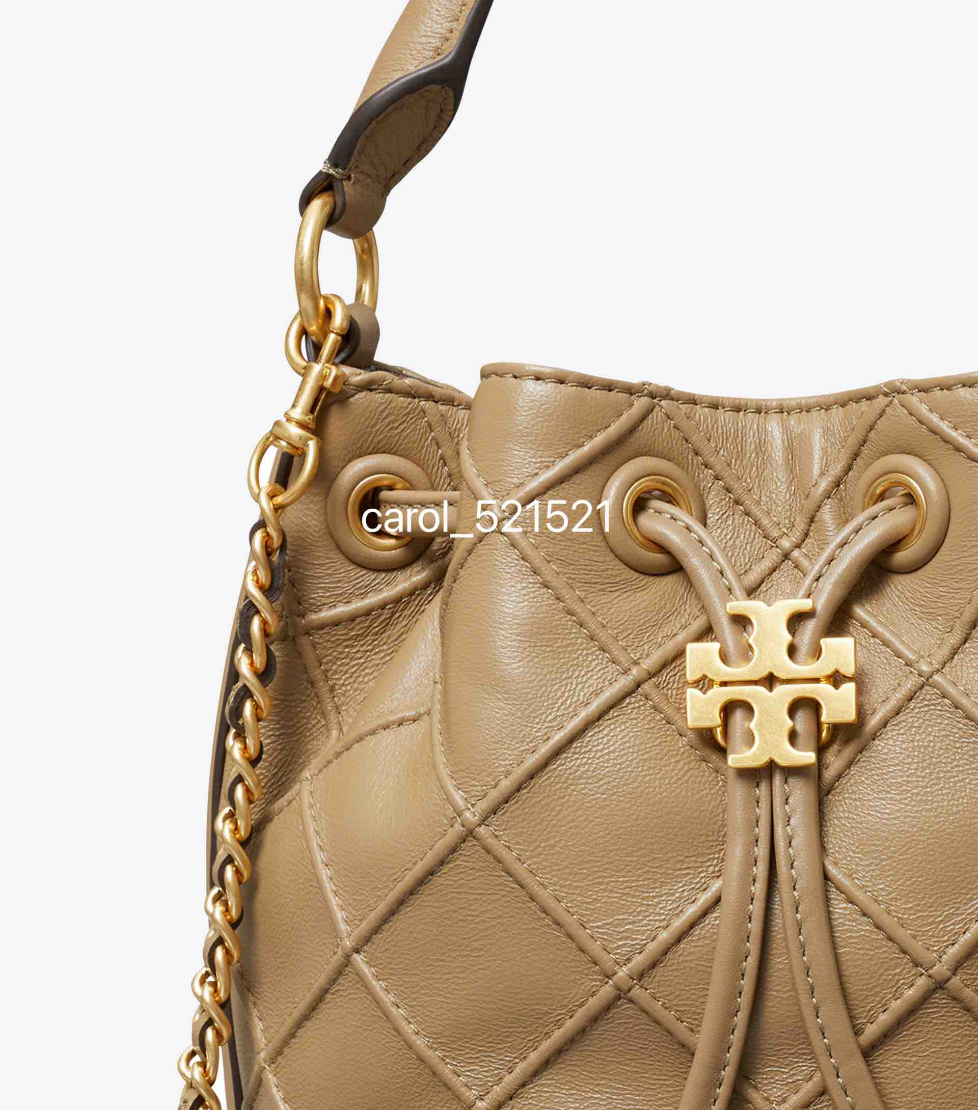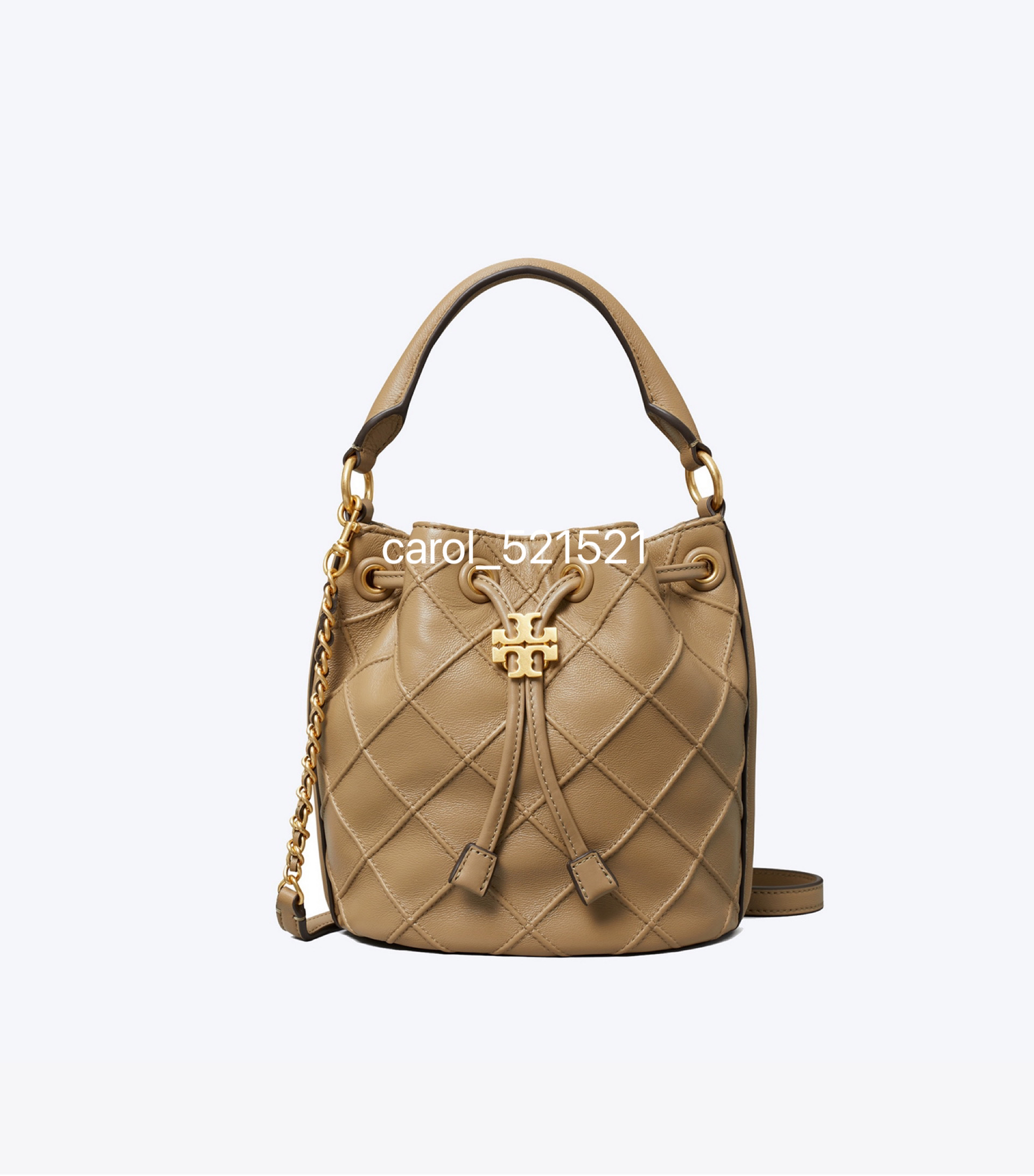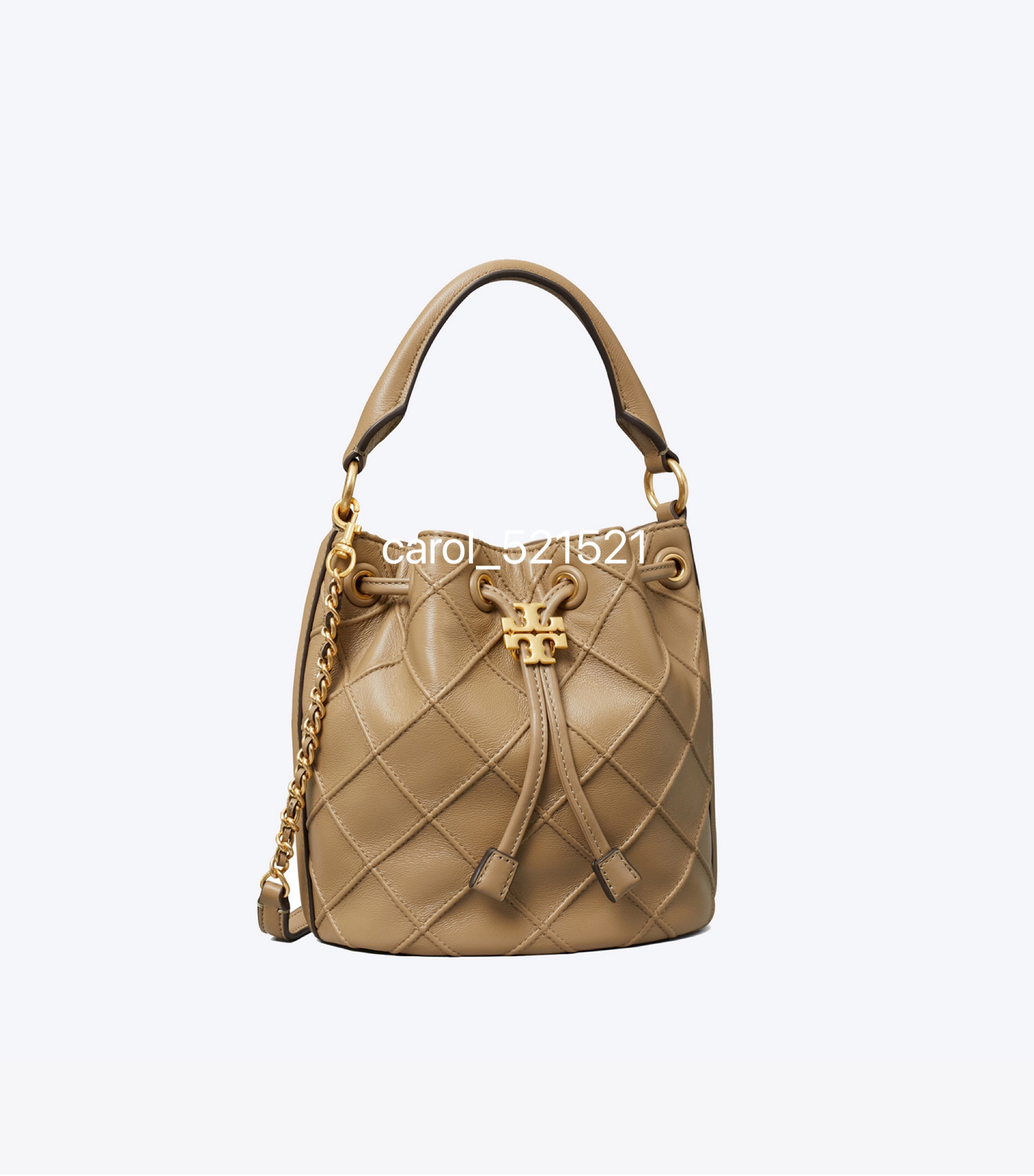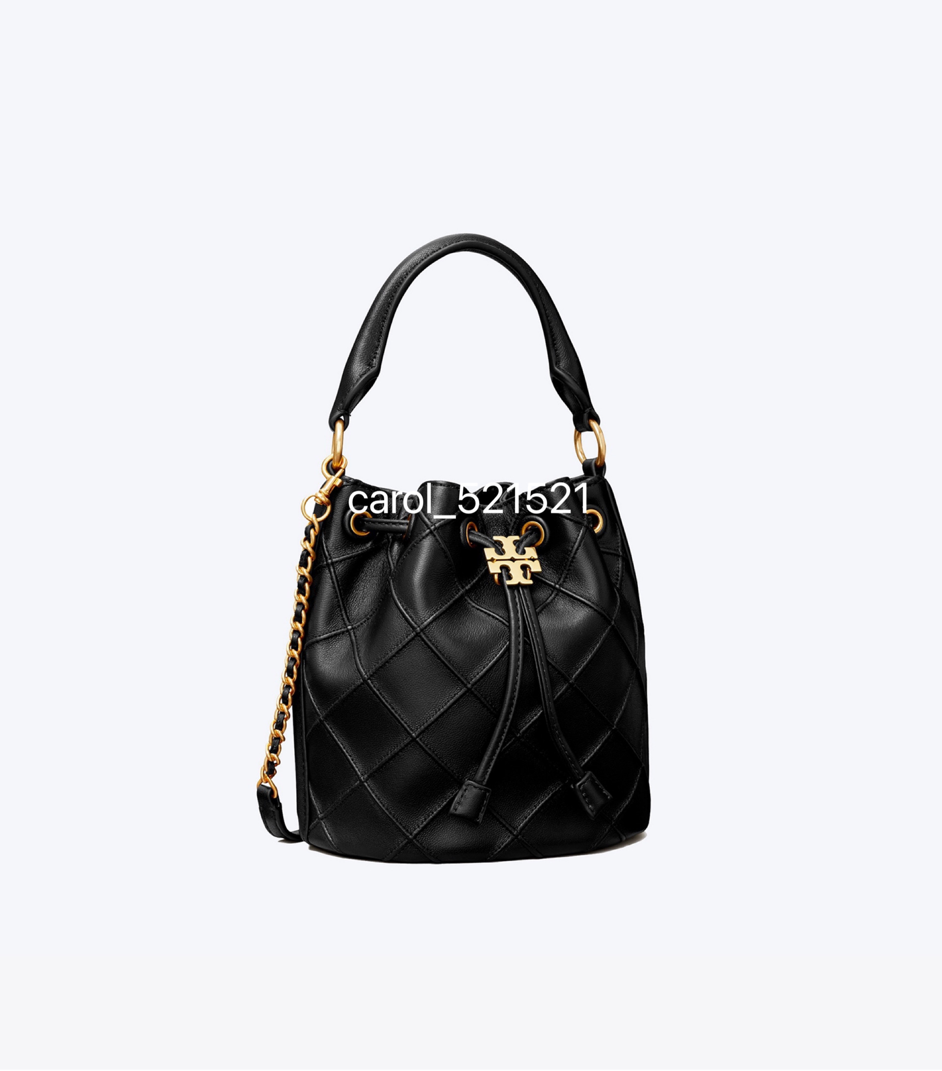 经典又迷人:新款 Fleming 水桶包,选用柔软皮革精心打造,焕新融入菱形褶裥。抽绳开合可通过双 T 标识锁扣调节。