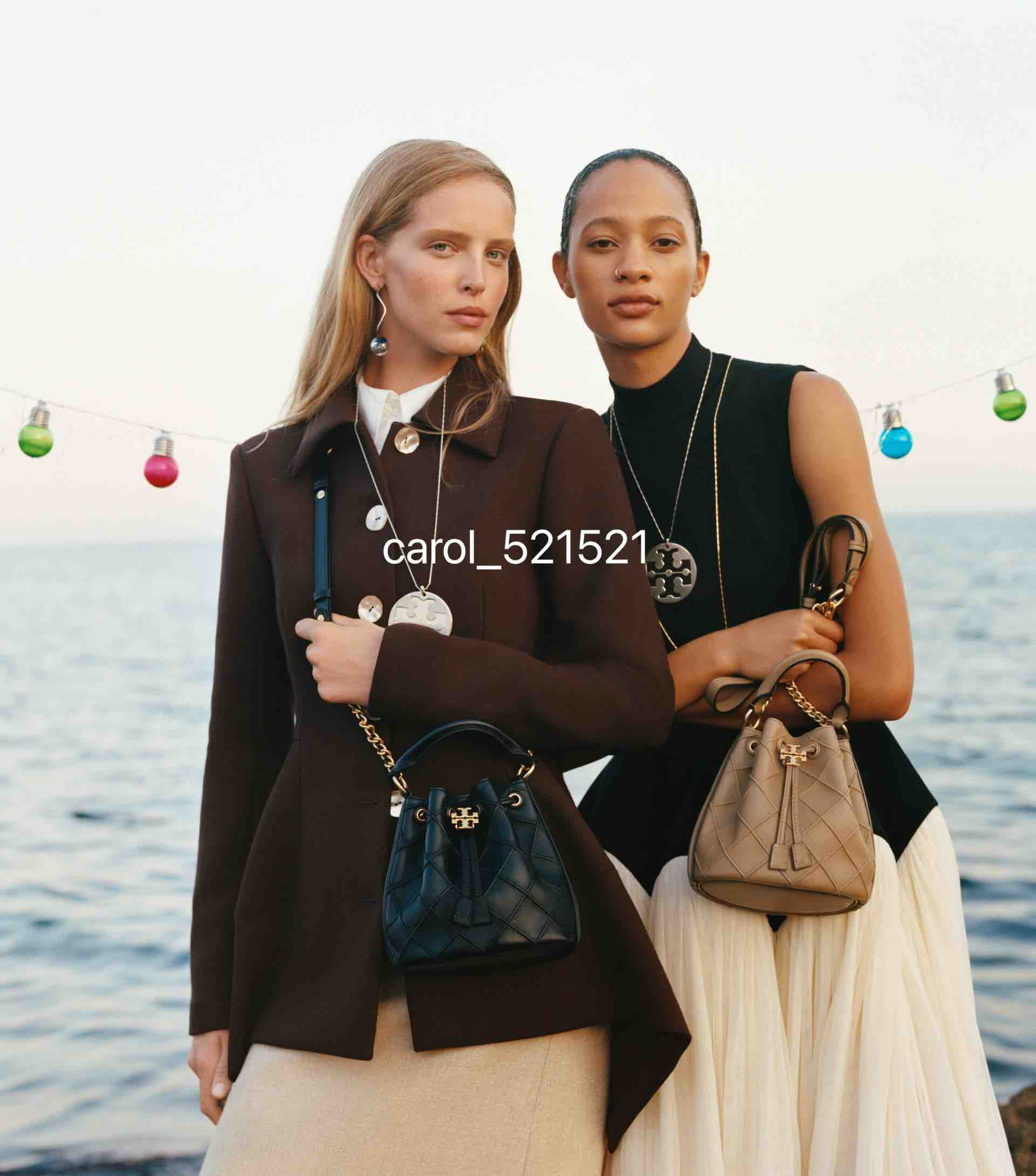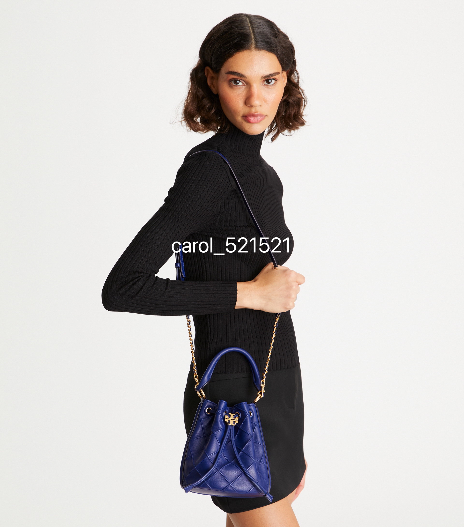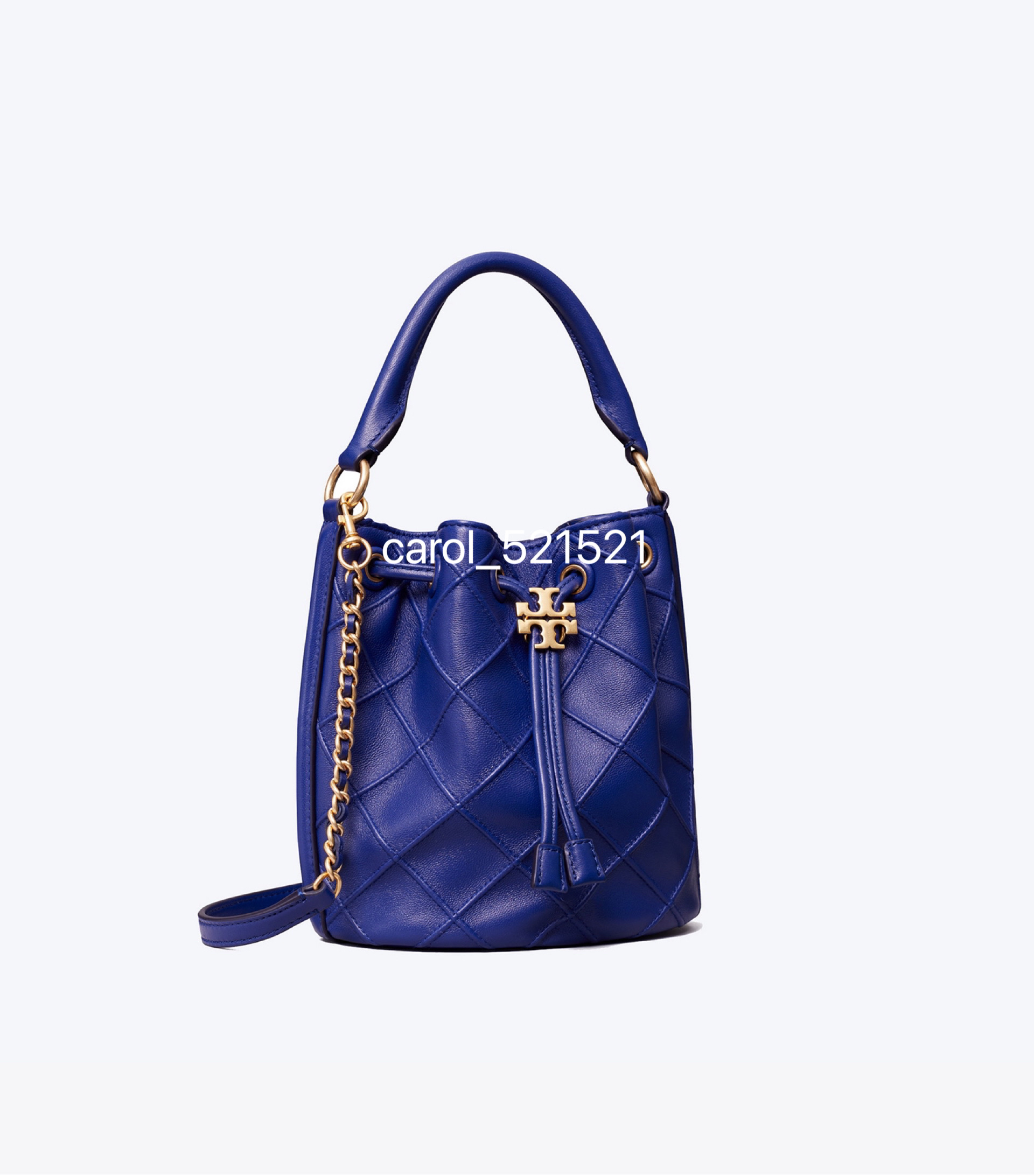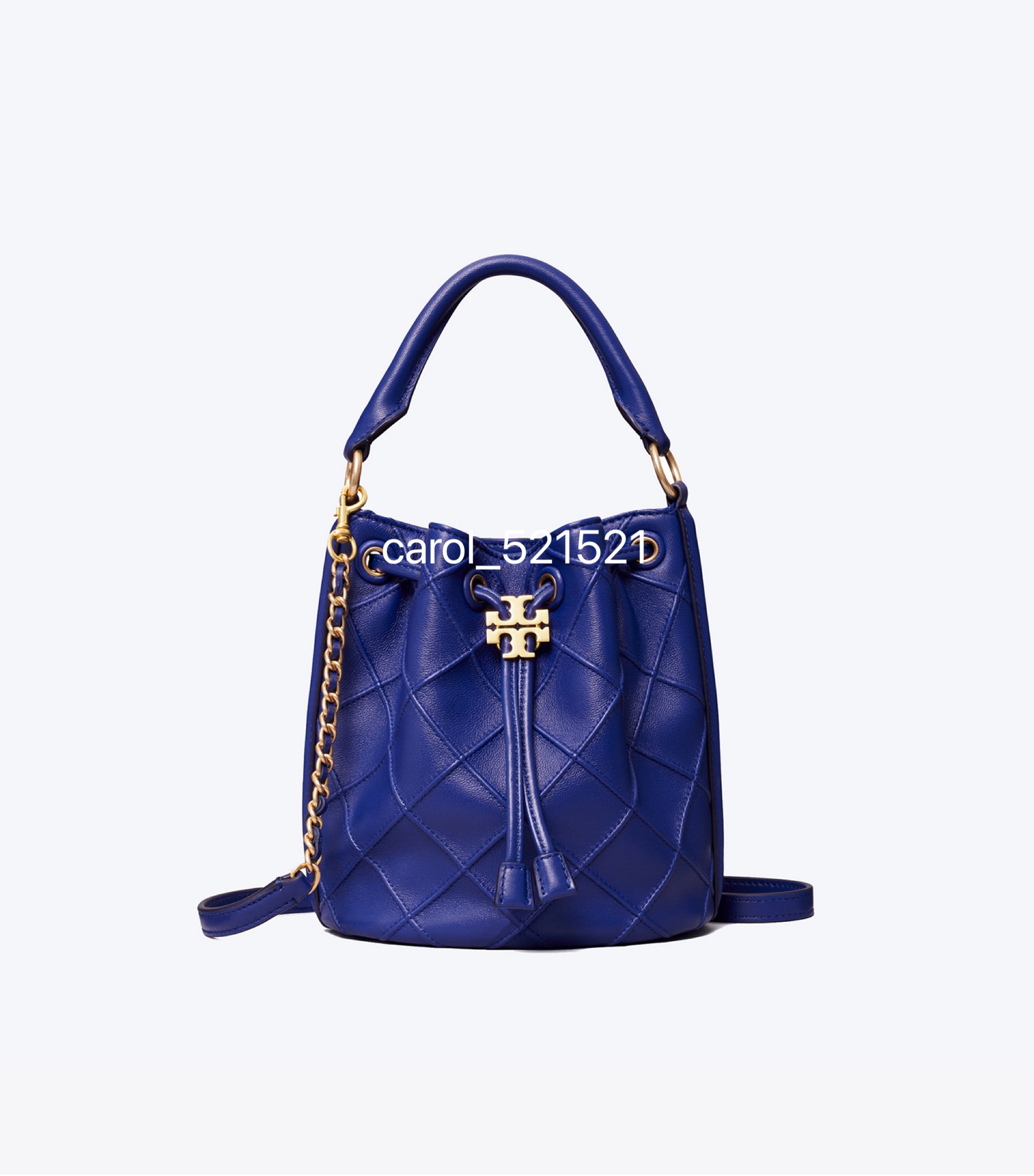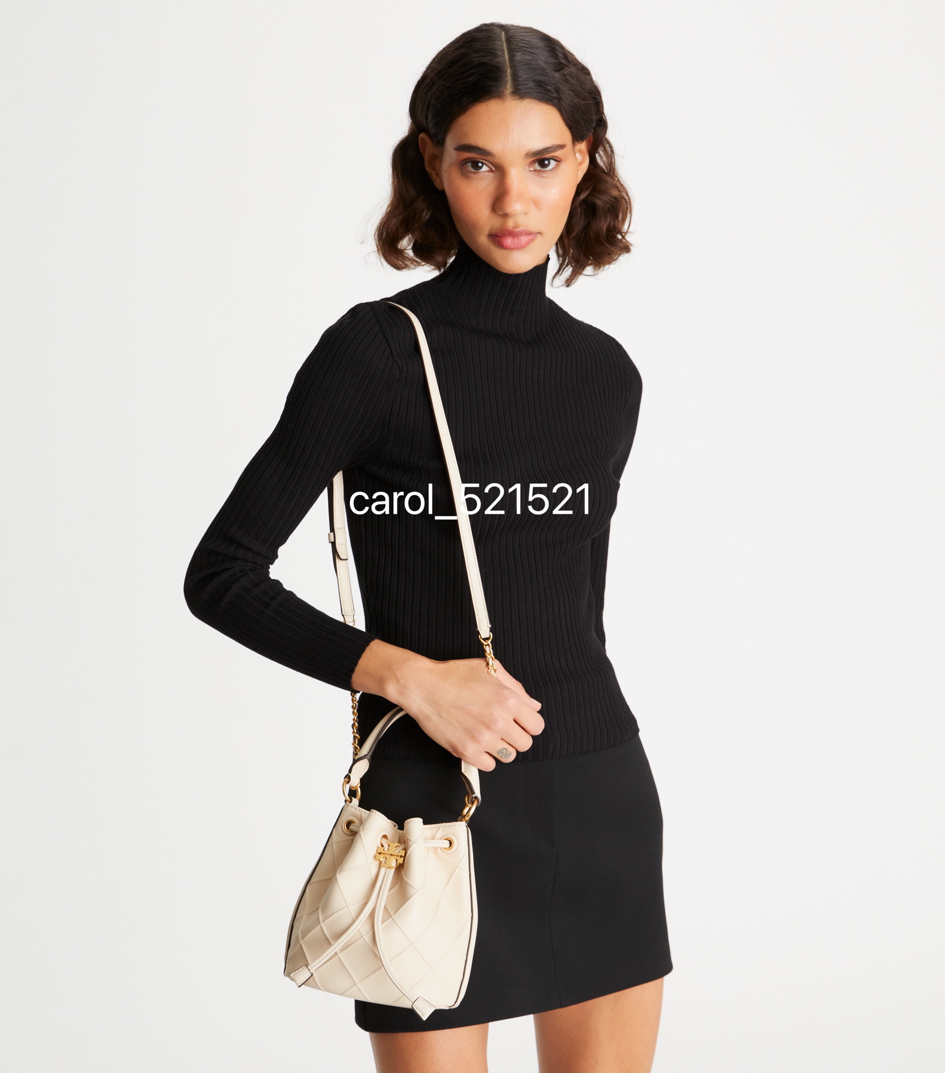 经典又迷人:新款 Fleming 水桶包,选用柔软皮革精心打造,焕新融入菱形褶裥。抽绳开合可通过双 T 标识锁扣调节。