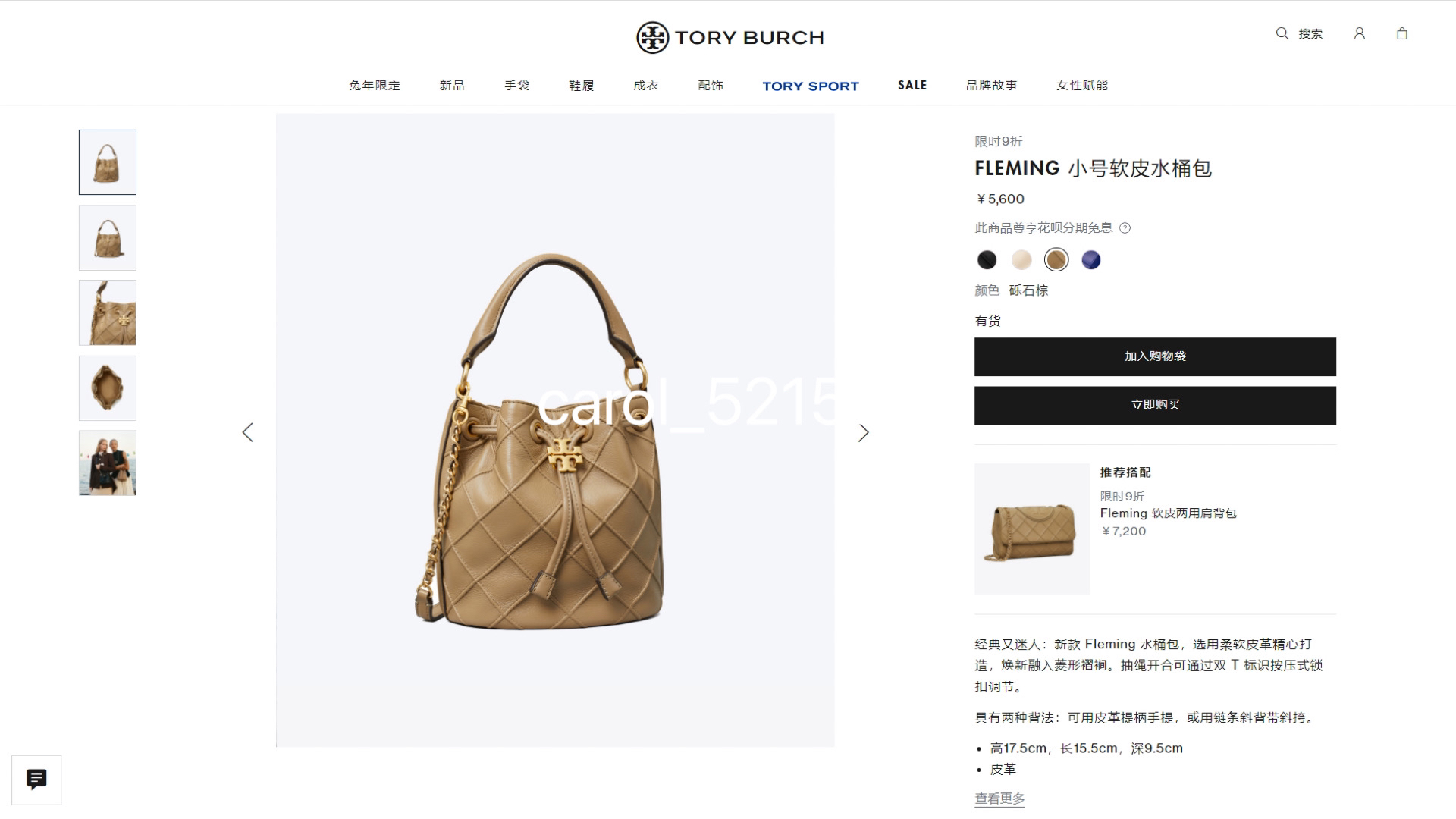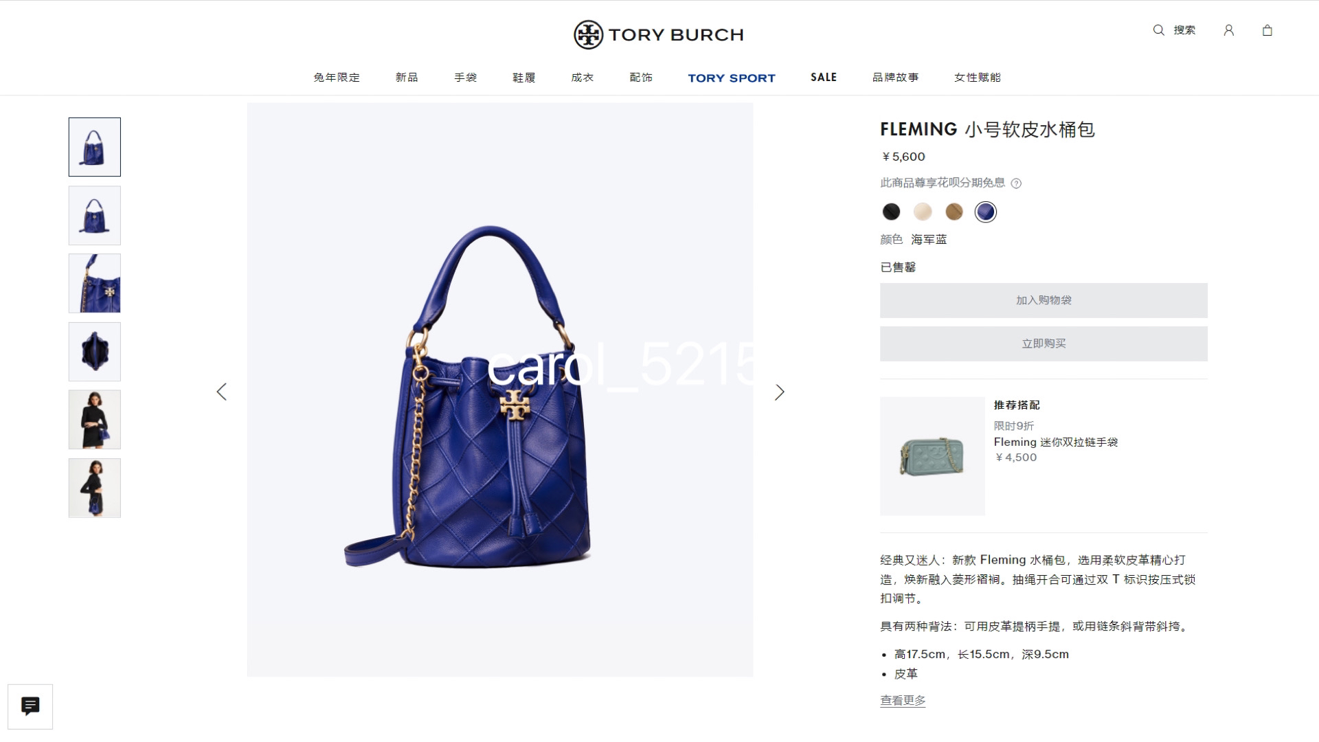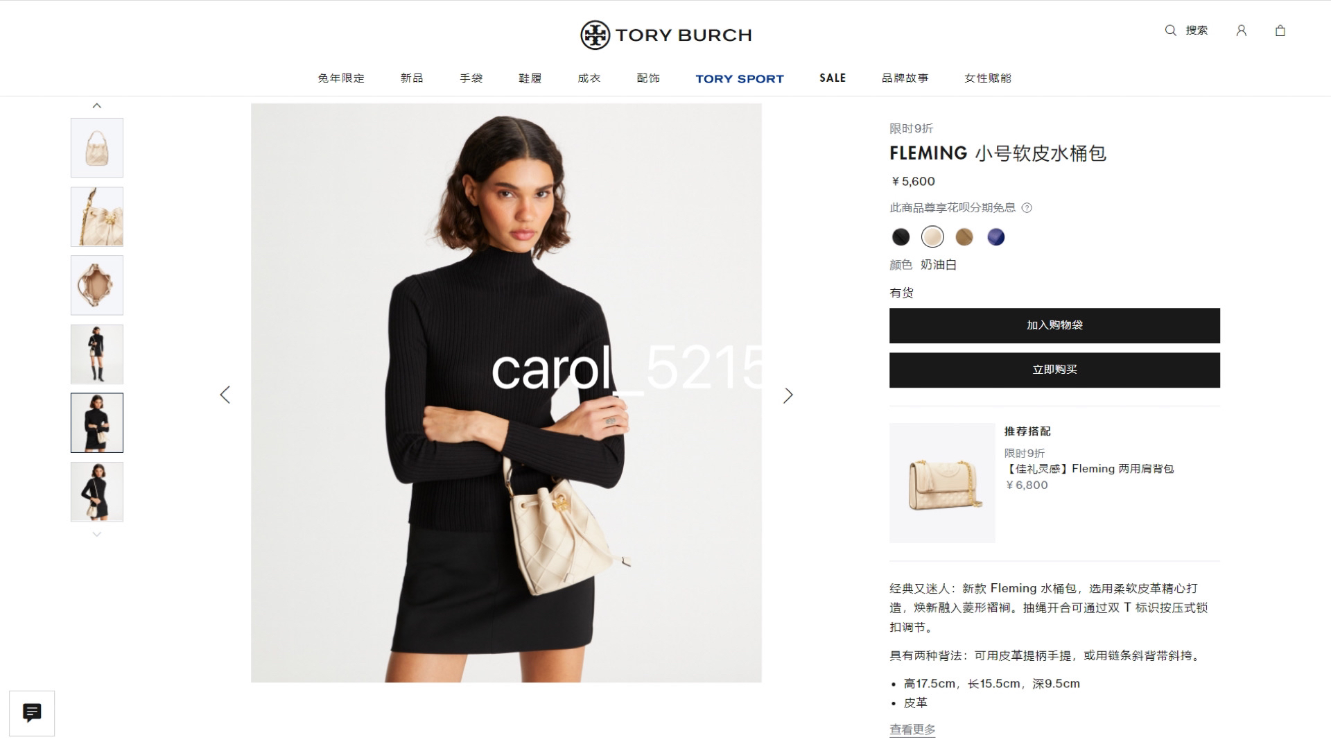正单 TB Fleming小号软皮水桶包