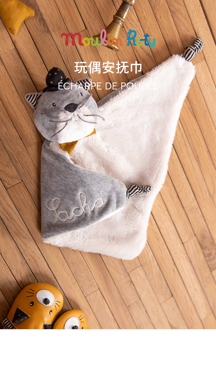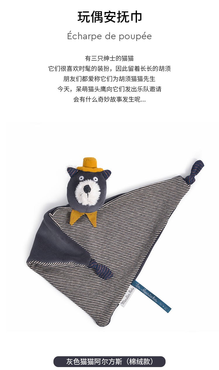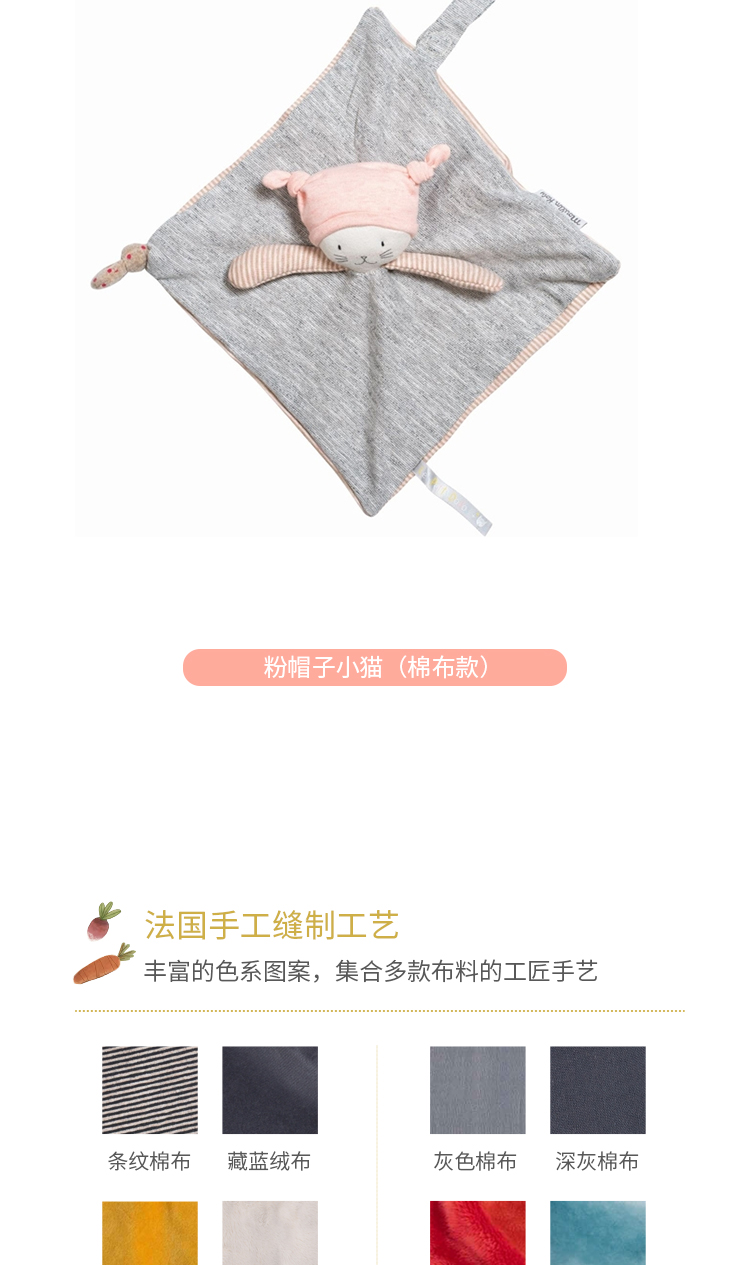 Moulin Roty 粉红小猫婴儿安抚巾(棉布款) 适合年龄0岁+ 663015
