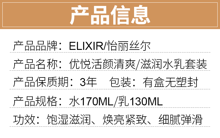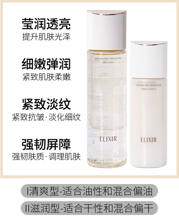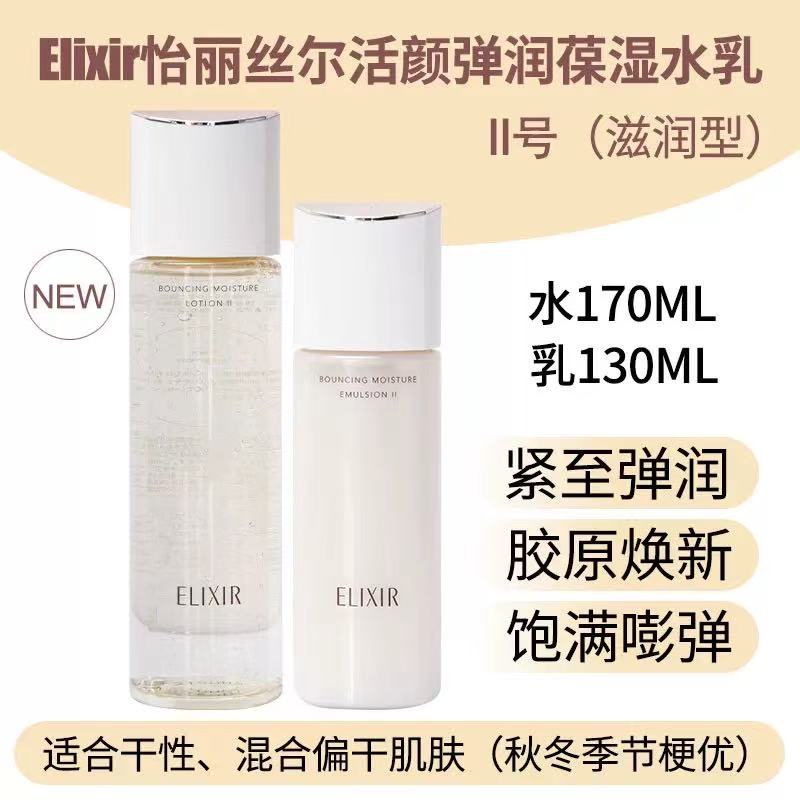 Elixir怡丽丝尔优悦活颜水乳套装 补水保湿清爽滋润爽肤水乳液