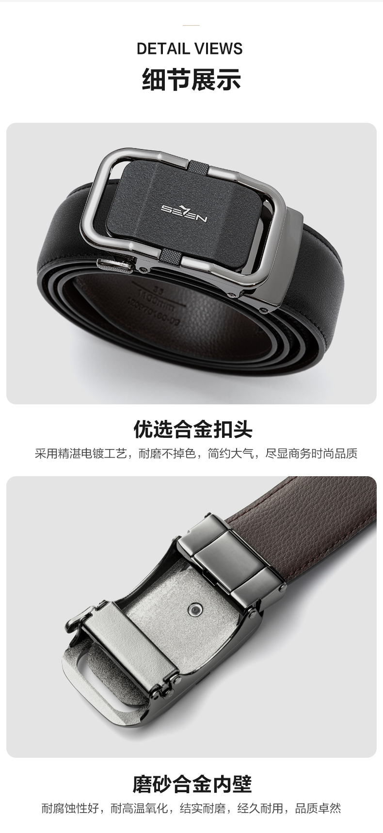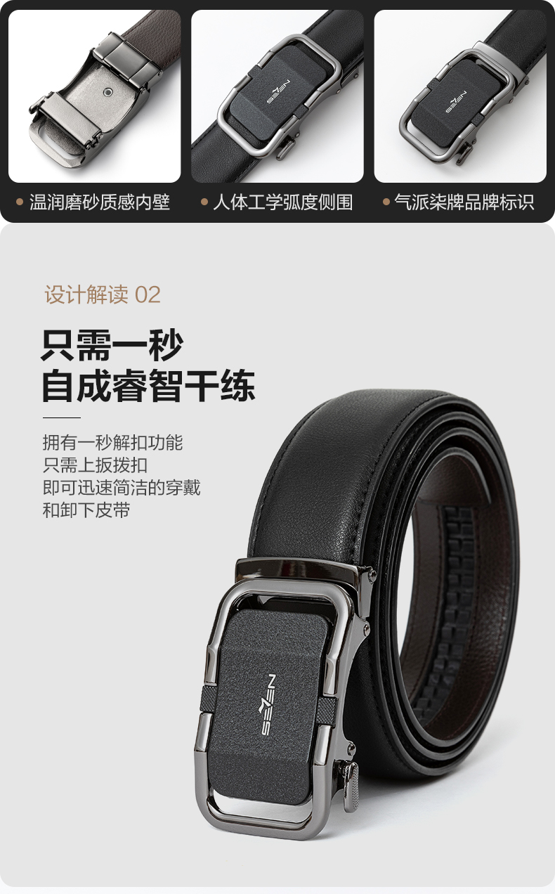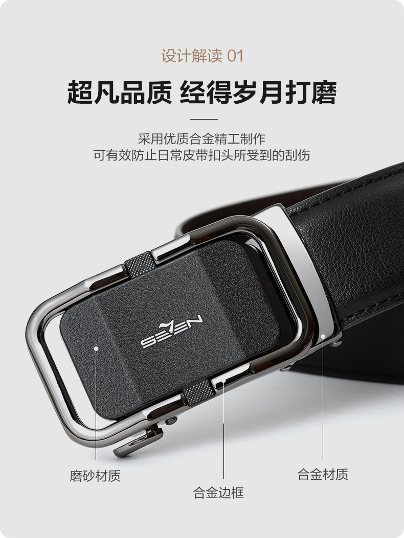 柒牌男装配饰皮带2025年新款商务休闲正装百搭自动扣腰带黑色裤带128P70040