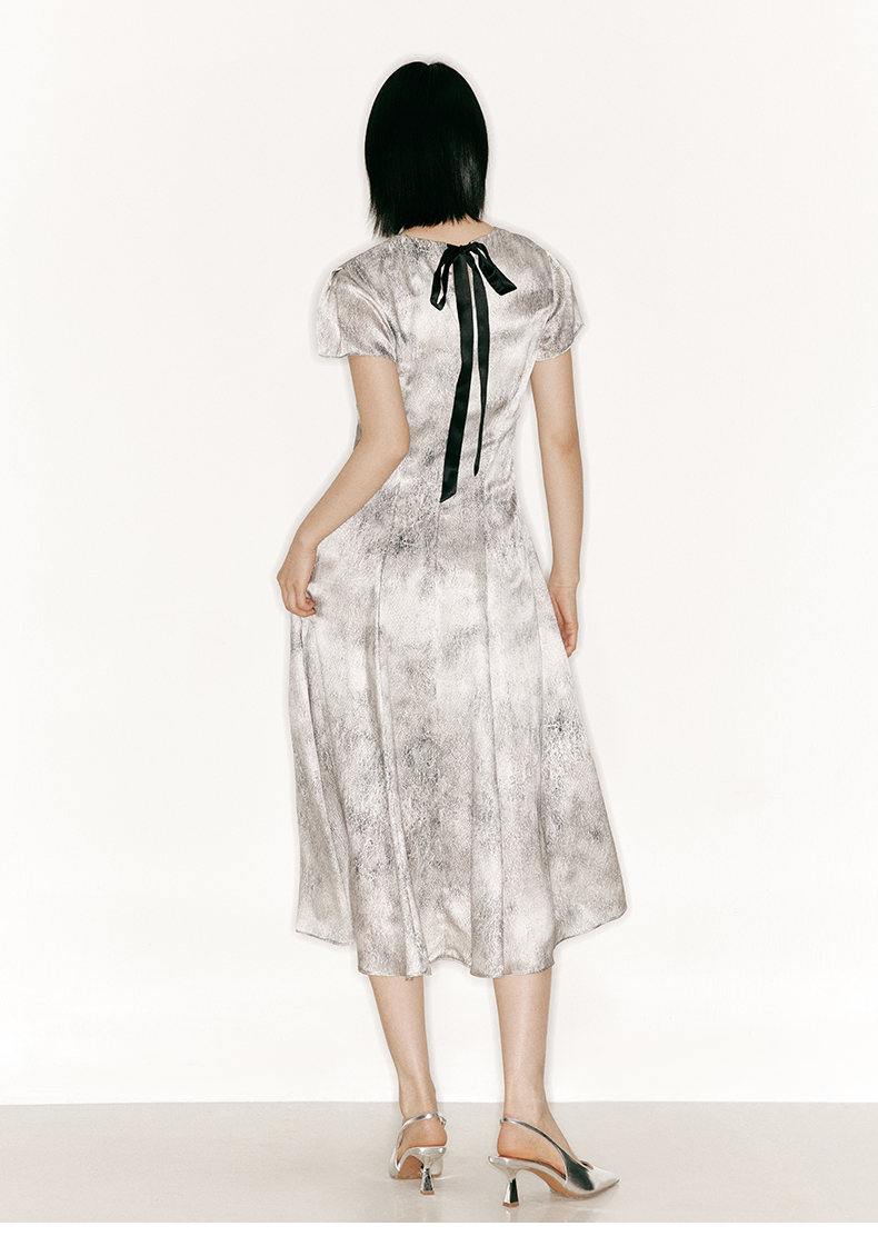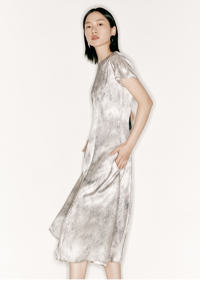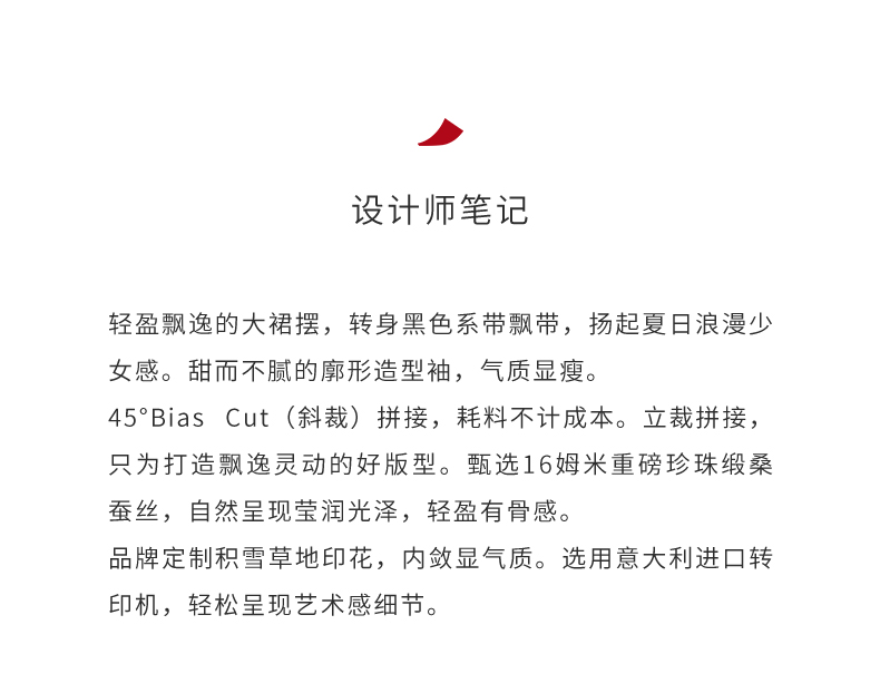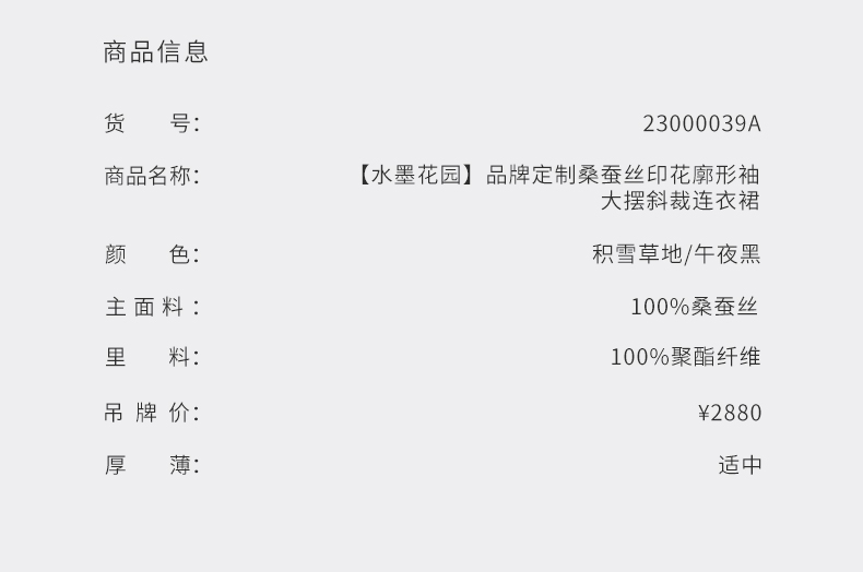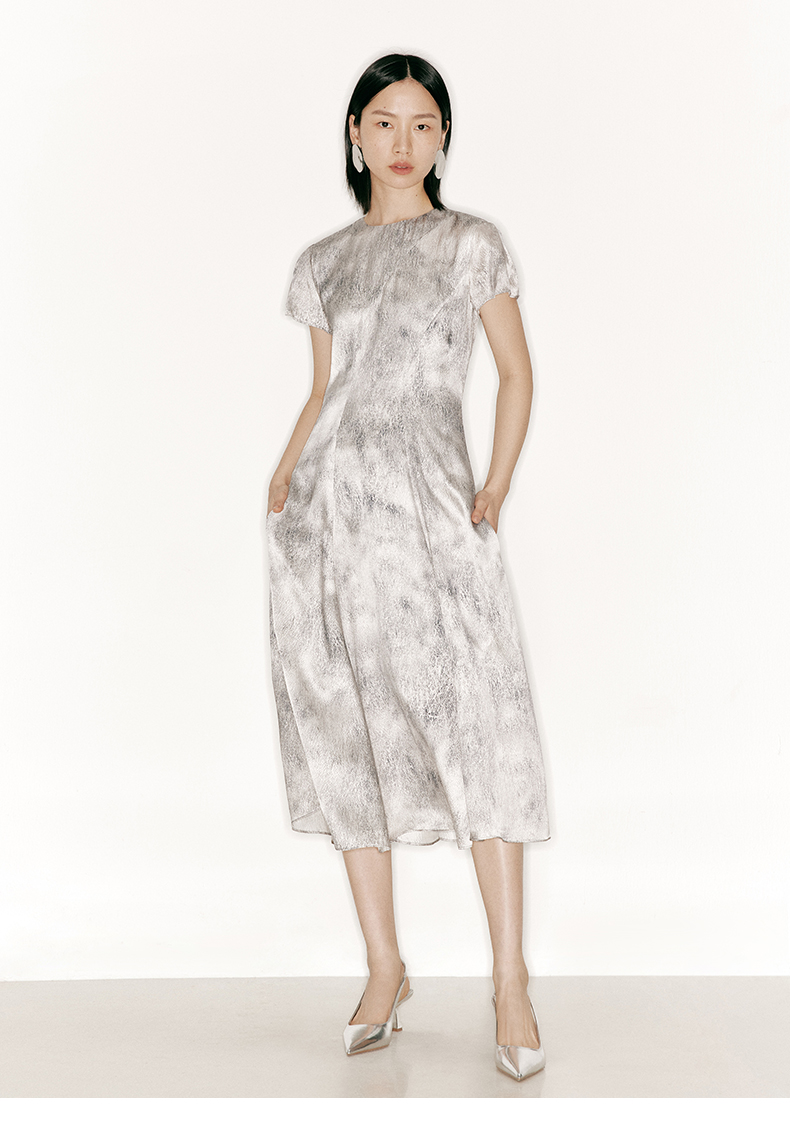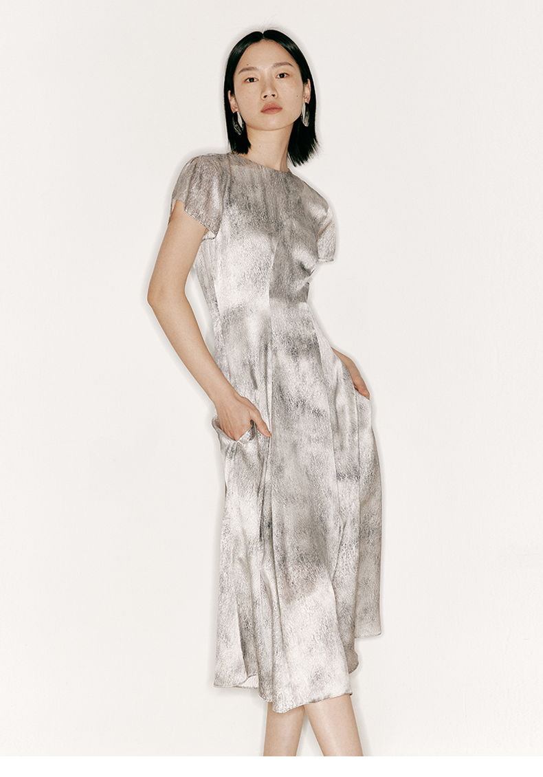 【水墨花园】品牌定制桑蚕丝印花廓形袖大摆斜裁连衣裙/23000039A