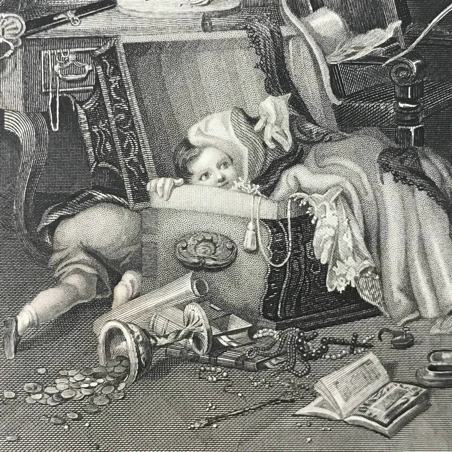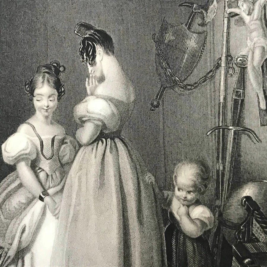 这批版画于1844-1846年间由英国著名学者G·N· Wright编纂,然后交由工艺极为精湛的版画公司Fisher, Son & Company制作出版,囊括了当时英国以及欧洲艺术领域出现的经典杰作。版画标题下方有些会有标识时间18XX的字样,有些没有,画面下方角落除了标题、时间、左右下角或者下方会标注画家和版画家或者制作公司,他们基本上都是当时书籍插图领域或者版画领域十分活跃的人物,这里就不单独做标识了。