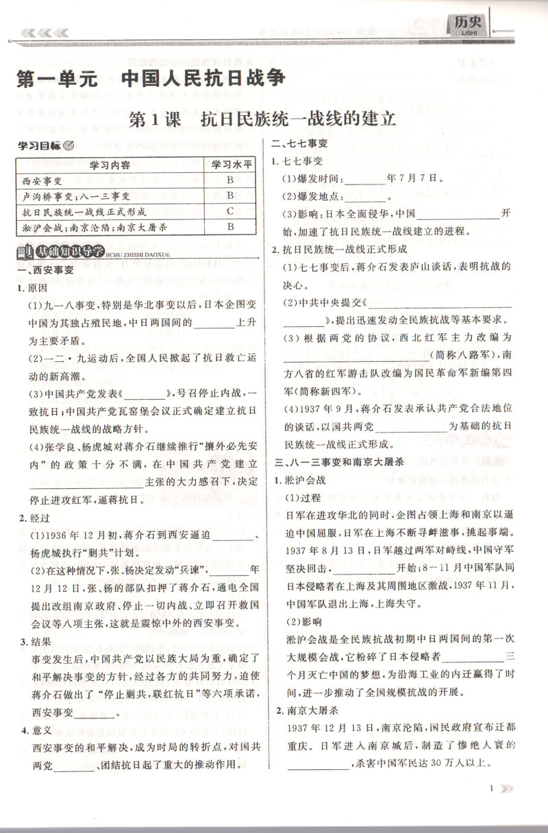 金典导学案 历史 高2年级下/高二年级下册 第二学期 等级考