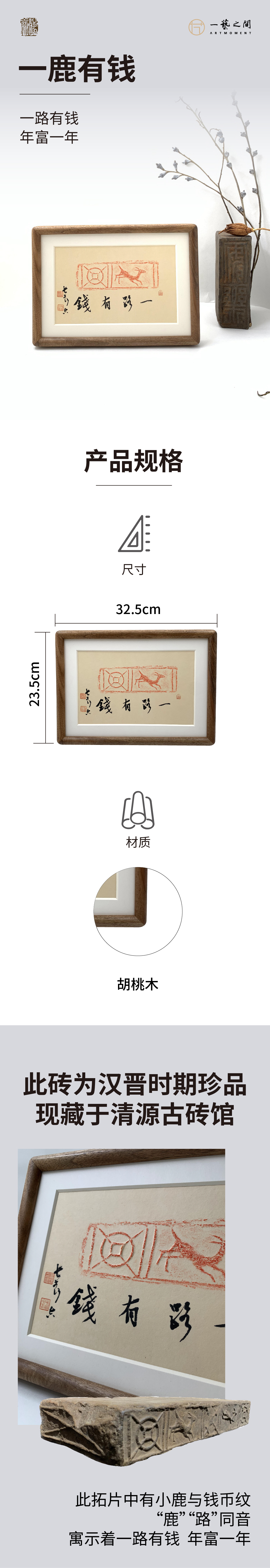 《一鹿有钱》古砖纯手工拓片非遗技艺包邮发货【清源古砖馆x一艺之间】