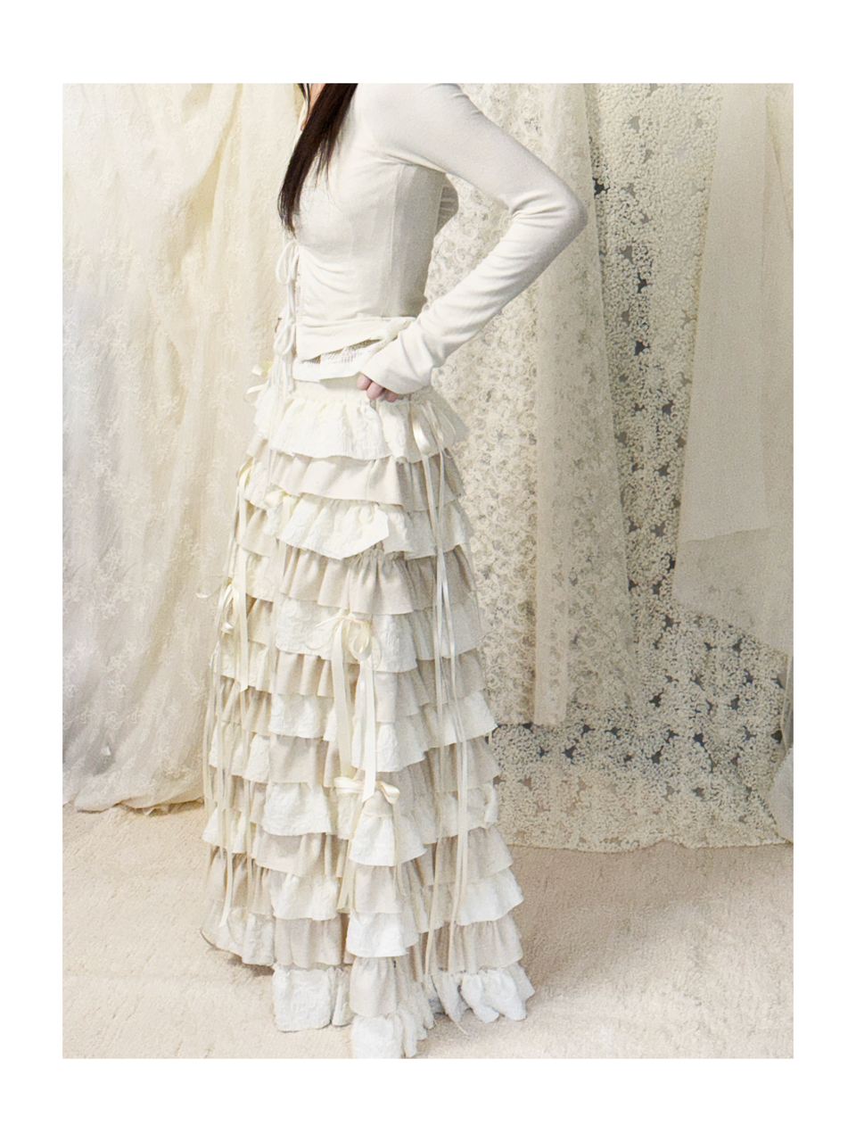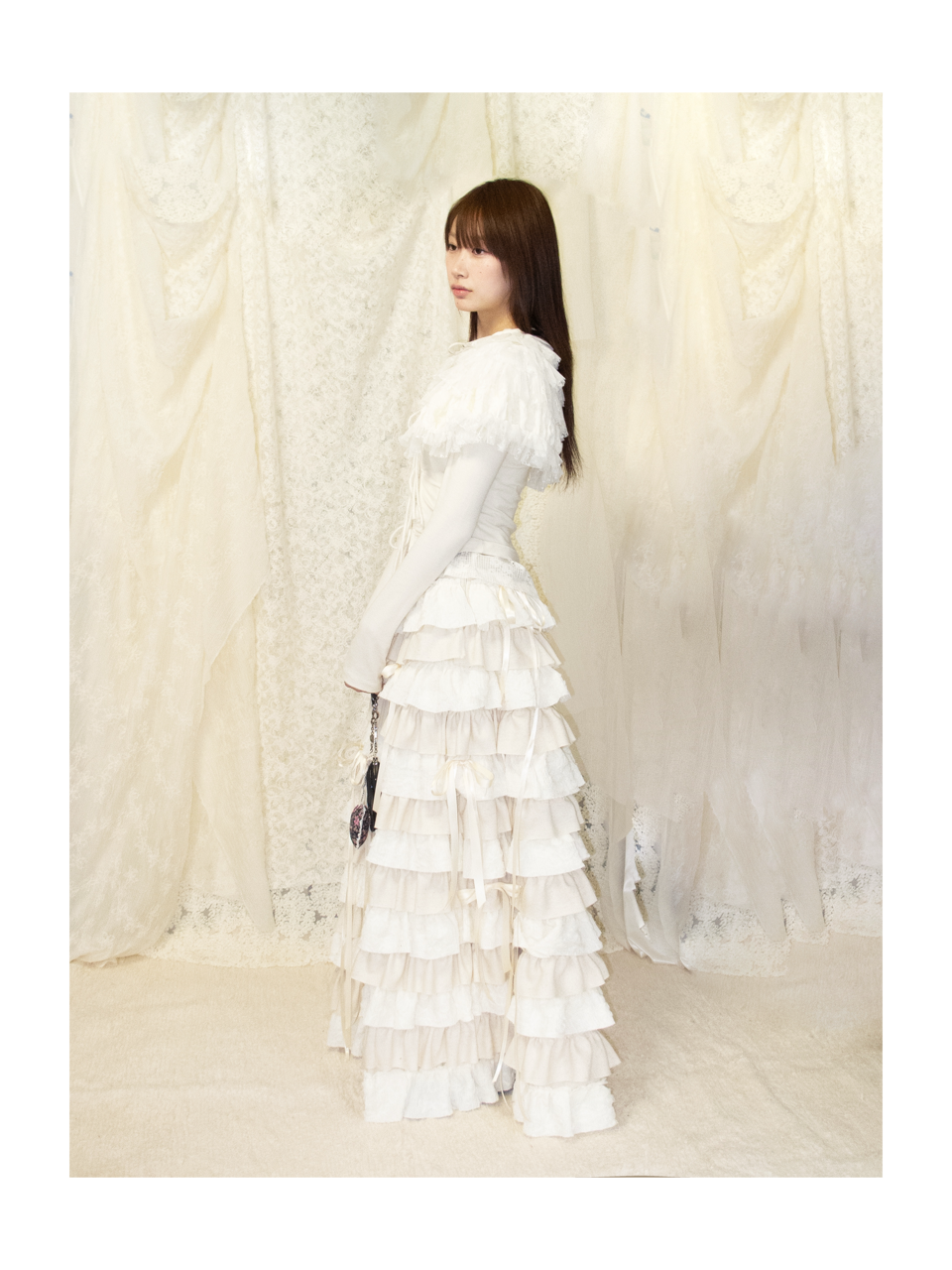 Kaiy Xiao 辉夜层叠蝴蝶结蛋糕长裙